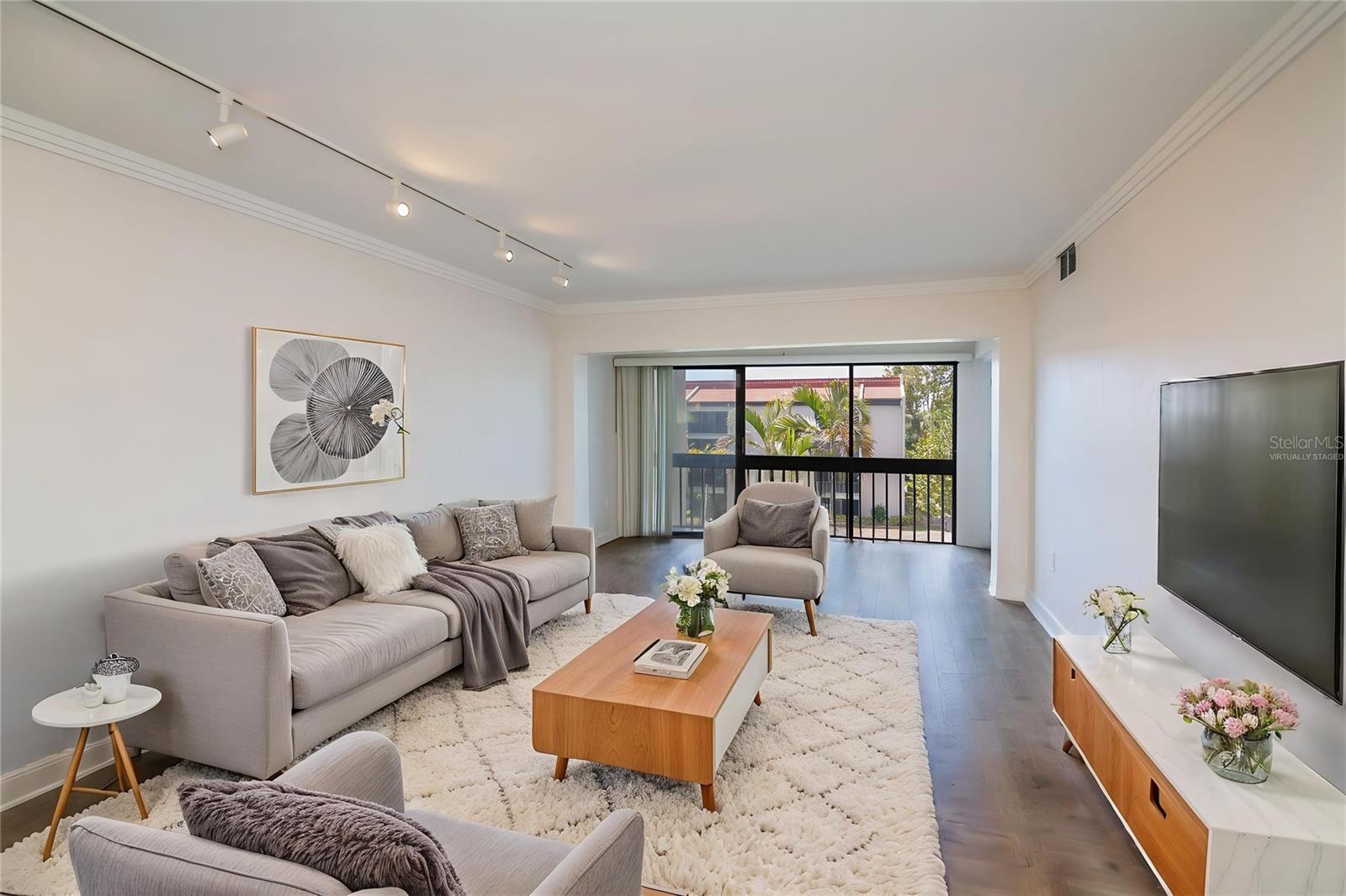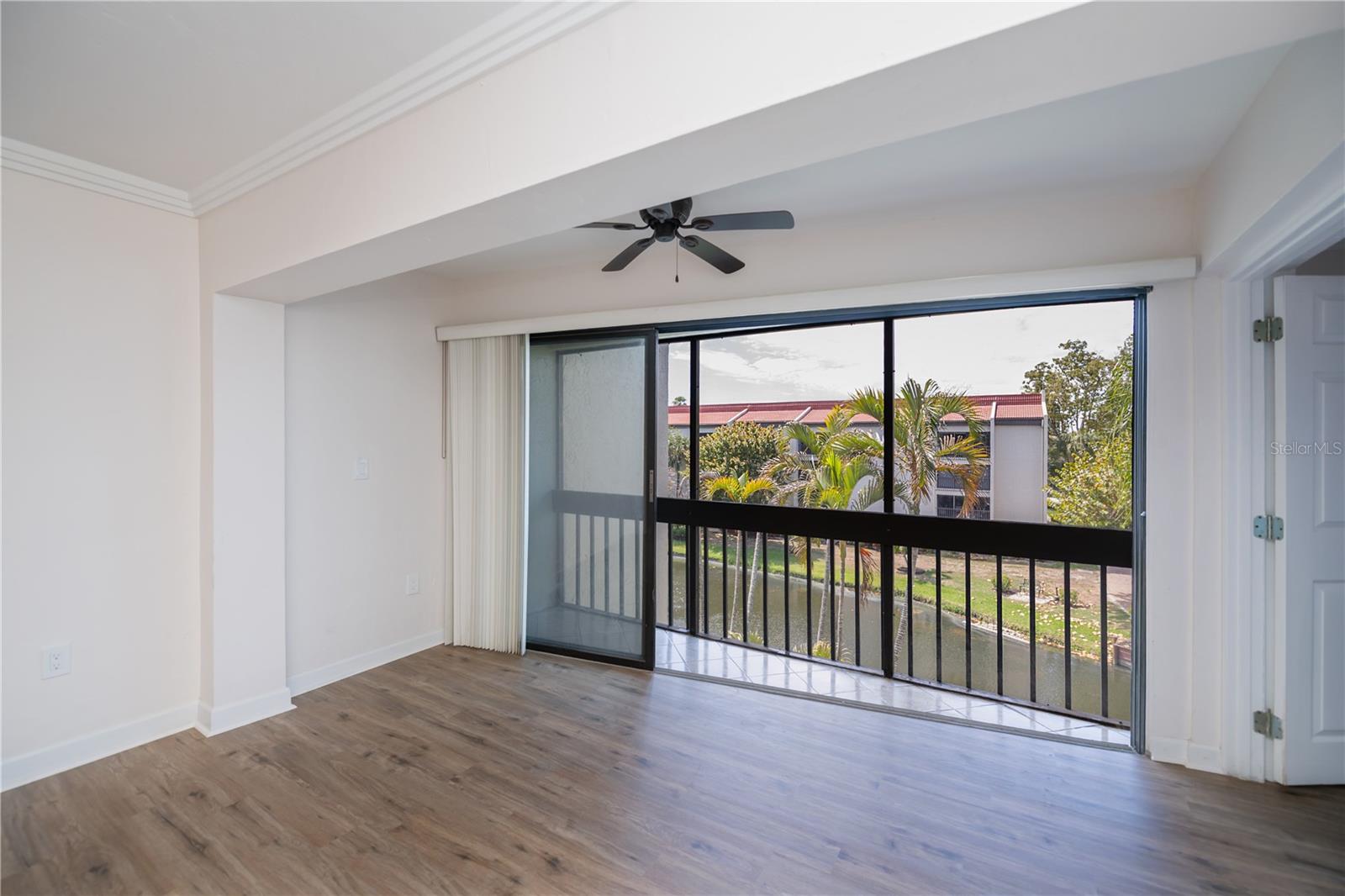 One or more photo(s) has been virtually staged. Enjoy resort-style living in the exclusive Landings community! This 2-bedroom, 2-bath condominium features a functional open layout with the kitchen flowing into the dining and living areas. The enclosed, air-conditioned sunroom adds extra living space, perfect for relaxing or working from home. The primary suite offers an ensuite bathroom, while the second bedroom includes built-in cabinetry and a closet with an in-wall safe. Additional highlights include an in-unit laundry room and recent upgrades such as fresh interior paint, luxury vinyl flooring, new stove and microwave, and a new water heater. Community amenities include a clubhouse with restaurant, pool, fitness center, golf course, tennis and pickleball courts, bocce, walking and biking paths, boat ramp with Gulf access, and more. Internet is included.