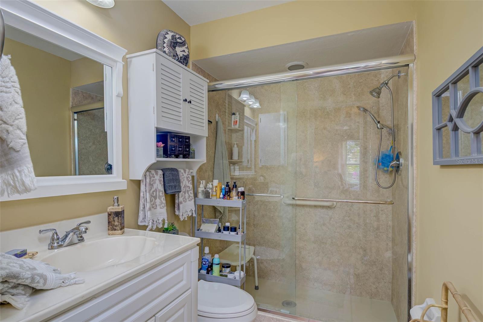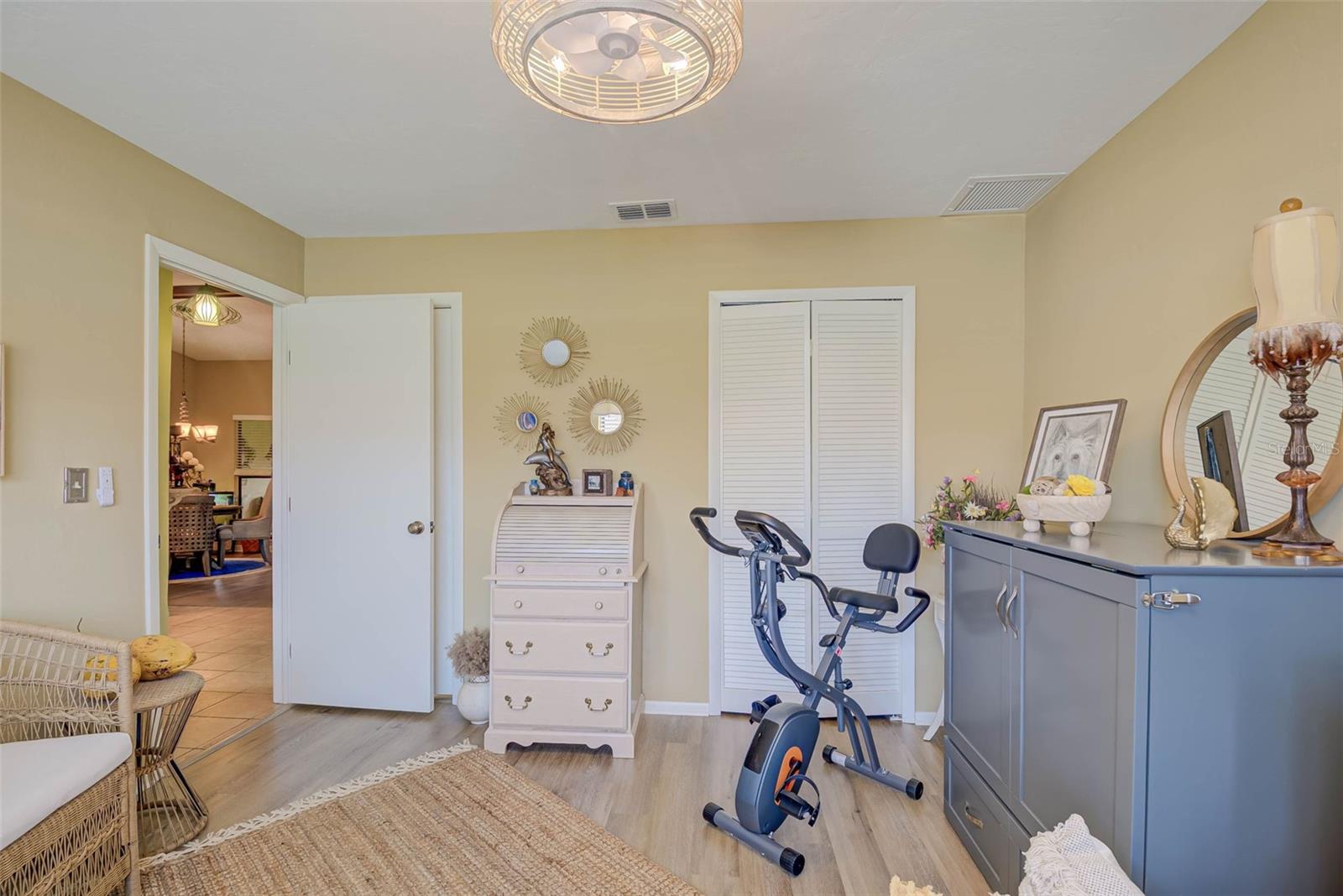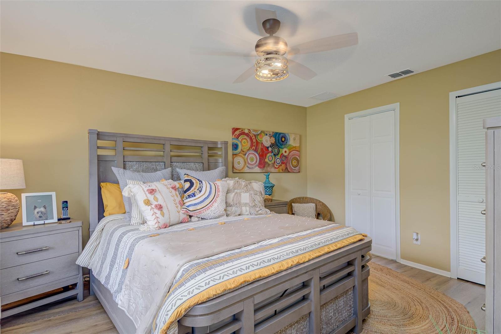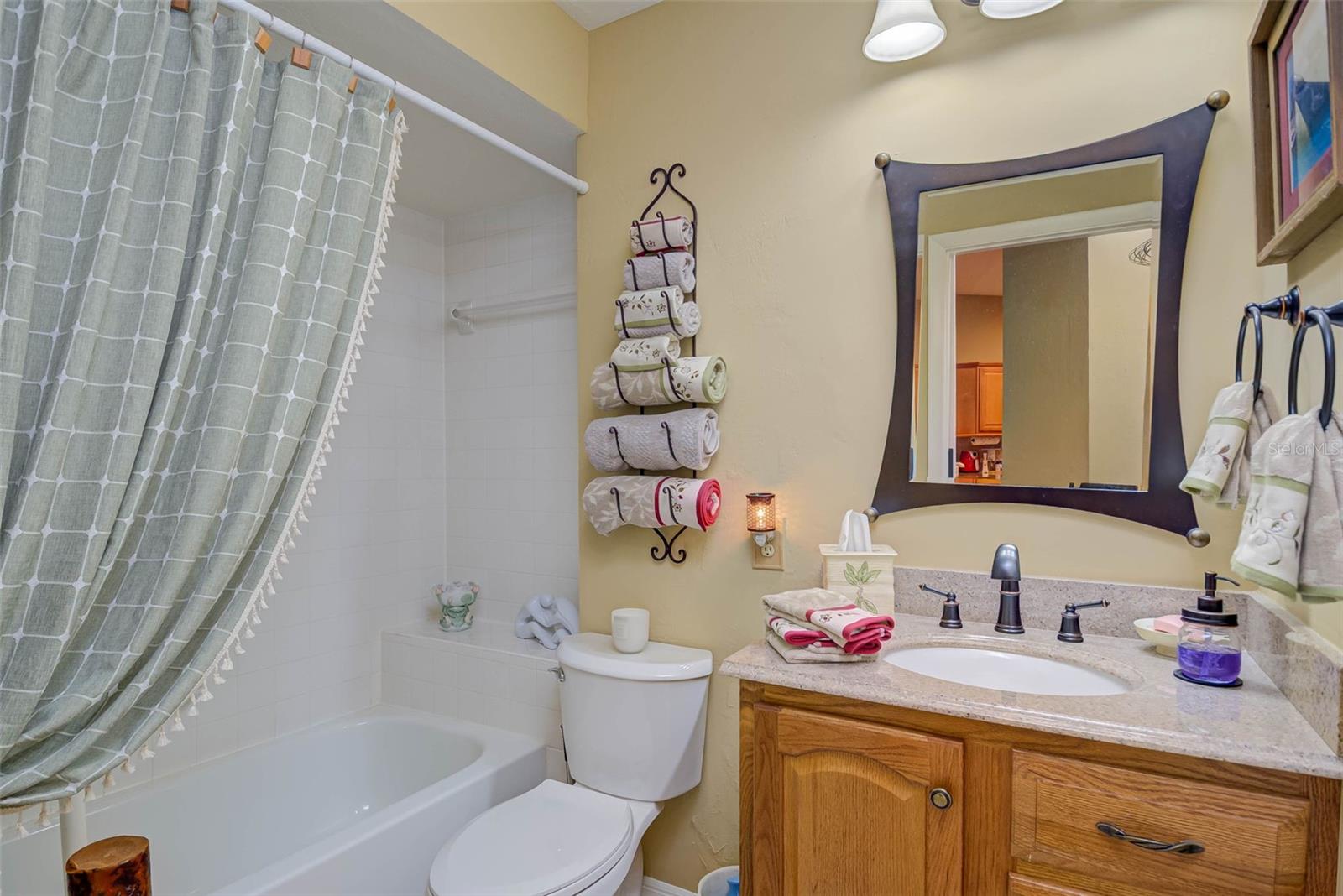NO FLOOD ZONE – STEPS TO POOL – DUAL ENSUITES! Updated 2BR/2BA villa in gated Governors Island, just steps from the community pool. Rare layout with two ensuite bedrooms, ideal for guests or multigenerational living. Vaulted ceilings with exposed beams, granite kitchen with wood cabinetry, and LVT/tile throughout. Enclosed, air-conditioned lanai adds flex space for office or den. Enjoy a gated front courtyard plus a private backyard patio for grilling and outdoor dining. Prime location behind Bell Tower Shops—minutes to shopping, dining, airport, beaches, and spring training. Low HOA covers exterior insurance, roof, cable, Wi-Fi, lawn care, pest control, and more.