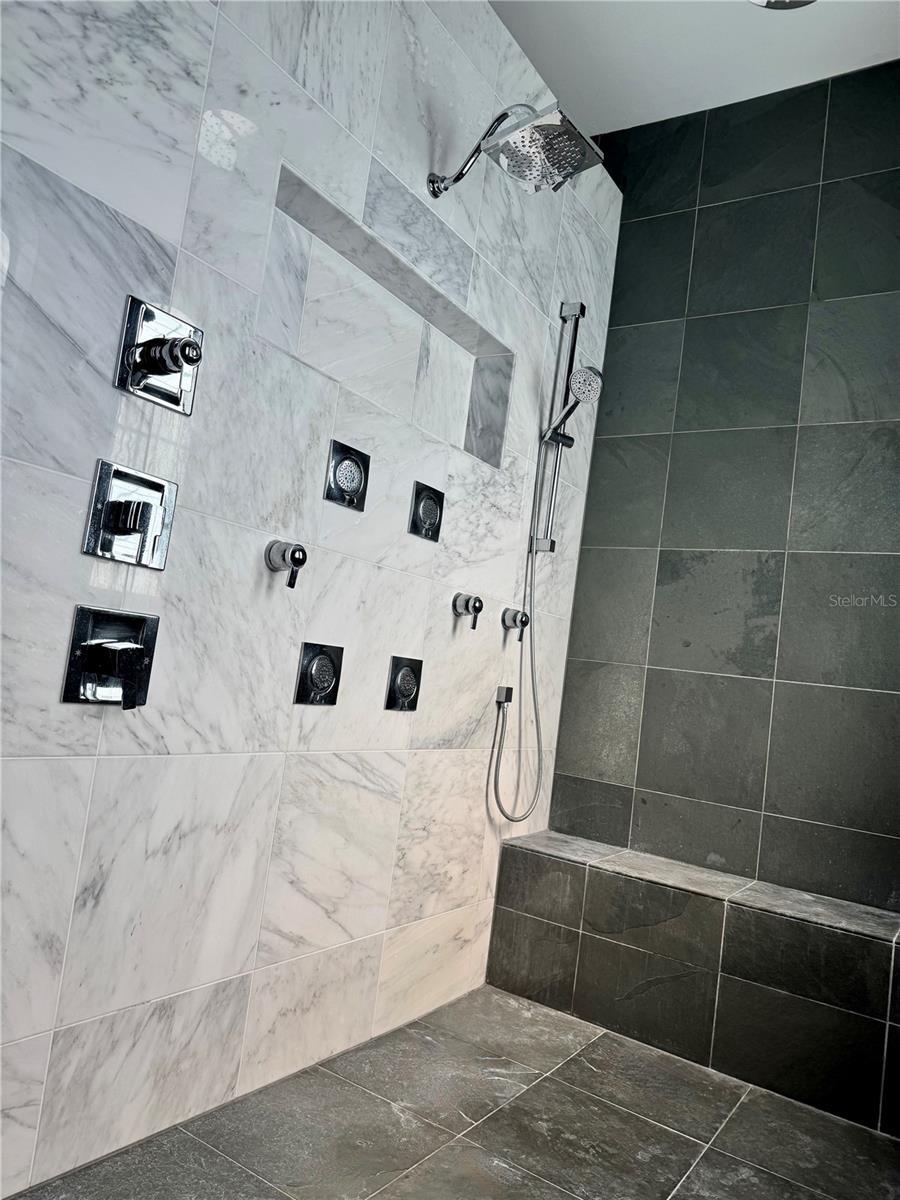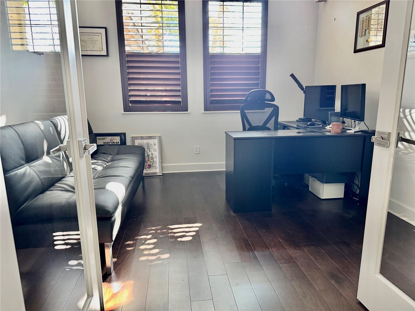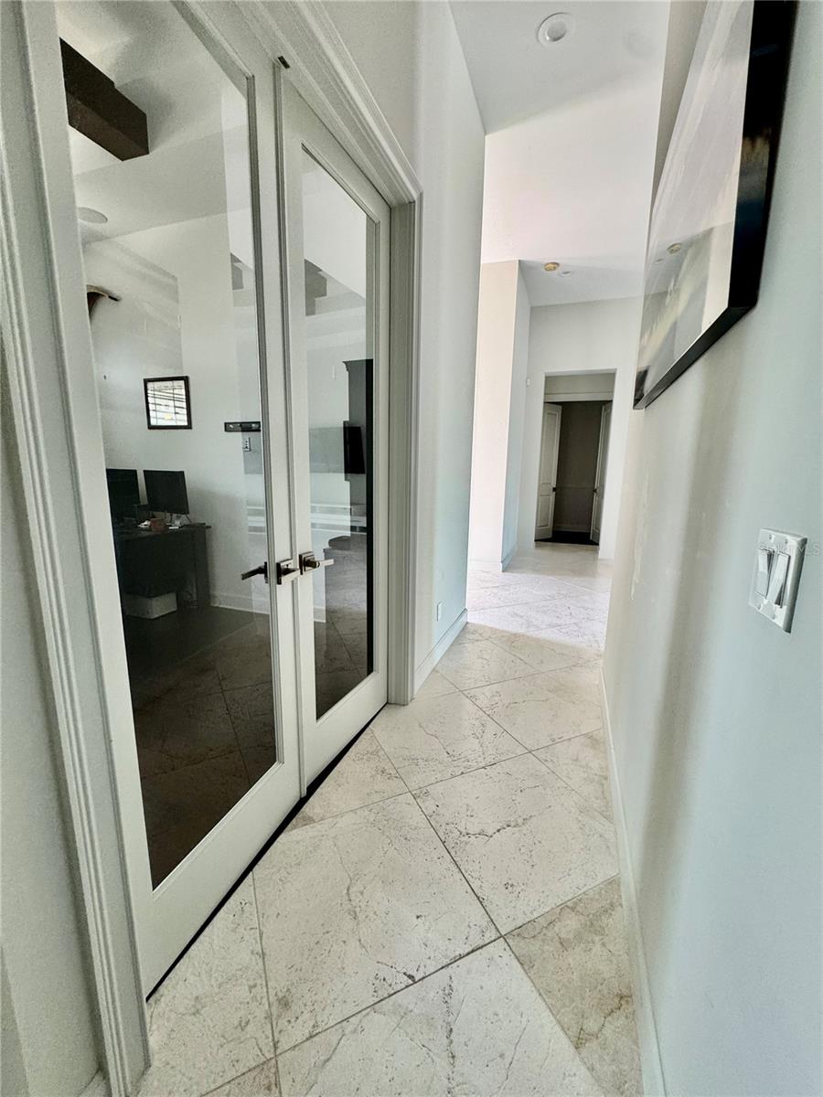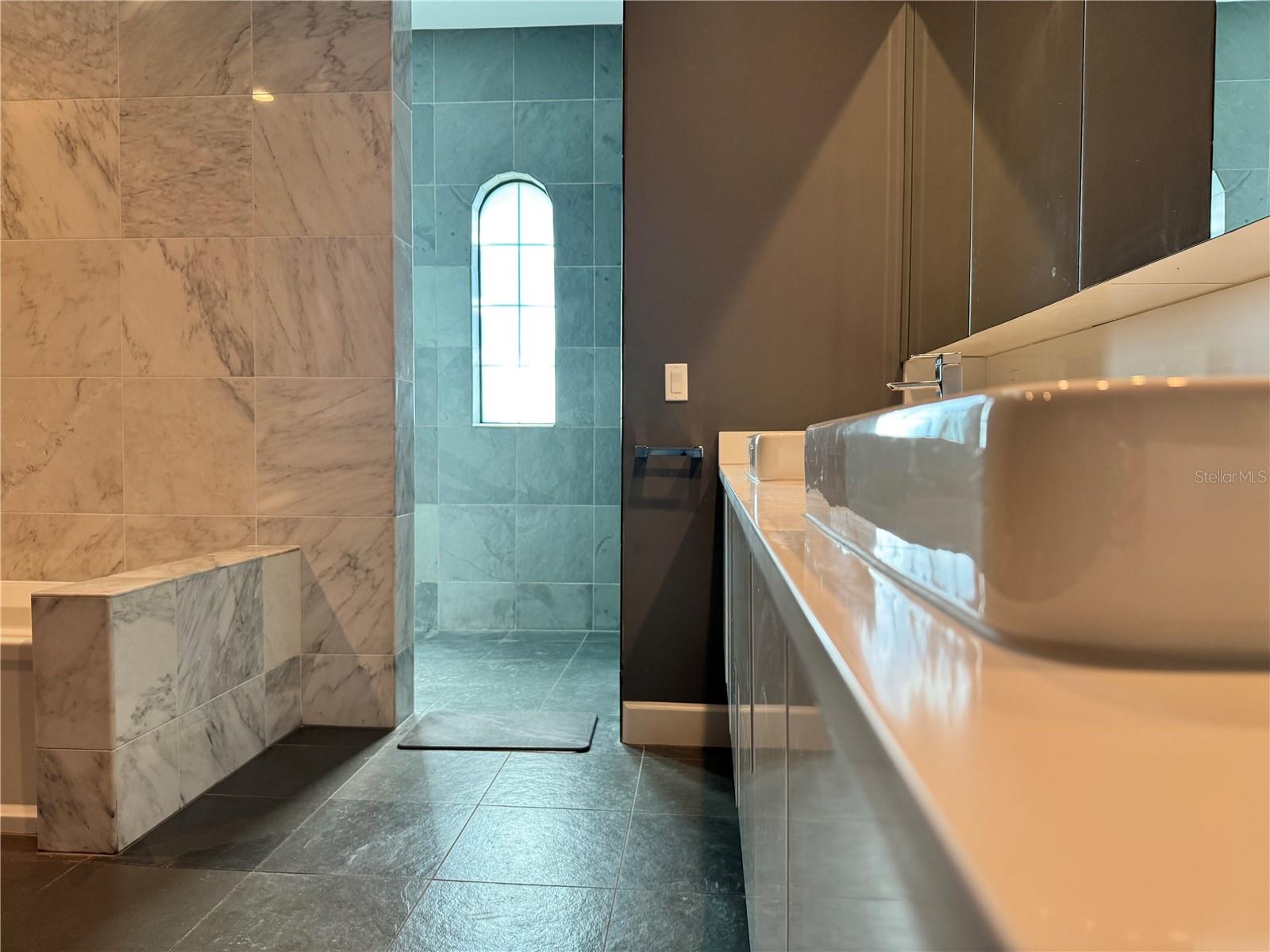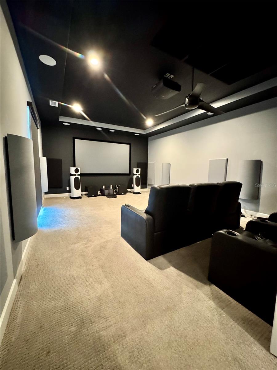 Stunning contemporary residence showcasing a bright, open layout with high ceilings and premium finishes throughout. The chef’s kitchen features sleek modern cabinetry, expansive stone countertops, and stainless-steel appliances, ideal for both everyday living and entertaining. The spa-inspired primary bathroom offers designer tile work, a walk-in rain shower, and dual vanities. Enjoy a dedicated office perfect for remote work, along with a media room featuring built-in acoustic panels, projector, and a professionally installed AV/smart home system with centralized equipment rack for whole-home audio, video, and automation. Step outside to a beautifully designed outdoor pool area, ideal for relaxing and entertaining