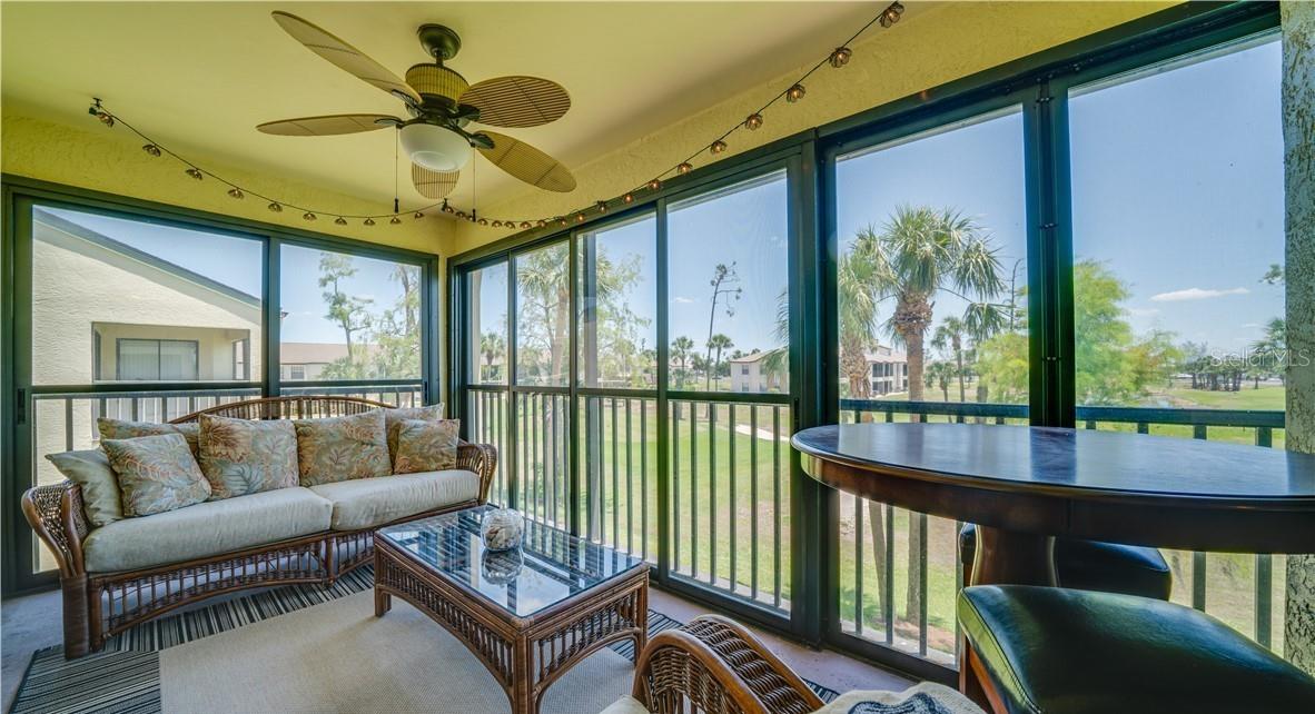 Welcome to country club living. Beautiful golf course views await from this corner unit in the Terraverde Country Club community. This unit features 2 bedrooms and 2 full baths, wood laminate flooring throughout, and a screened in balcony overlooking the golf course. A semi open floor plan provides spacious living space. It comes fully furnished and turnkey. The community offers a community pool, tennis courts, clubhouse, exercise room, golf, boat storage and a boat ramp that gives you direct access to Estero Bay. The location is close to shops and restaurants and the Fort Myers International airport.