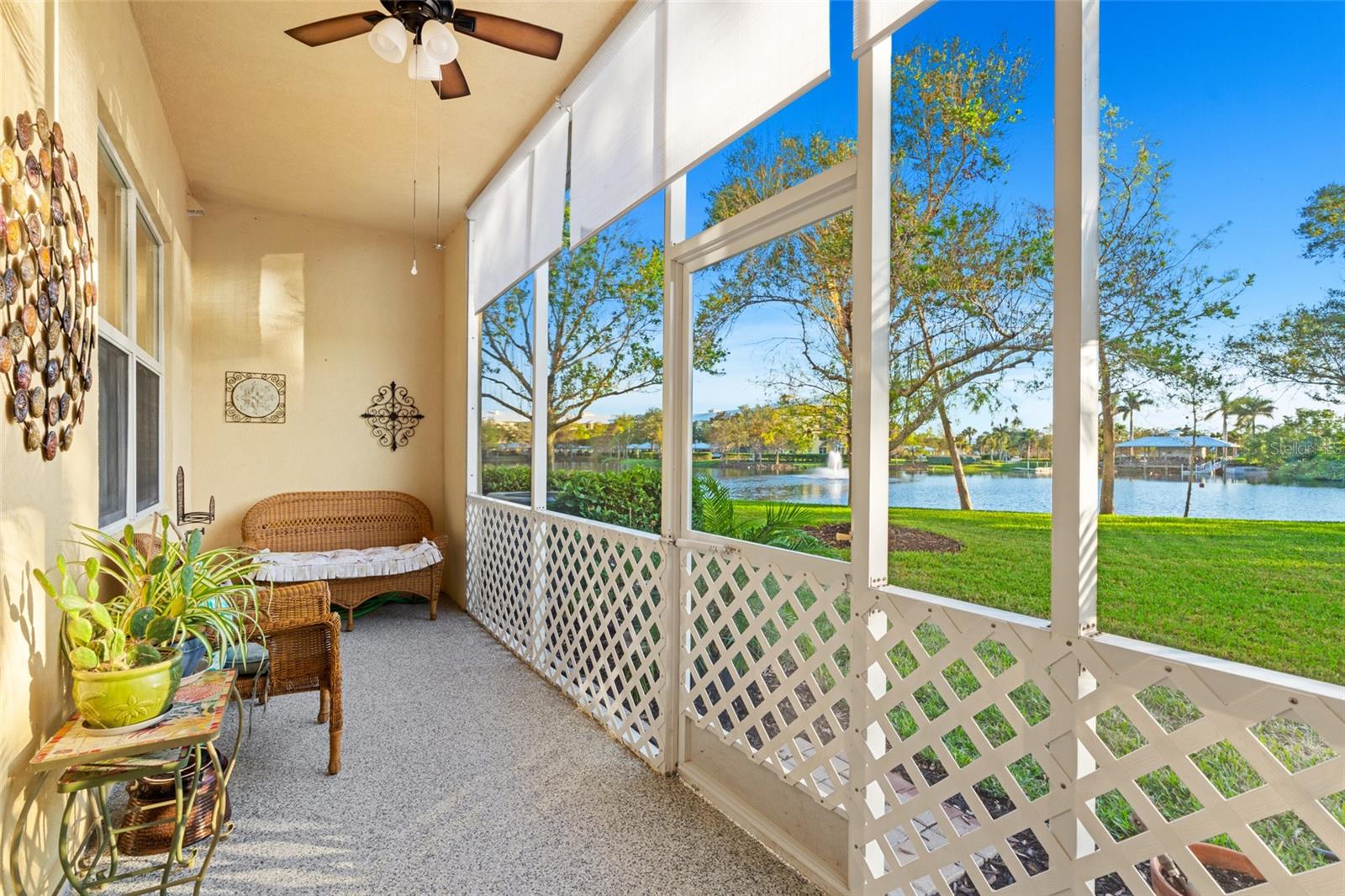 Indulge in the best of Southwest Florida living in this beautifully partially furnished lakefront townhome, perfectly nestled within the highly sought-after gated community of Sail Harbour at HealthPark. Offering exceptional privacy and picturesque waterfront views, this 2-bedroom, 2.5-bath residence combines elegance, comfort, and an unbeatable location. Perfectly positioned with coveted southwestern exposure, the home is bathed in golden natural light throughout the afternoon, creating a warm and inviting ambiance while showcasing the serene lake and fountain views. The spacious screened lanai serves as your own private retreat—an ideal place to enjoy morning coffee, evening sunsets, or simply relax while overlooking the tranquil water and lush tropical landscaping. Inside, the thoughtfully designed open floor plan flows effortlessly, featuring elegant tile flooring throughout the main living area, a convenient half bath, and a stylish kitchen designed for both everyday living and entertaining. Granite countertops, a breakfast bar, and a spacious pantry provide both sophistication and functionality. Upstairs, the split-bedroom design offers exceptional privacy for both owners and guests. The luxurious owner’s suite is a peaceful sanctuary, highlighted by two oversized walk-in closets, and a spacious spa-inspired bath with dual vanities, a soaking tub, and a separate walk-in shower. The guest suite is equally impressive, offering generous space, a walk-in closet, and its own private bath. Additional features include upscale Levolor window coverings for enhanced privacy and an attached one-car garage with durable epoxy flooring. Residents of Sail Harbour enjoy the peace of mind of a 24-hour gated entrance along with access to a sparkling community pool. Ideally located in the heart of South Fort Myers, this home is just minutes from the sugar-sand shores of Fort Myers Beach, Sanibel Island, and Captiva Island, as well as premier shopping, dining, entertainment, HealthPark Medical Center, and Southwest Florida International Airport. This exceptional residence offers more than just a home—it offers a refined waterfront lifestyle defined by privacy, convenience, and breathtaking views.