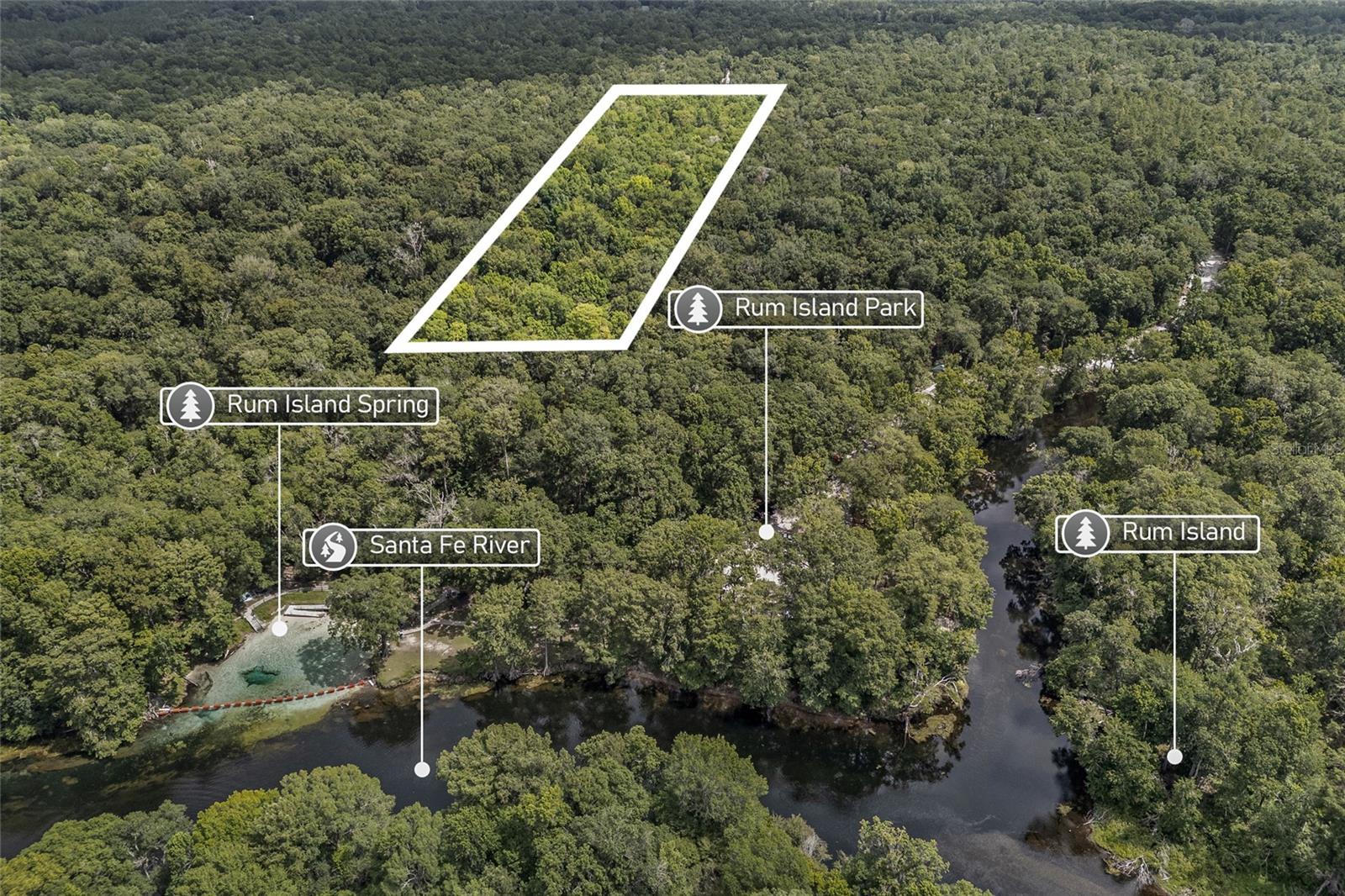 Rare Opportunity to own 10 acres sitting directly behind Rum Island Springs! The closest private lot to Rum Island Springs and only a stones throw away from Rum Island Park. Nestled in a highly coveted area renowned for its natural beauty and recreational opportunities, this expansive parcel offers limitless potential. This is a rare opportunity to own a sizable piece of land in one of Fort White's most sought-after locations. Whether you envision building your dream home amidst the beauty of North Florida or seeking a strategic investment, this property offers the space and serenity you desire. Rum Island’s exotic, romantic name comes from illicit moonshine stills hidden out here during the early 1900s. The second magnitude spring forms a 200-meter swimming hole just north of Rum Island itself, filled with crystal clear water, perfect for swimming, snorkeling and relaxing. The County Park is a little slice of North Florida perfection, with picnic tables under the shade of trees and loads of space to relax by the Santa Fe River. 10 acre parcel will be be split from the full 20 acres at closing. The additional 10 acres may also be avaliable for purchase. Buyer to verify builabilty and future use with county.
