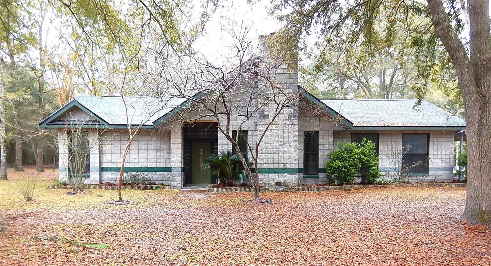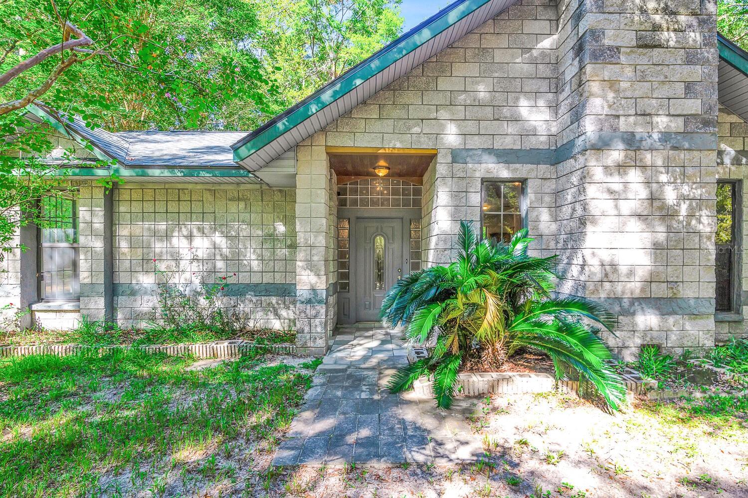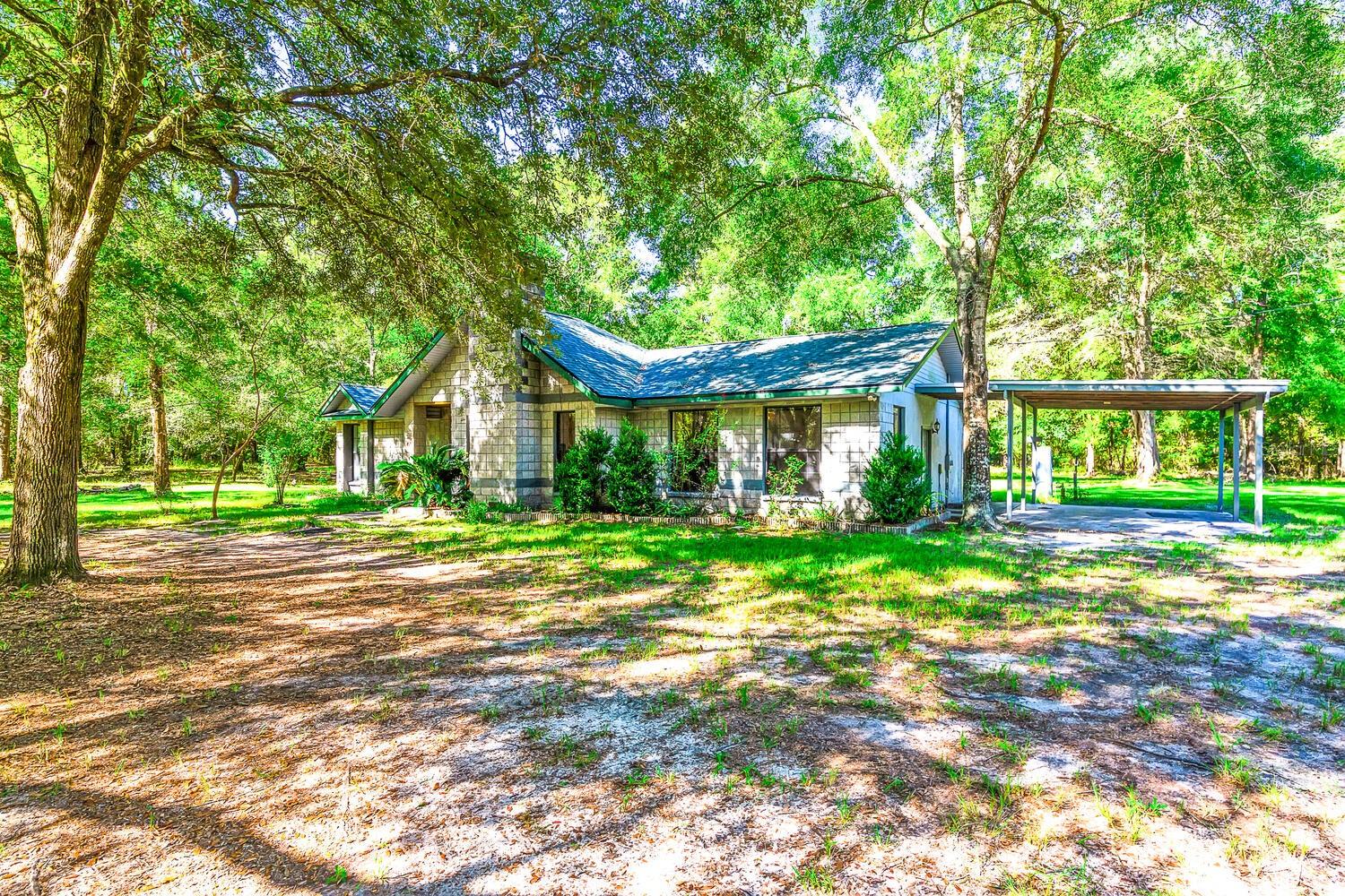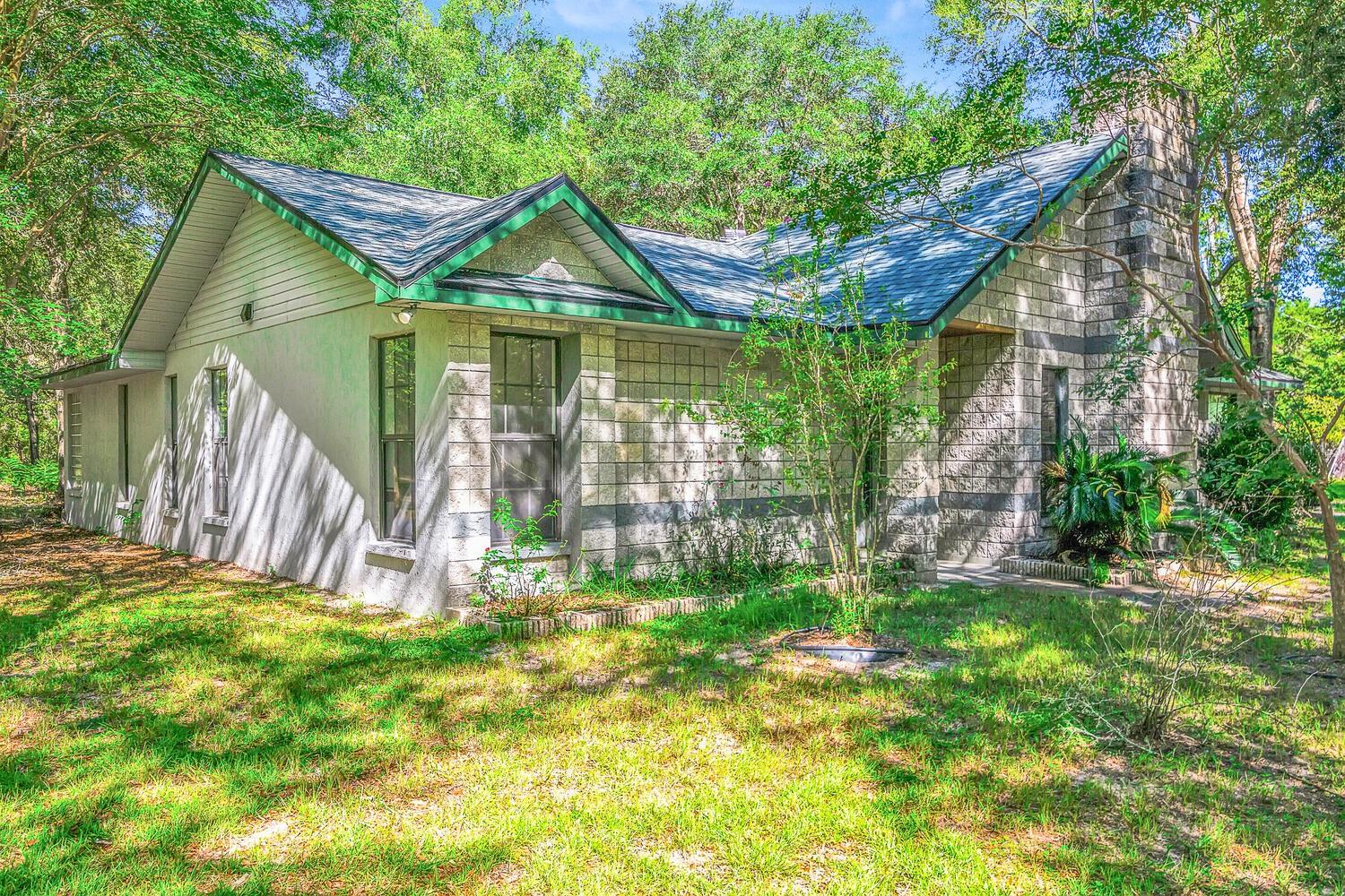 Price Reduced!! 5-Acre, Corner Lot with a concrete block home - New roof, new water heater, and new kitchen sink in 2024. New carpet, several new ceiling fans and fresh interior paint in March 2024. Now with NEW kitchen appliances - Range/Fridge & Dishwahser in Sept 2024!! The warm and comfortable living room features a vaulted ceiling & Wood burning fireplace with a stunning rock surround! Additionally, the home features a lg Family room, separate dining room, enclosed Florida room accessible from either the dining room or the master bedroom, plus a stone walled entrance foyer. Kitchen is open to both the living room and dining room. Great Prop for quite country living...add some fencing for livestock, or add your fruit trees and garden!! You will have plenty of room for multiple options! Please note that the price per SF includes the 5-acre lot, not just the home's SF! Most move in ready listings are over $200/per SF......and they are on regular subdivision lots! Plus, this home is just a short drive from multiple Florida Springs!!! Room measurements are approx., buyer should measure for themselves.