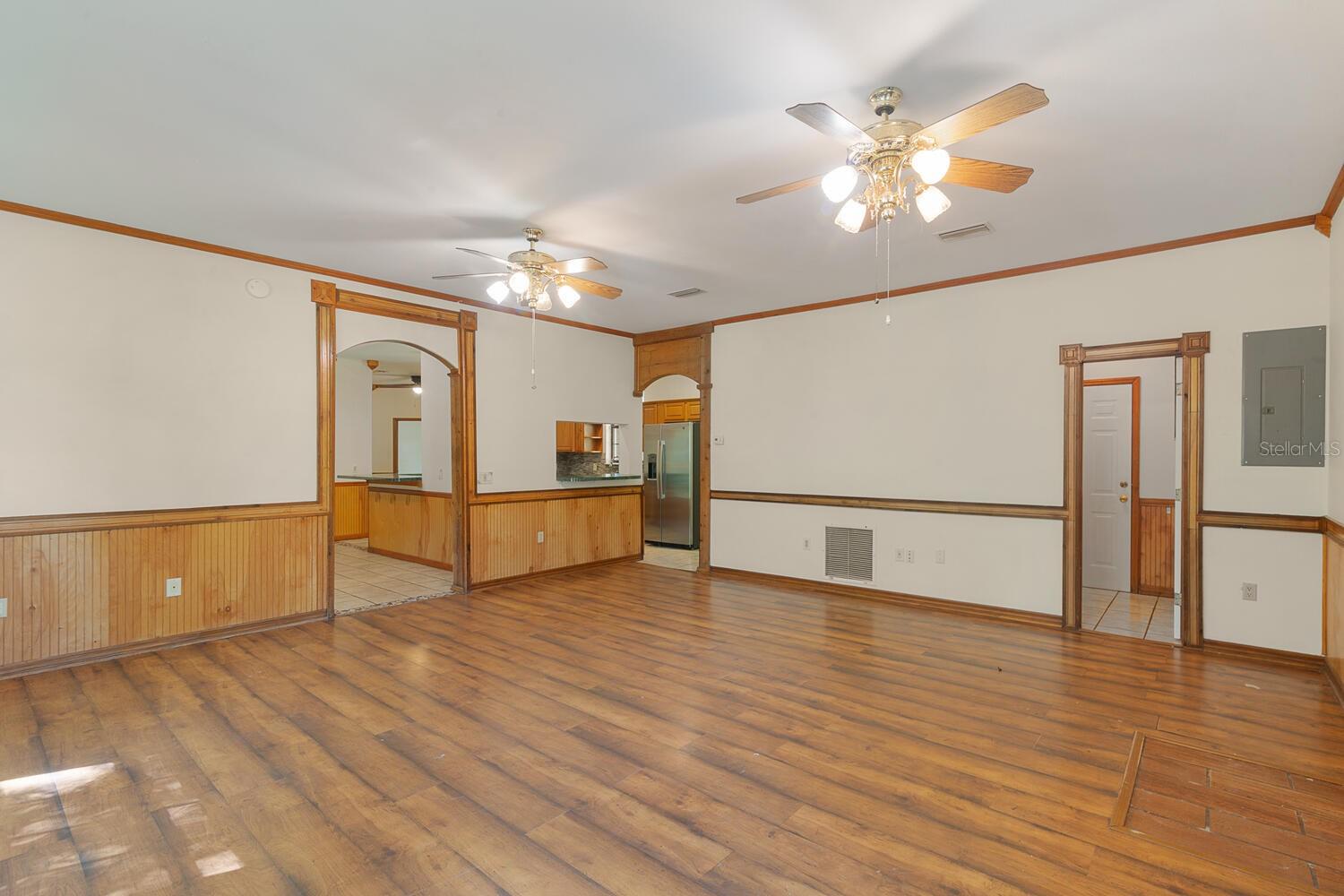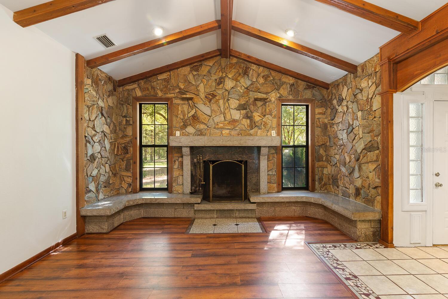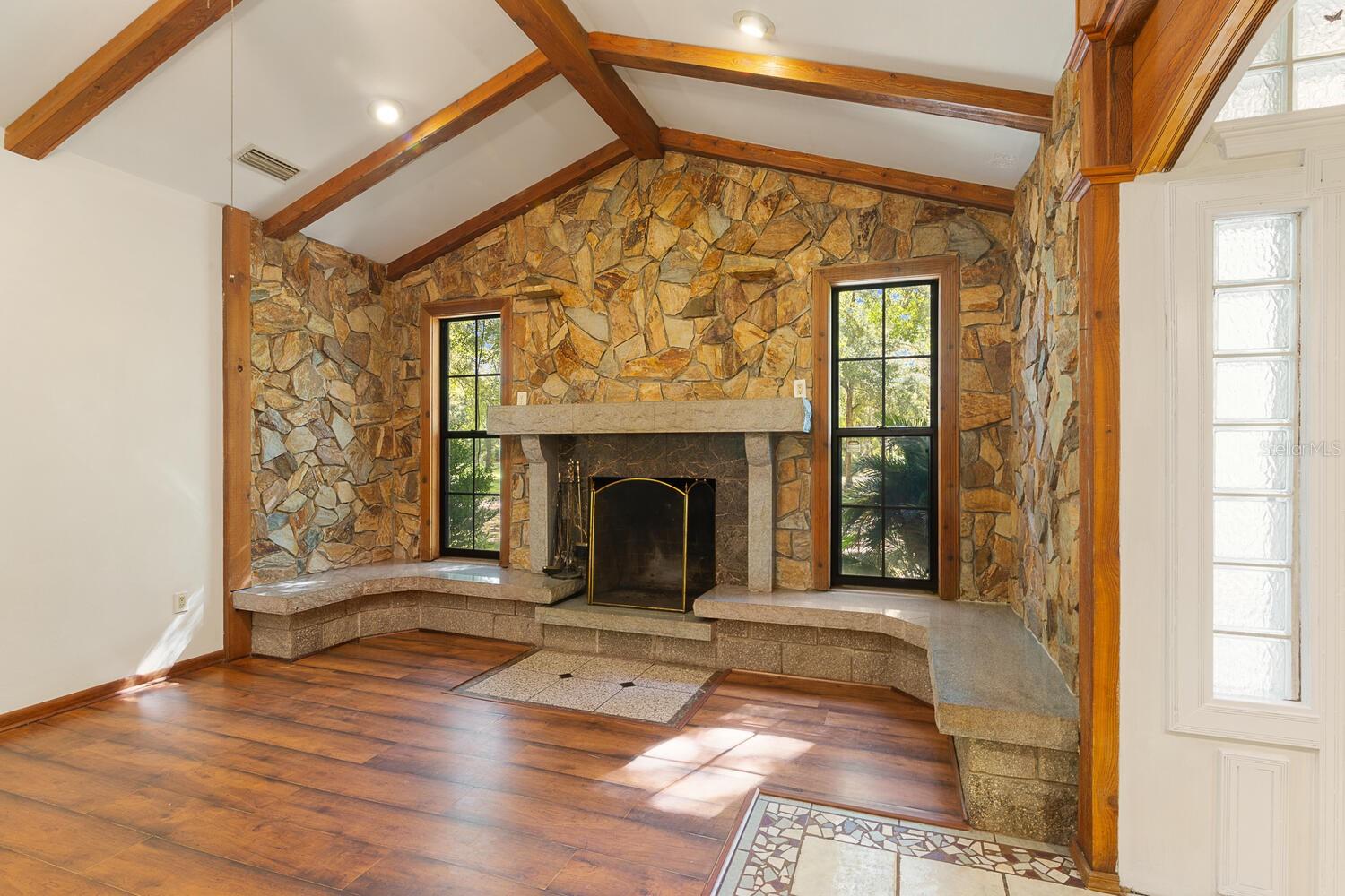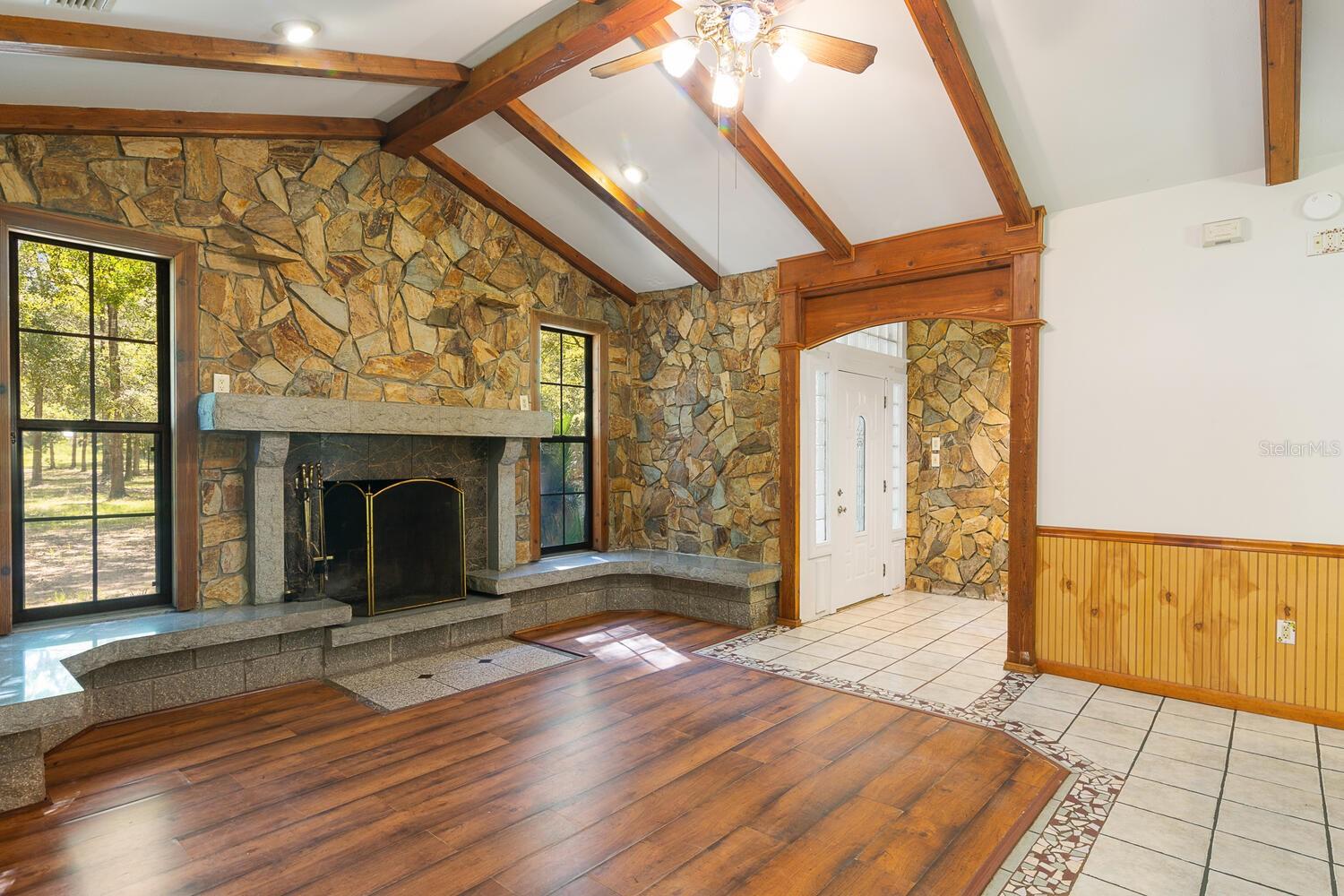 Price Reduced!! 5-Acre, Corner Lot with a concrete block home - New roof, new water heater, and new kitchen sink in 2024. New carpet, several new ceiling fans and fresh interior paint in March 2024. Now with NEW kitchen appliances - Range/Fridge & Dishwahser in Sept 2024!! The warm and comfortable living room features a vaulted ceiling & Wood burning fireplace with a stunning rock surround! Additionally, the home features a lg Family room, separate dining room, enclosed Florida room accessible from either the dining room or the master bedroom, plus a stone walled entrance foyer. Kitchen is open to both the living room and dining room. Great Prop for quite country living...add some fencing for livestock, or add your fruit trees and garden!! You will have plenty of room for multiple options! Please note that the price per SF includes the 5-acre lot, not just the home's SF! Most move in ready listings are over $200/per SF......and they are on regular subdivision lots! Plus, this home is just a short drive from multiple Florida Springs!!! Room measurements are approx., buyer should measure for themselves.