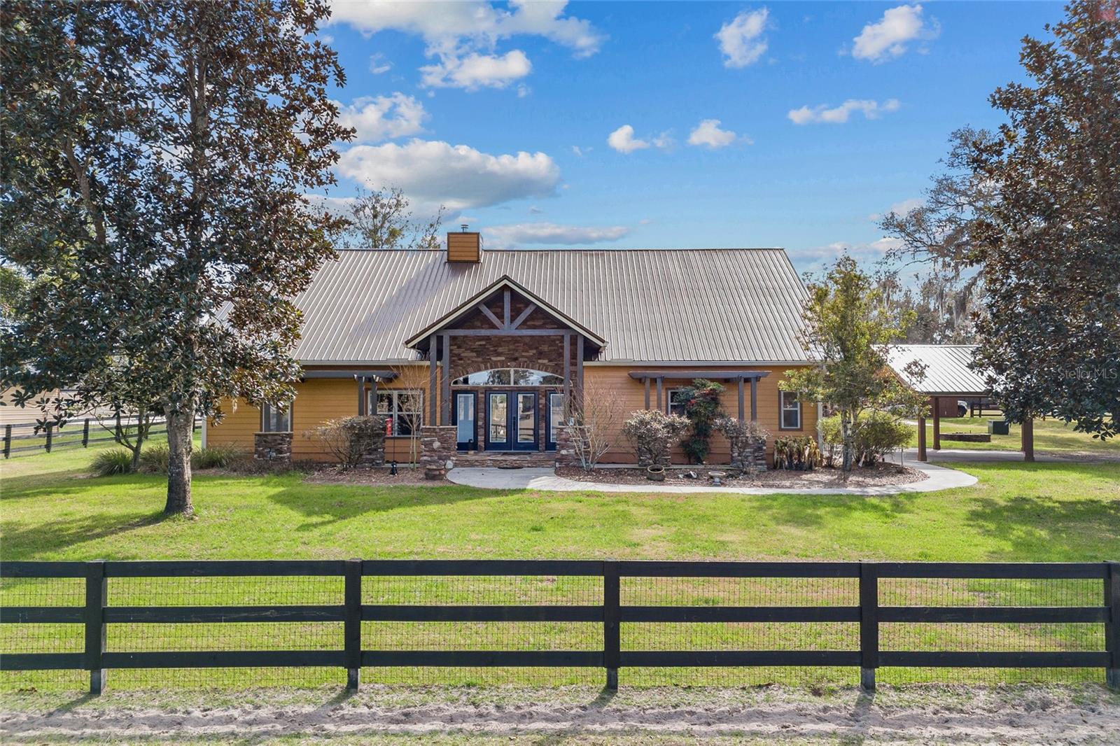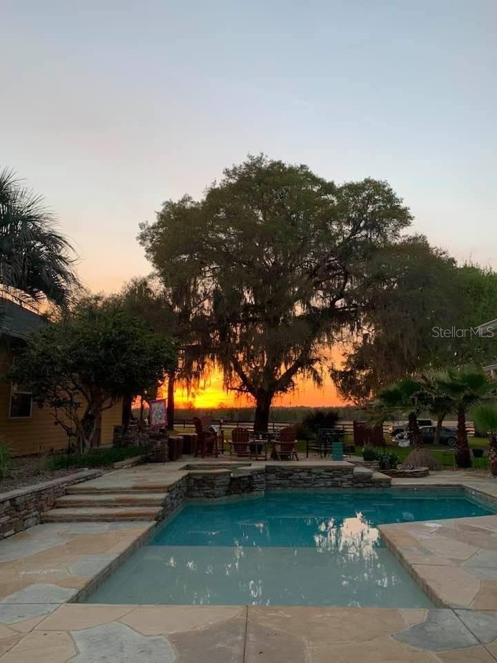 Price Improvement!! Seller motivated!! Welcome to your dream home in the gated riverfront Bluebird Landing! This custom-built retreat is nestled on 10 picturesque acres with so many upgrades and sunsets that will leave you in awe. This exceptional 4-bedroom, 3-bathroom plus a bonus room + loft home offers the perfect blend of luxury living and equestrian amenities. Ideal for horse lovers and those seeking tranquility, this property features everything you need for a comfortable and fulfilling lifestyle. As you approach the home, you’ll be greeted by the huge beautiful mossy oak trees and green pastures that provide the perfect backdrop for the stunning 3,000+ sq ft residence. Inside, enjoy an expansive open-concept floor plan with high ceilings, wood burning fireplace, bright natural light, and modern finishes throughout. The chef-inspired kitchen is a delight with new top-of-the-line appliances, granite countertops, and plenty of space to entertain. The spacious living and dining areas make the perfect setting for both family gatherings and quiet nights in. The master suite is a true retreat, offering a private sanctuary with an en-suite bathroom featuring a soaking tub, walk-in shower, and double vanities. Three additional generously sized bedrooms ensure there is plenty of space for family or guests with the largest guest bedroom equipped with attached oversized full bathroom that could function as an in-law suite with separate entrance. Step outside to your own slice of paradise. The sparkling pool with hot tub and waterfall provides a refreshing oasis for relaxation or entertaining, while the sprawling 10-acre lot offers plenty of room for riding, grazing, or exploring. Whether you're relaxing poolside or taking in the scenic views, this property invites you to enjoy its beauty every day. For equestrian enthusiasts, the property is truly a dream come true. The newly constructed 3-stall barn is equipped with everything your horses need, including an air-conditioned feed and tack room and wash bay. The barn is designed with the utmost attention to detail, ensuring that both you and your horses enjoy the highest level of comfort and convenience. But wait, there's more.. A custom-built 2-car carport, a two-story air conditioned workshop with space for storage or extra vehicles with a large upstairs loft for additional equipment and storage needs plus a 50amp RV hookup. The upgrades are endless with a new 26g metal roof plus added insulation in 2021, new fencing 2021, new propane spa heater 2022, new solar powered saltwater pool pump, new well pump 2023, resurfaced and painted pool deck in 2024, whole house water softener 2022, and the list goes on. This unique equestrian paradise combines luxury, practicality, and natural beauty, making it the perfect home for both you and your horses. Private ramp access to the Santa Fe River, famed for its crystal-clear waters and scenic beauty, perfect for kayaking, tubing, or simply enjoying nature. Nearby you'll also find iconic freshwater springs such as Ichetucknee, Ginnie, Blue and Poe Springs, inviting you to experience Florida's enchanting aquatic landscapes. This property is a short hack to River Rise State Park with 35+ acres of horse trails to explore or you can enjoy the 30 acres of trails throughout the community to ride or walk along the river and surrounding areas. Don’t miss your chance to own this one-of-a-kind property!
