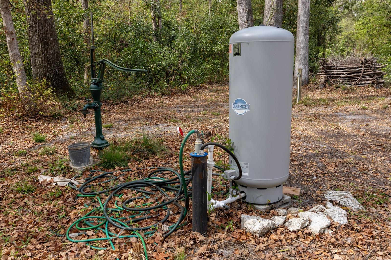 Rare opportunity - Own 4 adjoining lots with 3 wells, power, 4 septic systems & 3 RV power hookups. One lot has a tiny house designed for simple living with a full bathroom & is set up for an outdoor kitchen. Hand pump installed so water is available even when the power goes out. There is also a 12’ x 12’ shed with window AC unit for an additional tiny house experience. Each lot has power, septic system, well & RV connection. The land has been cleared around the living quarters but otherwise left naturally wooded adding to the beauty & privacy of rural living. Enjoy watching the colorful sunsets & abundance of wildlife while beginning your day or unwinding on the front porch. With $175.00 yearly fee, enjoy golf carting to the multiple neighborhood parks including 13 private parks & boat ramp accessing the Santa Fe River & Ichetucknee River. Wonderful opportunity for a family compound, income or just a great place to call home. Additional vacant lots available see GC538105 & GC538112 (totally 6 contiguous lots).