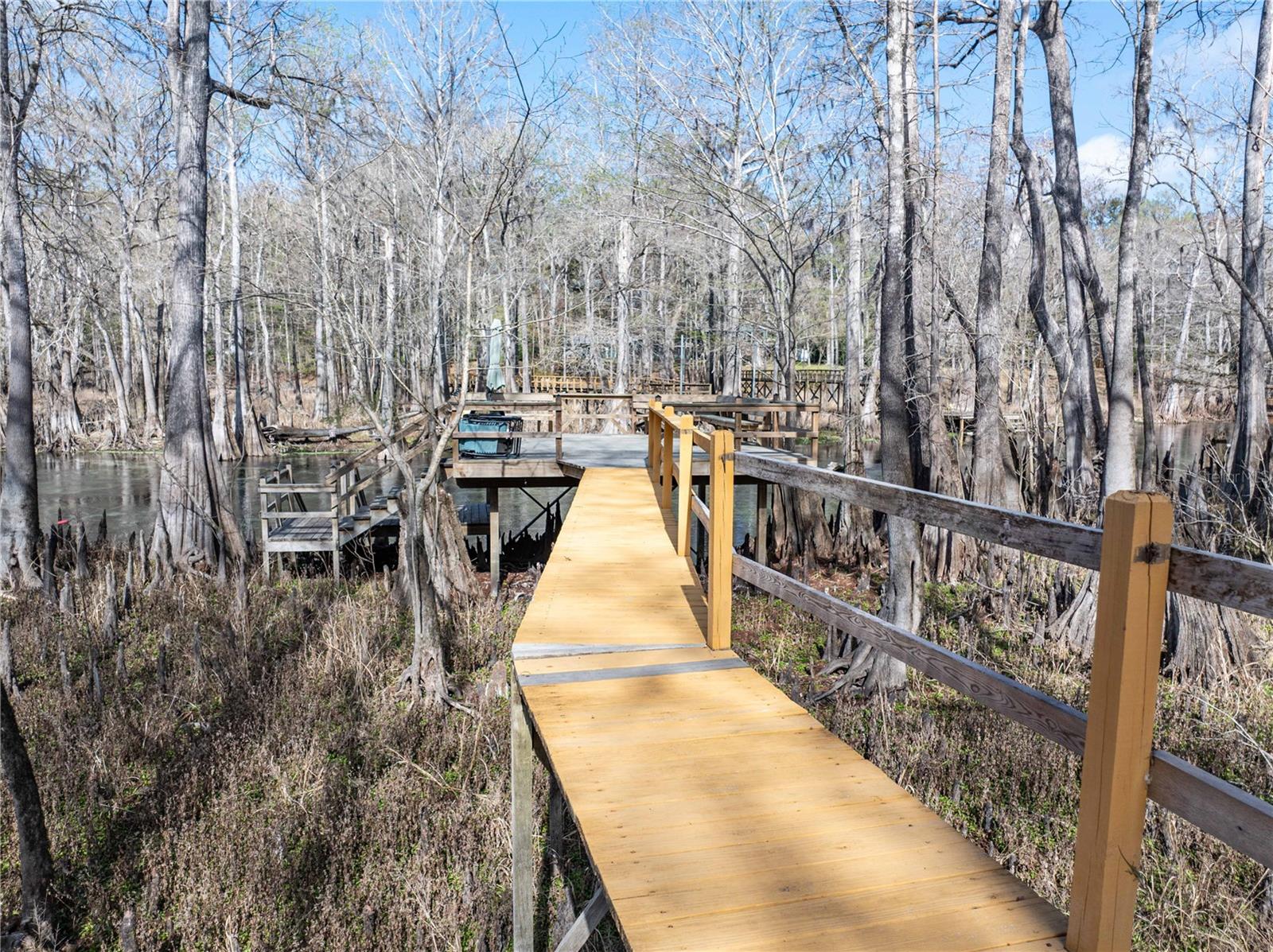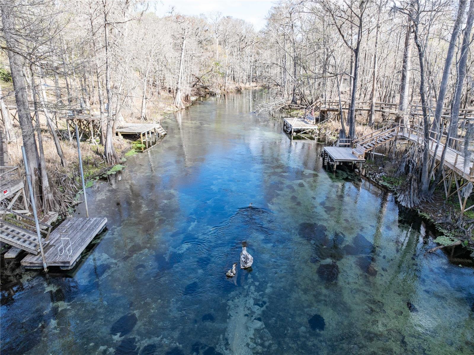 Experience true Old Florida living with this one-of-a-kind cedar-sided home nestled along the crystal-clear waters of the Ichetucknee River in North Central Florida. Surrounded by natural beauty and abundant wildlife, this unique two-story retreat offers the perfect setting for those seeking peace, privacy, and a connection to nature. The home features 3 bedrooms and 2 bathrooms, with two bedrooms and 2 full baths located downstairs, along with a bright loft area upstairs that leads to the third bedroom. Large windows and natural lighting throughout the home create a warm and inviting atmosphere. The functional kitchen showcases beautiful tile countertops, paired with stainless steel appliances, while the living area is highlighted by a distinctive cobblestone wood-burning fireplace that adds character and charm. Step out onto the screened porch to relax and take in the untouched natural landscape that gently leads to the river. A private boardwalk guides you through the natural setting to an open deck overlooking the exposed Ichetucknee River—an incredible vantage point where it’s common to see manatees, turtles, fish, otters, and other native wildlife passing by in the crystal-clear water. Residents of this community enjoy exclusive access to multiple parks and common areas along the Ichetucknee River, along with access to the nearby Santa Fe River and the historic Suwannee River. A private members-only boat ramp adds even more opportunity for boating, paddling, fishing.