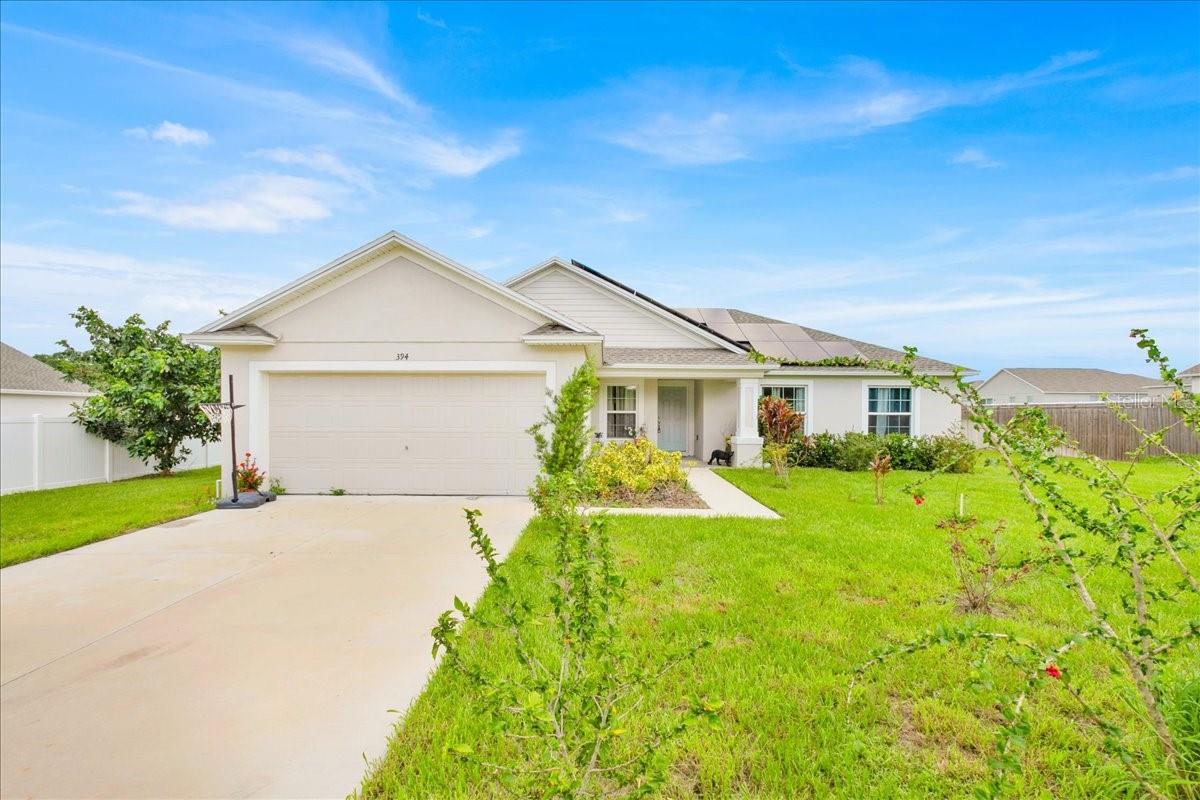 Welcome to 394 W 9th Street, nestled in the desirable Citrus Acres community of Frostproof. This exquisite residence offers 1,868 square feet of thoughtfully designed living space. The open floor plan seamlessly integrates the kitchen, great room, and dining area, creating an ideal environment for both family gatherings and entertaining. The kitchen features elegant countertops and overlooks the great room, which is enhanced by a large sliding door leading to an expanded patio—perfect for outdoor grilling and relaxation. The dining area benefits from a charming bay window, flooding the space with natural light. Designed with comfort and functionality in mind, this home includes a private study, ideal for a home office, alongside three spacious bedrooms. The owner’s suite is a tranquil retreat, thoughtfully separated from the other bedrooms for added privacy. It boasts a generous walk-in closet and an en-suite bathroom complete with dual sinks and a large shower. Additional highlights include a cozy nook/dinette adjacent to the kitchen and a dedicated laundry room, ensuring convenience for busy families. Citrus Acres is a newly established, enchanting community situated between two picturesque lakes, offering a variety of water-based recreational activities. Conveniently located near N Scenic Highway and US 27, this community provides easy access to Central Florida's premier attractions, including major theme parks, dining, and shopping options.