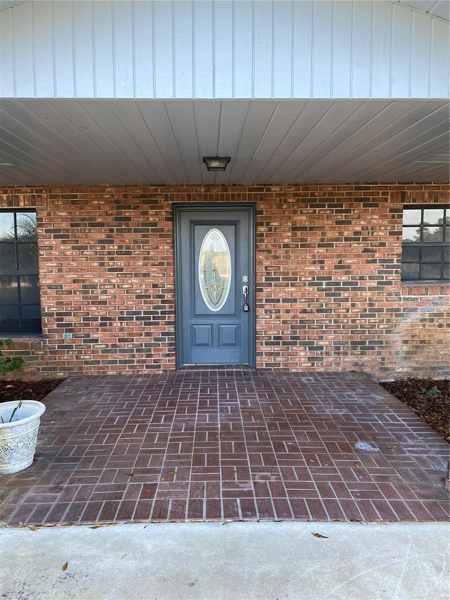 You will enjoy this exceptional home built for entertainment and large families. There is a wonderful opportunity to have an in’law suite apartment complete with a spacious kitchenette with private entrances. Newly renovated extremely large concrete block with brick home. Upon entering the front door there is a formal living room with built in Oak cabinets with glass doors, wood laminate floors, that flows into the family room featuring a beautiful brick fireplace. The foyer also flows into the guest bedroom side with 4 bedrooms and 2 full baths, a huge formal dining room complete with sliders going towards the great entertainment area complete with a custom built corner round brick bar w/new quartz top and bar sink. The exquisite kitchen has a custom beamed ceiling, center island, wall oven with new cooktop and new quartz countertop. New modern farm house light fixture is a focal point for a convenient family nook table. This room gives access to the hall leading to a considerable size bonus room with a private entrance that could easily convert to an apartment with access to an oversized laundry room with a large kitchenette. Tucked in the rear corner is the primary bedroom. Designed as a retreat of it’s own that Boast beautiful hard wood floors, corner fireplace and an elegant dressing table, primary bathroom complete with new dual vanity, separate shower, jetted soaking tub, a walk-in in closet, ample room for a sitting area inside and out the French doors trailing to the entertainment and pool area. On the backside of the property is a large 39x63’ metal storage barn for your gear and toys. A couple of storage sheds and a riser for filling tanks. This area is in the county which allows for farm animals. This site is close to large recreational lakes, private and public airstrips, and centrally located just over an hours drive to east and west coast of Central Florida. Easy driving distance to most major theme parks.