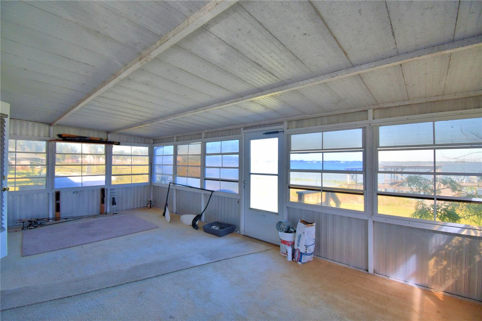 Lakefront home on Lake Reedy. This 3 bedroom 1 bath concrete block home has a brand new metal room. (Oct. 2025). 105' of lakefront with 2 slip boat dock. The dock is 65' long with landing is 15 X 16 so plenty of room for fishing or relaxing and watching the sunrise. There had been power at the dock. Updates to the home include electrical with 200 amp panel, plumbing updates in the bathroom, Carrier AC installed around May or June of 2025. Irrigation well has new pump but owner has never used the irrigation. Special features are gas stove in the kitchen with small tank and lake view, gutters, city water and sewer, storage shed with new roof, enclosed back porch, and landscaping. The back open porch is 12 X 4 with hand rail and steps leading out to the dock. Terrazzo flooring throughout, some rooms have been freshly painted, laundry is in the one car carport, the large 23 X 12 enclosed back porch affords amazing views of the lake with windows on 3 sides. See video link