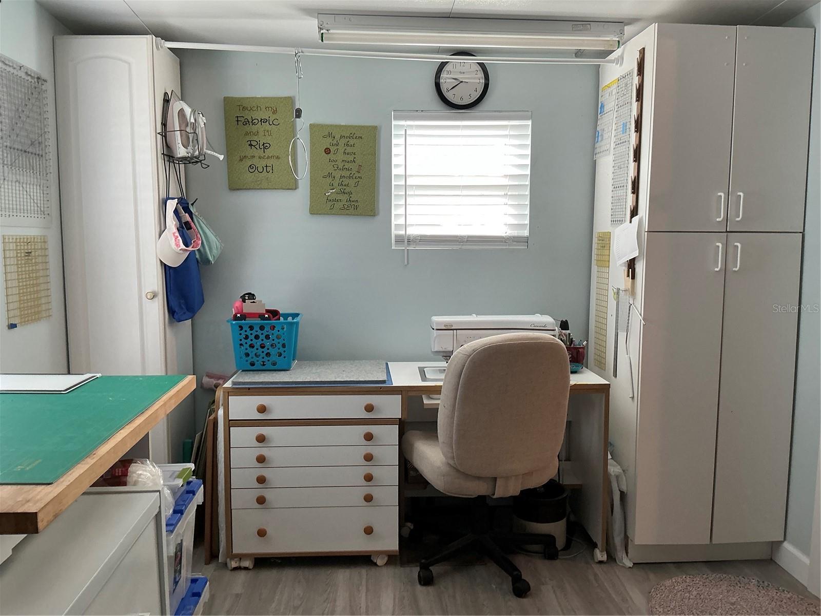 This stunning home was fully renovated in 2021 with meticulous attention to detail. Updates include new luxury vinyl flooring, cabinetry, countertops, fixtures, windows, and modern appliances -everything you need for comfort and style. The home’s signature Floridian aqua exterior flows seamlessly inside, creating a bright, coastal charm throughout every room. You’ll find attractive cabinetry and elegant solid-surface countertops, with porcelain in the kitchen and quartz in the main bath for a refined finish. A spacious bonus room currently serves as a craft room and a laundry area, offering versatile potential - it could easily be transformed into an office, guest space, or hobby room to suit your needs. The polished look of the exterior adds instant curb appeal, with a freshly painted driveway and a neatly maintained yard that reflects true pride of ownership. There's plenty of parking, including a double carport, extended driveway plus a convenient golf cart shed for parking and extra storage. The main entrance is conveniently located under the carport, offering sheltered access along with an entry to the lanai-so you can come and go comfortably, rain or shine. This home perfectly combines Florida charm with modern updates, offering a move-in ready retreat that's as stylish as it is practical. This home is located in central Florida, 55+, gated community. This an active, friendly community where you can be as involved as you like. The current HOA is $206 per month, collected twice a year and includes your lawn mowed & trimmed, cable, internet and the removal of the garbage for the park. This is truly a great home in a great community!
