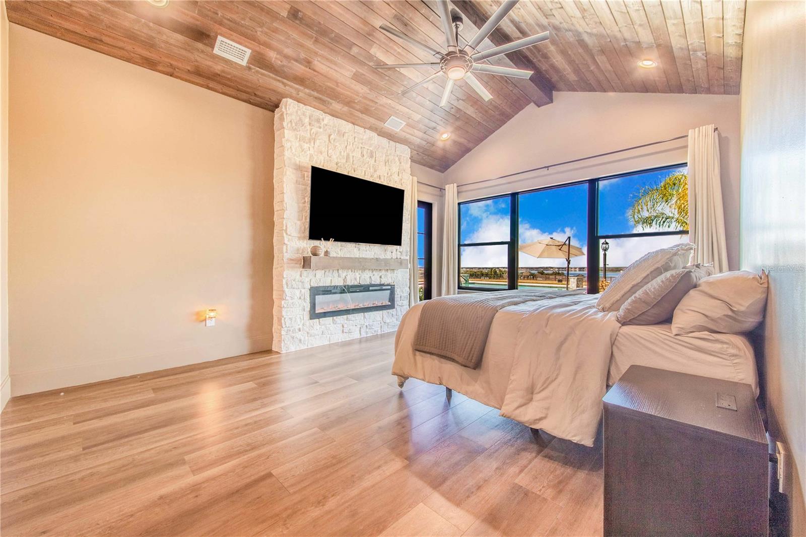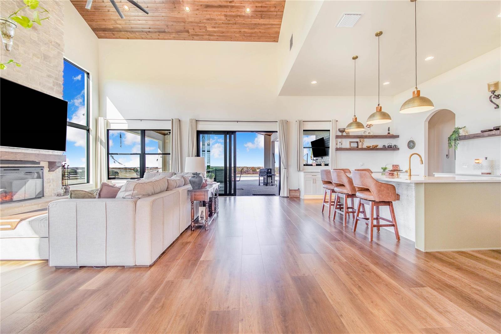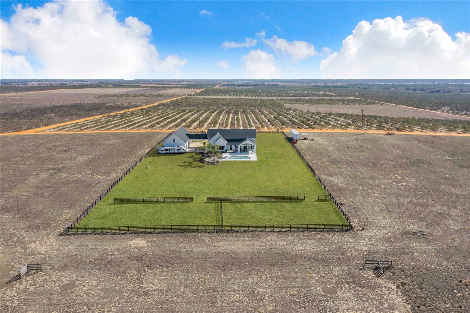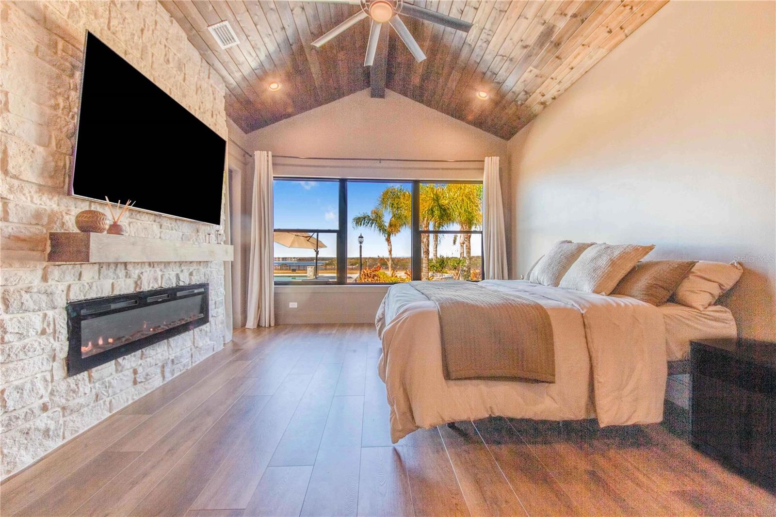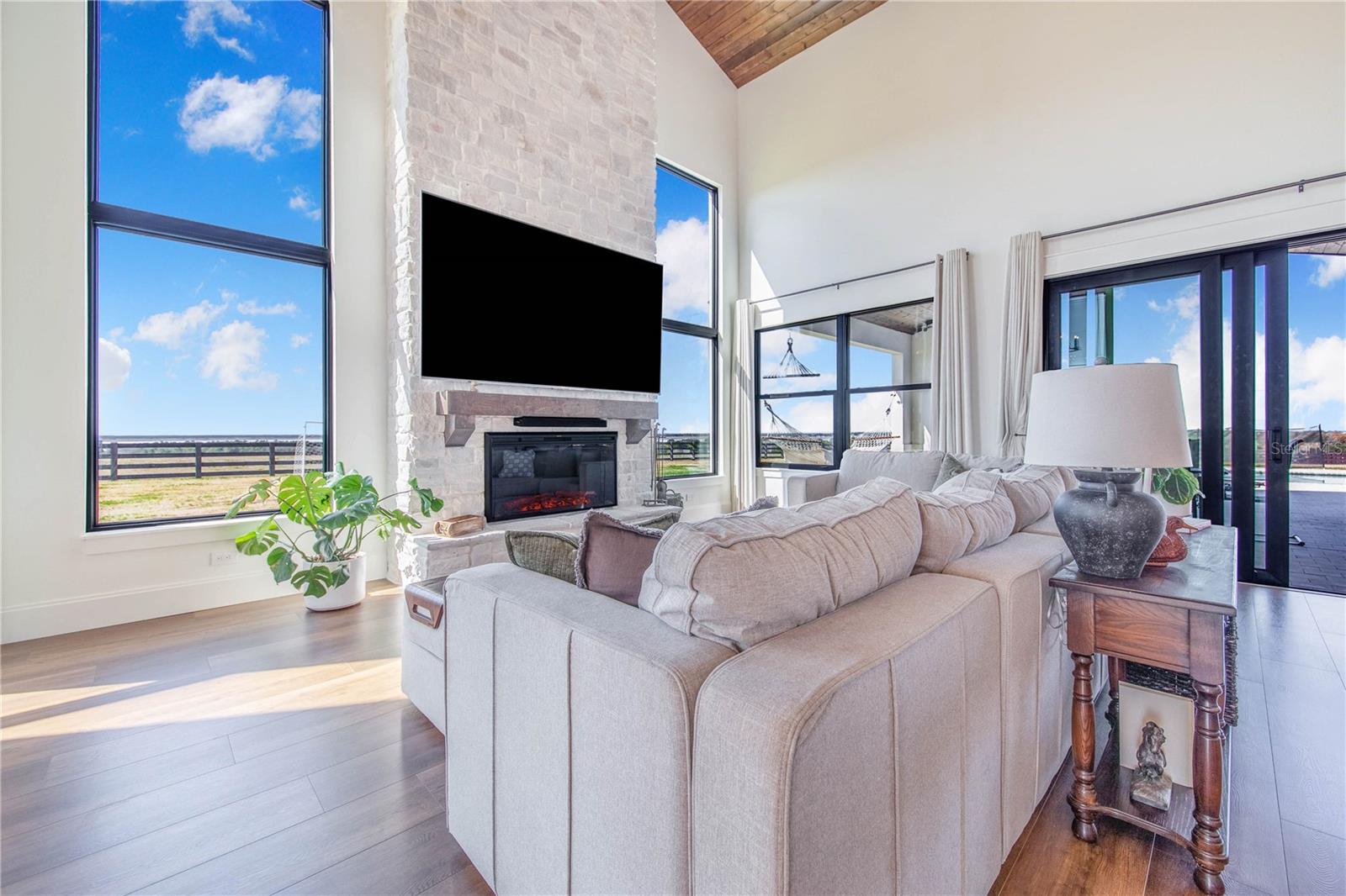 Experience refined lakefront living in this stunning modern French Colonial estate, custom built in 2025 and perfectly situated on 2 private acres overlooking beautiful Crooked Lake. Thoughtfully designed with exceptional craftsmanship and luxury finishes throughout, this property offers approximately 4,000 square feet of total living space, including a beautifully appointed main residence and a spacious private guest suite above the garage, total under roof is 6880 sq ft. Main Residence – 3 Bedrooms | 2 Bathrooms From the moment you arrive, the architectural details set this home apart. Enter through a solid iron front door with glass panes into an elegant foyer featuring a decorative ceiling, stone accent wall, and graceful arched doorways. Living Areas Expansive living room with breathtaking lake views through oversized, tall windows 10-foot ceilings with exposed wood beams 18-foot tongue-and-groove ceiling detail Electric fireplace with floor-to-ceiling stone feature wall Open-concept design connecting the living room and kitchen Dining room with an elegant tray ceiling Chef’s Kitchen (21' x 13') Oversized 9' x 5.5' island with Taj Mahal quartz countertops Countertop cooktop with built-in oven and custom vent hood Under-cabinet lighting throughout Floating upper shelves for a modern touch Spacious walk-in pantry (7' x 10.5') with built-in cabinetry Primary Suite (19' x 14') Tongue-and-groove ceilings with recessed lighting Electric fireplace with stone accent wall Spa-inspired en-suite bath featuring: Large walk-in shower with dual benches Separate makeup vanity Walk-in closet constructed with solid poured concrete, designed as a hurricane-safe room Additional Interior Features Wide-plank laminate flooring throughout Two guest bedrooms with walk-in closets Spacious laundry room (10' x 14') with upper and lower cabinetry and designer tile flooring Foam insulation throughout the entire home for enhanced energy efficiency and lower utility costs Outdoor Living & Entertaining Designed to embrace Florida’s natural beauty, the home seamlessly blends indoor and outdoor living. Sliding glass doors leading to a covered patio 18' x 30' Roman-style heated pool with tanning shelf Fire pit area perfect for enjoying sunset views over Crooked Lake Brick paver driveway, breezeway, and carport Permanent outdoor track lighting surrounding the entire home Professionally landscaped grounds Garage, Carport & Guest Quarters This property offers exceptional flexibility and storage. Four-car carport connected by a covered brick-paver breezeway Attached two-car garage with epoxy flooring Private 1,200 sq. ft. upstairs suite featuring: One bedroom plus office (optional second bedroom) Spacious living room and kitchenette combination Full bathroom Bonus room ideal for recreation, gym, or media space A True Custom Lakefront Estate Every detail of this home reflects thoughtful design, quality craftsmanship, and timeless elegance. From the architectural character and high-end finishes to the expansive lake views and resort-style outdoor living, this is a rare opportunity to own a truly custom-built retreat created with care and intention. A one-of-a-kind property where luxury, comfort, and scenic beauty come together seamlessly. The apartment will be completed within 30 days and pictures to follow upon completion.