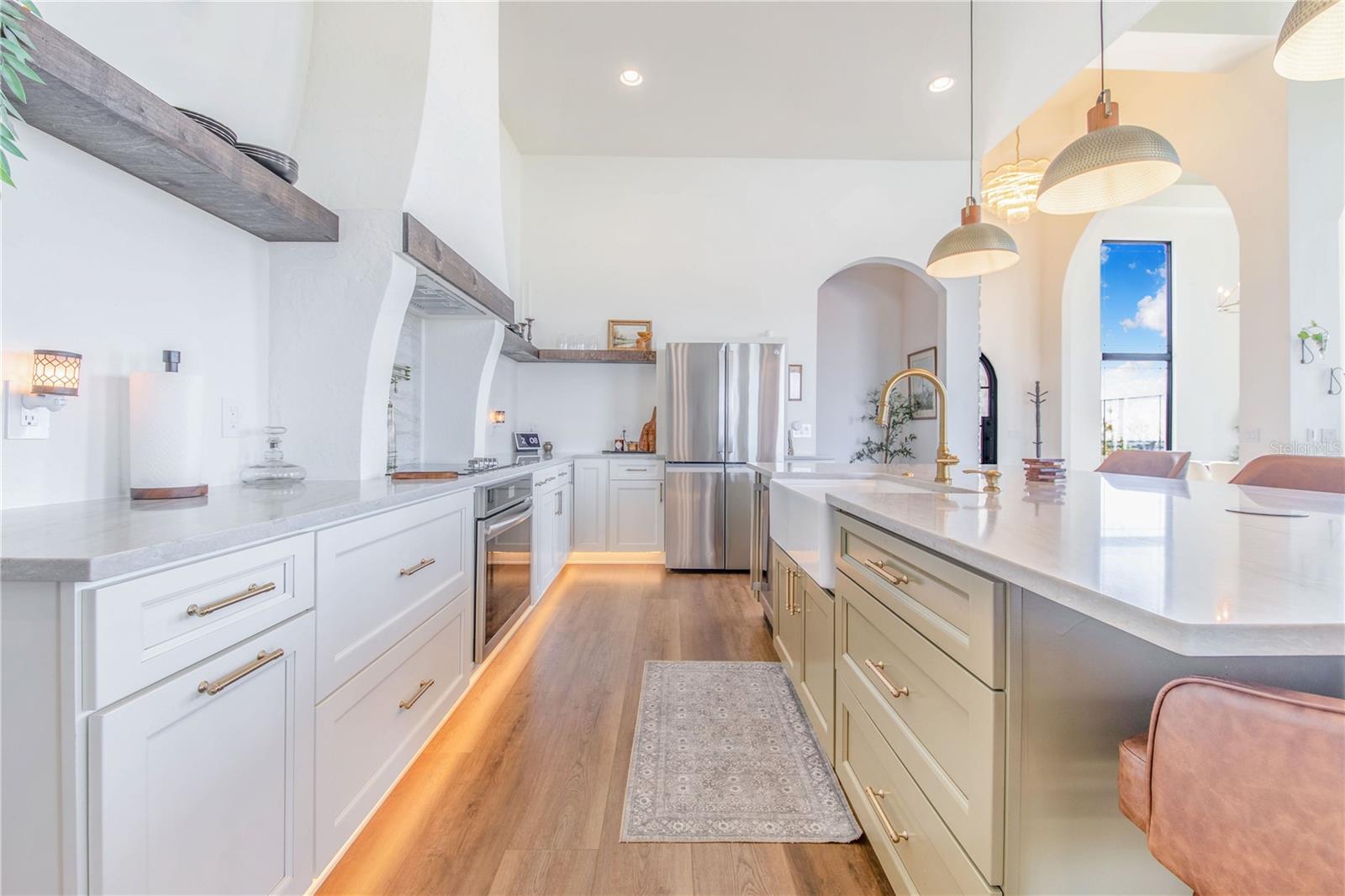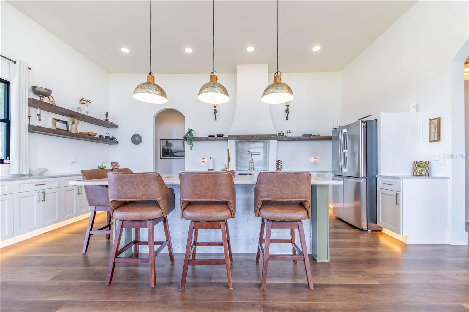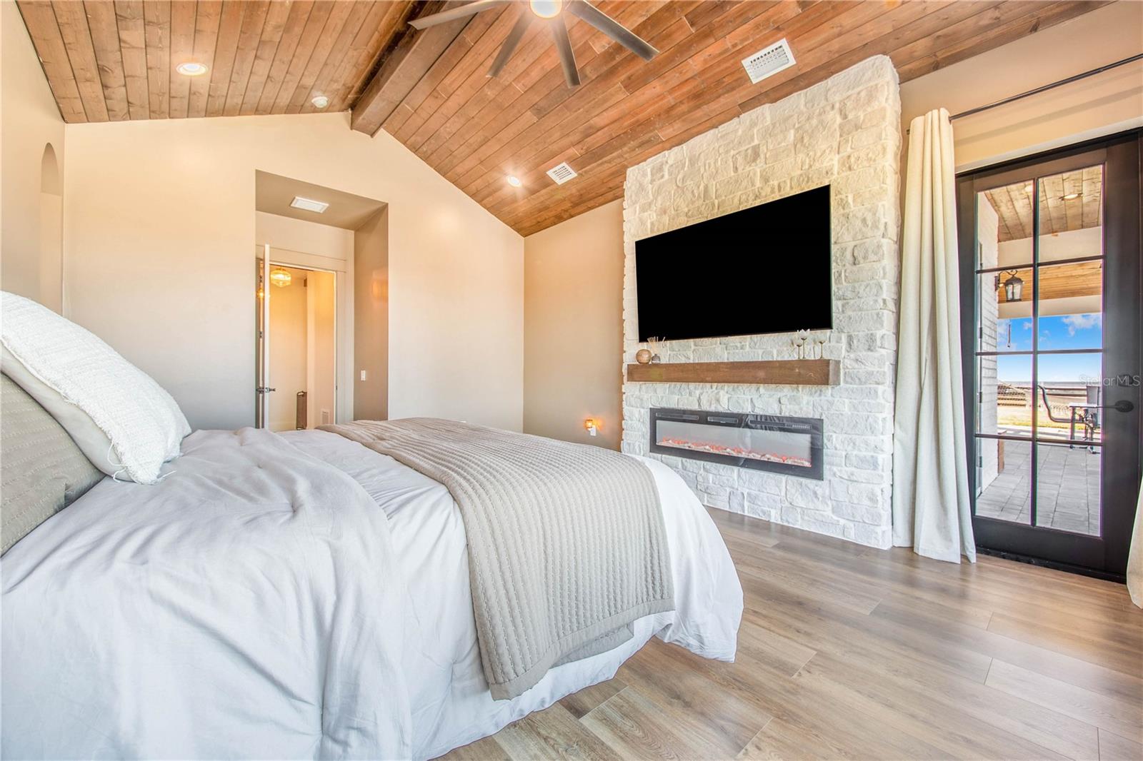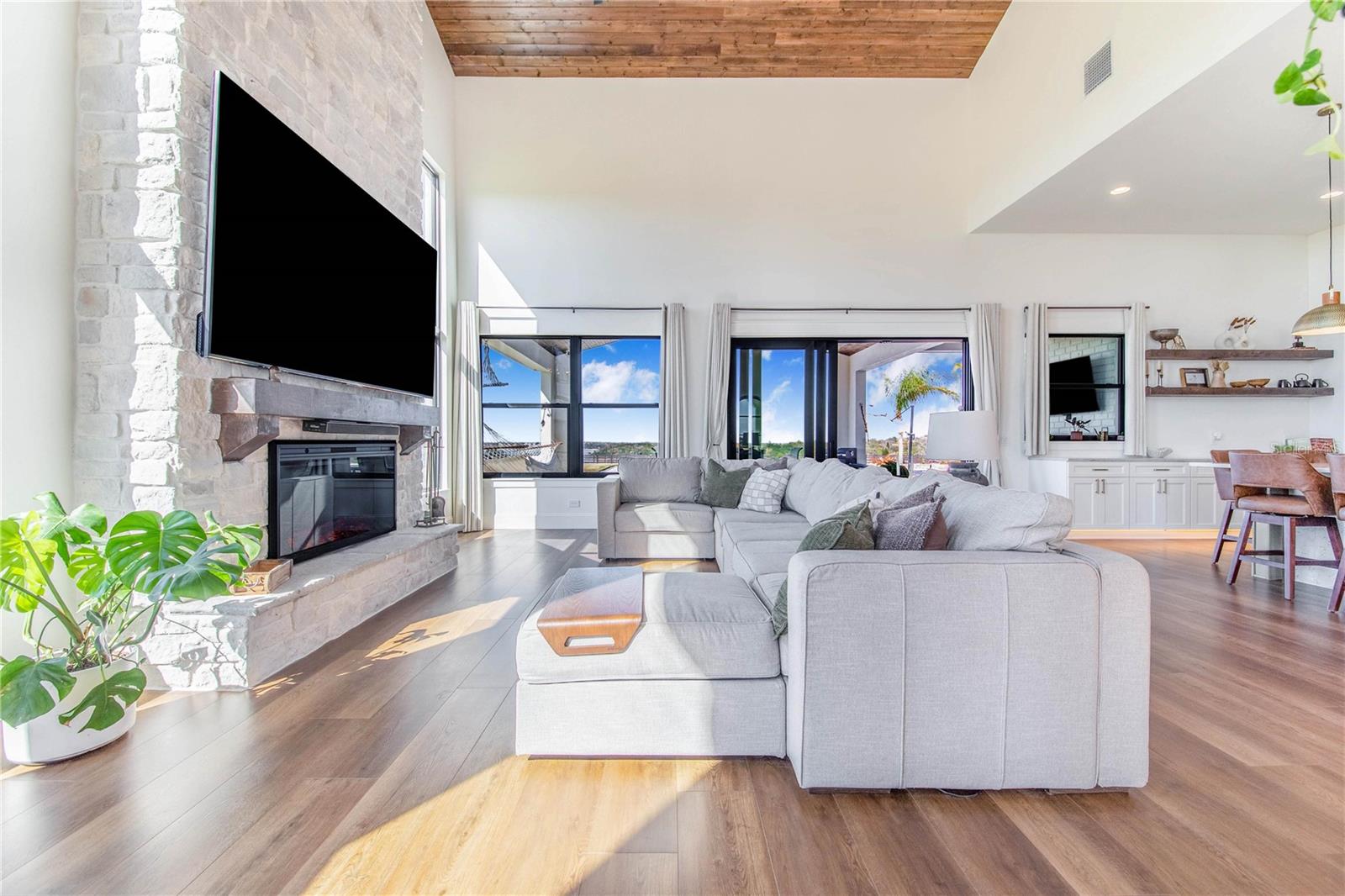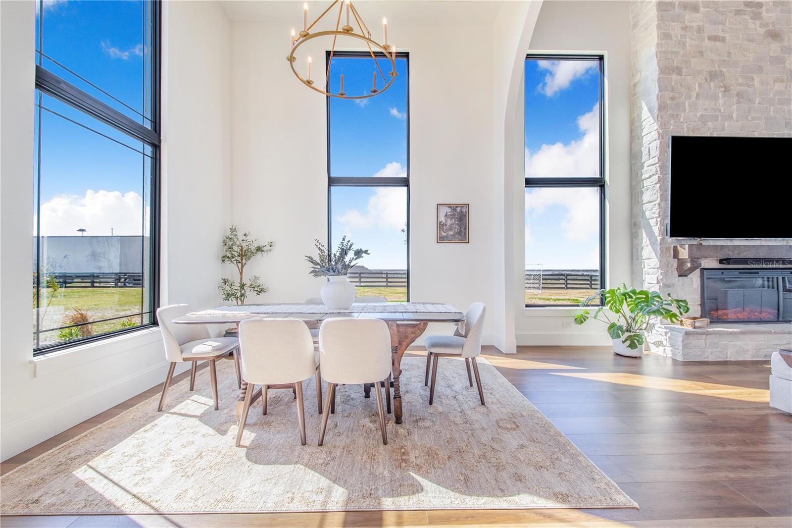 Experience refined lakefront living in this stunning modern French Colonial estate, custom built in 2025 and perfectly situated on 2 private acres overlooking beautiful Crooked Lake. Thoughtfully designed with exceptional craftsmanship and luxury finishes throughout, this property offers approximately 4,000 square feet of total living space, including a beautifully appointed main residence and a spacious private guest suite above the garage, total under roof is 6880 sq ft. Main Residence – 3 Bedrooms | 2 Bathrooms From the moment you arrive, the architectural details set this home apart. Enter through a solid iron front door with glass panes into an elegant foyer featuring a decorative ceiling, stone accent wall, and graceful arched doorways. Living Areas Expansive living room with breathtaking lake views through oversized, tall windows 10-foot ceilings with exposed wood beams 18-foot tongue-and-groove ceiling detail Electric fireplace with floor-to-ceiling stone feature wall Open-concept design connecting the living room and kitchen Dining room with an elegant tray ceiling Chef’s Kitchen (21' x 13') Oversized 9' x 5.5' island with Taj Mahal quartz countertops Countertop cooktop with built-in oven and custom vent hood Under-cabinet lighting throughout Floating upper shelves for a modern touch Spacious walk-in pantry (7' x 10.5') with built-in cabinetry Primary Suite (19' x 14') Tongue-and-groove ceilings with recessed lighting Electric fireplace with stone accent wall Spa-inspired en-suite bath featuring: Large walk-in shower with dual benches Separate makeup vanity Walk-in closet constructed with solid poured concrete, designed as a hurricane-safe room Additional Interior Features Wide-plank laminate flooring throughout Two guest bedrooms with walk-in closets Spacious laundry room (10' x 14') with upper and lower cabinetry and designer tile flooring Foam insulation throughout the entire home for enhanced energy efficiency and lower utility costs Outdoor Living & Entertaining Designed to embrace Florida’s natural beauty, the home seamlessly blends indoor and outdoor living. Sliding glass doors leading to a covered patio 18' x 30' Roman-style heated pool with tanning shelf Fire pit area perfect for enjoying sunset views over Crooked Lake Brick paver driveway, breezeway, and carport Permanent outdoor track lighting surrounding the entire home Professionally landscaped grounds Garage, Carport & Guest Quarters This property offers exceptional flexibility and storage. Four-car carport connected by a covered brick-paver breezeway Attached two-car garage with epoxy flooring Private 1,200 sq. ft. upstairs suite featuring: One bedroom plus office (optional second bedroom) Spacious living room and kitchenette combination Full bathroom Bonus room ideal for recreation, gym, or media space A True Custom Lakefront Estate Every detail of this home reflects thoughtful design, quality craftsmanship, and timeless elegance. From the architectural character and high-end finishes to the expansive lake views and resort-style outdoor living, this is a rare opportunity to own a truly custom-built retreat created with care and intention. A one-of-a-kind property where luxury, comfort, and scenic beauty come together seamlessly. The apartment will be completed within 30 days and pictures to follow upon completion.