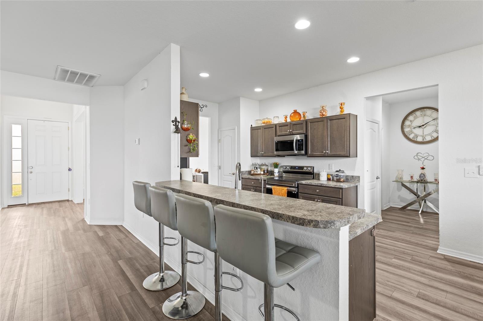 Welcome to this exceptional single-level, open-concept ranch, designed with comfort and style in mind. Built in 2022, this home boasts a thoughtfully designed split floorplan featuring 4 spacious bedrooms and 3 full bathrooms, with the primary suite perfectly situated on the opposite side for added privacy. As you step through the front door, you’re greeted by a grand foyer with a sightline extending to the back of the home, creating a sense of openness and sophistication. The home is flooded with natural light, complementing the airy design. The breakfast nook, formal dining room, and barstool seating in the kitchen make it a dream space for cooking, entertaining, and creating lasting memories. Step outside through the sliders to your expansive fenced-in yard, offering endless possibilities for outdoor living and relaxation. And with no HOA or CDD, enjoy the freedom to live life your way. Nestled in the charming town of Frostproof, this home is surrounded by incredible attractions and activities. Spend your weekends fishing at Lake Walk in Water (Weohyakapka), a stunning 7,500-acre lake, or camping at Lake Arbuckle Park. Explore the serenity of Bok Tower Gardens and its bird sanctuary, or make unforgettable family memories with a quick 60-mile drive to Walt Disney World, Orlando International Airport, and downtown Orlando. Come discover why Frostproof is quickly becoming a sought-after place to call home. This is more than just a house; it’s a lifestyle waiting for you. Schedule your private tour today!
