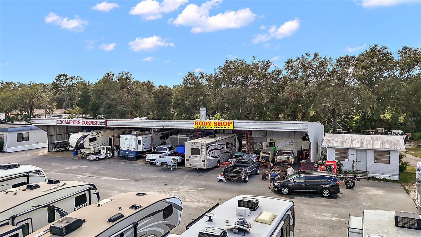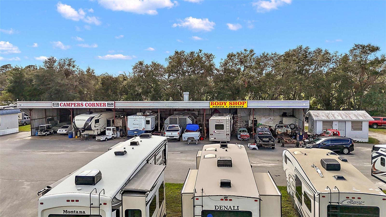 This 4.03-acre property has 444 +/- feet of frontage directly US Hwy 441/27. Located on the corner of US Hwy 441/27 and Spring Lake Road in Fruitland Park, Lake County, Florida. Corridor to The Villages. Median cut with turning lane provides access form both directions. According to FDOT website the average daily trips are approximately 29,000 trips per day. The property has operated as RV sales, service and storage facility for over 20 years and containing 4 building consisting of prefab office building, two open-air auto repair buildings with an auto paint booth, an older single-family residence, and a large monument sign. Total square footage under roof is approximately 11,476. The property is zoned industrial with the city of Fruitland Park and permitted uses could include Commercial/Industrial Service, auto sales, retail, Motor Vehicle Service Station., Commercial Parking, Motor Vehicle Towing and Impoundment just to name a few of the many possible uses. The property has 3 separate parcels and Utilities, water and sewer are available.