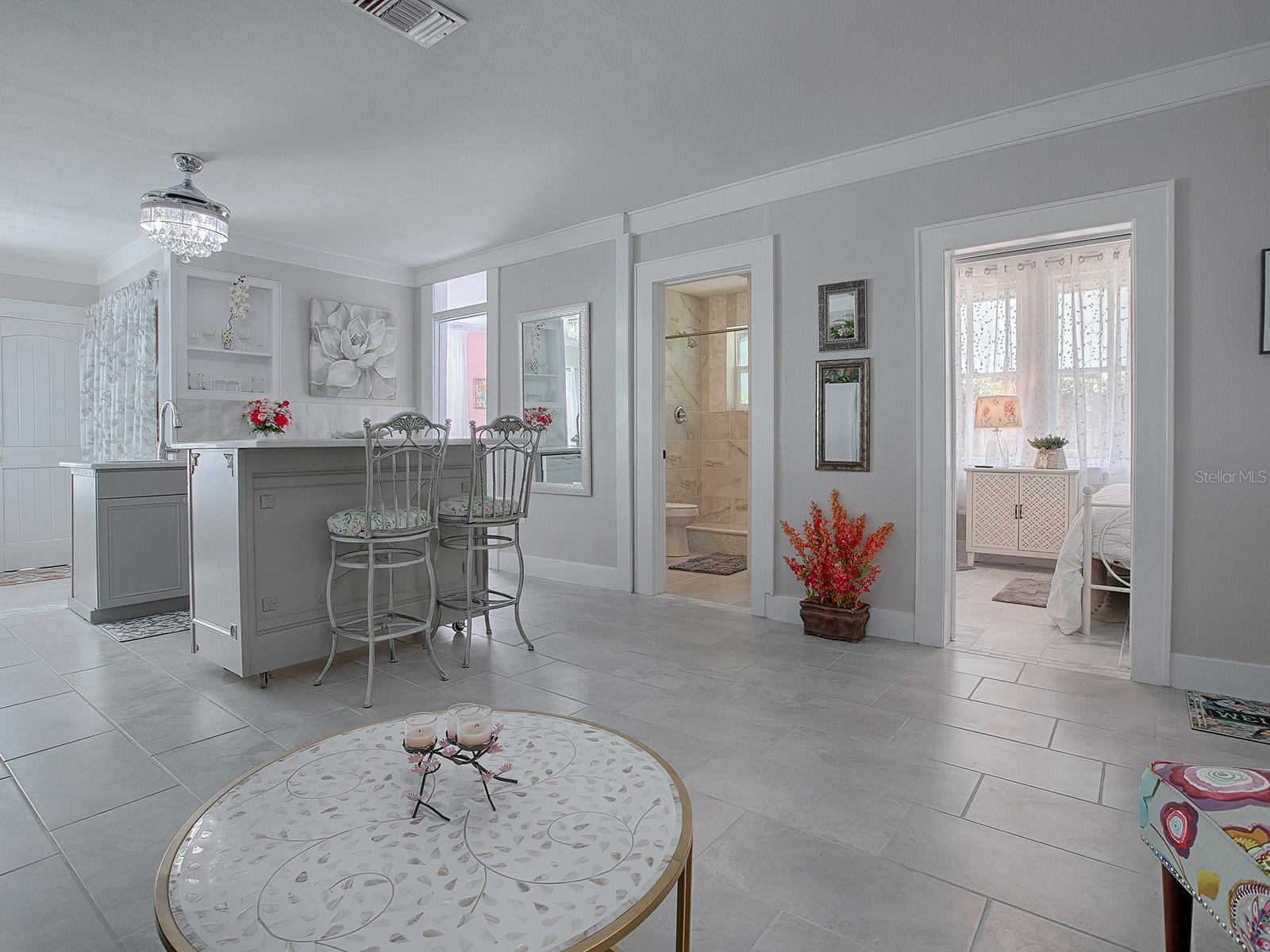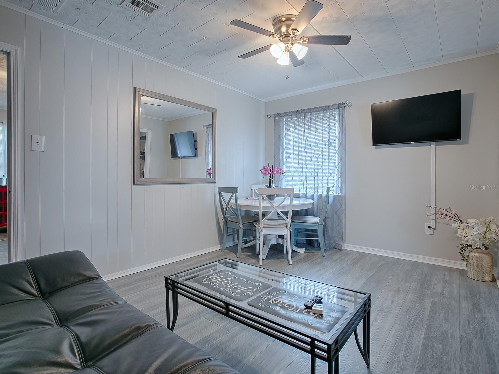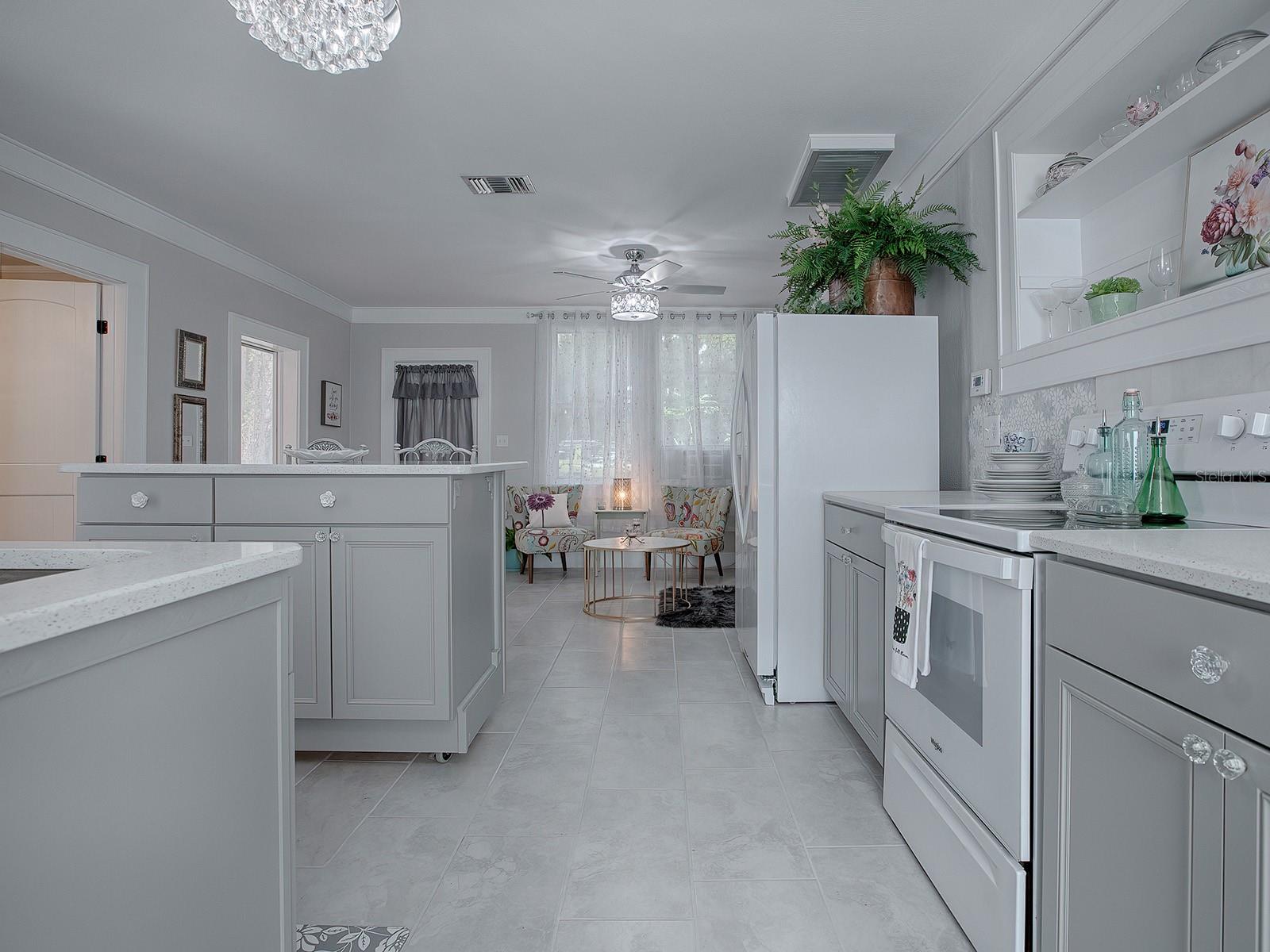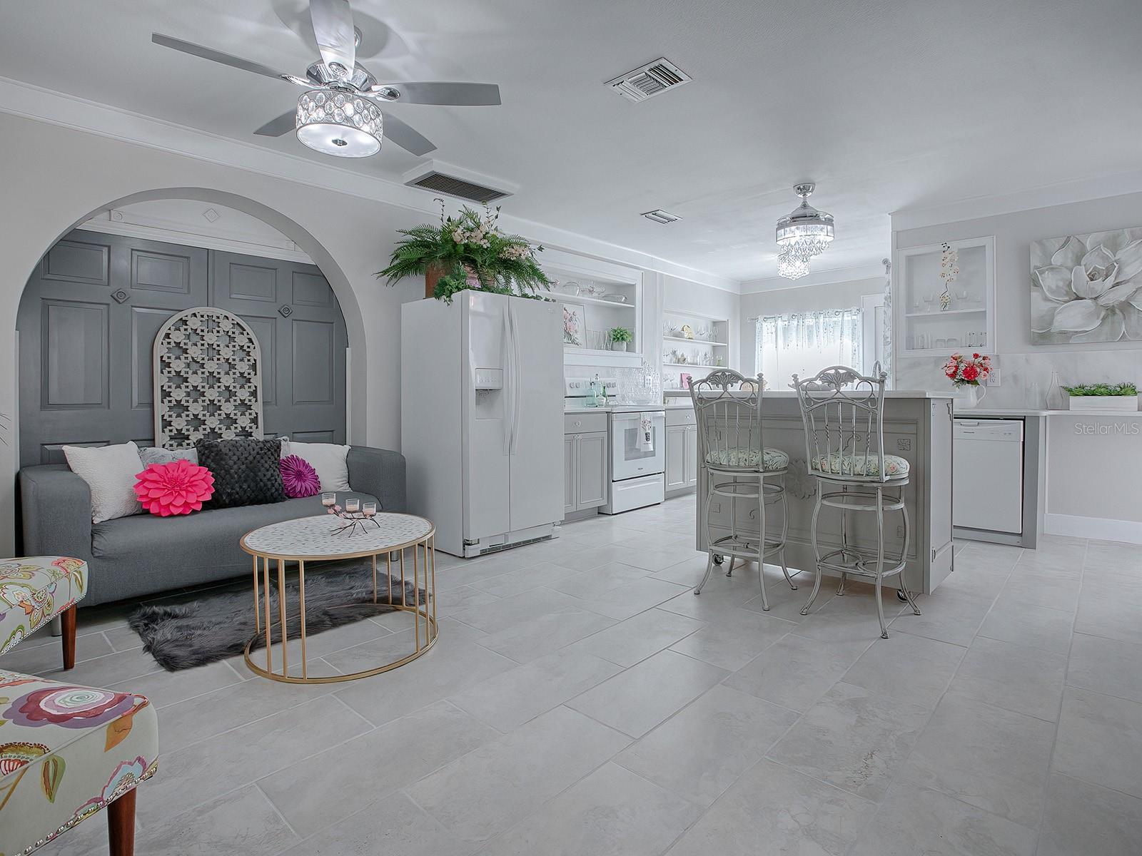 DARLING DUPLEX close to The Villages! This is the perfect INVESTMENT OPPORTUNITY. Live in one unit while generating income from the other. One side has 2 bedrooms and 1 bath and has not been lived in since its stunning remodel. It is pristine and waiting for you! Remodeled approximately 2 years ago, the second unit is currently occupied by a long-term tenant, providing IMMEDIATE RENTAL INCOME. The property is zoned Residential-Professional. This flexible zoning allows for a variety of uses, making it perfect for residential living, a business, or a combination of both. Imagine the possibilities: a vacation rental, day care, veterinary office, or even private office space. Yes, most furnishings can be included, adding incredible value and convenience. Exterior renovations in 2024 included new metal roof, exterior paint, new lighting, new landscaping, and decorative rock enhancing curb appeal. Interior renovations in 2024 included new tile: ceramic, marble, mother of pearl; and new elegant wood crown molding. The upgraded kitchen included new cabinetry, QUARTZ countertops, and a decorative backsplash. The bathroom upgrade included new toilets, tile, GRANITE countertops, and new above ground plumbing. Additional stylish enhancements included new lighting, ceiling fans, paint, switches, and ALL NEW flooring. This unique property blends modern upgrades with timeless appeal, making this an excellent investment opportunity! Close to restaurants and shopping in Brownwood and Sumter Landing. Just getting started in investment? This may qualify for zero down financing. Ask me how!