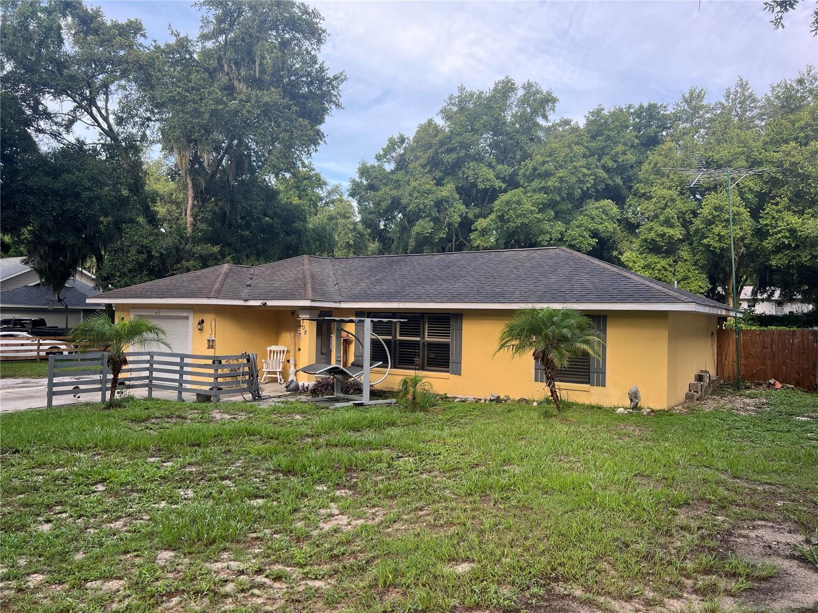 PRICE REDUCTION!! Block & Stucco home with 2/2 split bedroom plan and true Open concept - Living room, dining room and kitchen all in one great room. Home is perfectly set in a peaceful neighborhood with a spacious yards among mature trees; yet the convenience to all of The Villages amenities such as nightly entertainment at the squares, restaurants, shopping, medical facilities, and so much more. Beautifully remodeled kitchen with granite countertops, all wood cabinets, and stainless steel appliances. Cathedral ceilings. Main living area has plank tile. Remodeled bathrooms. Large Primary Bedroom with ensuite. Inside laundry room. Newer AC & 55 gal. Water Heater (replaced in 2015) Roof replaced in 2009