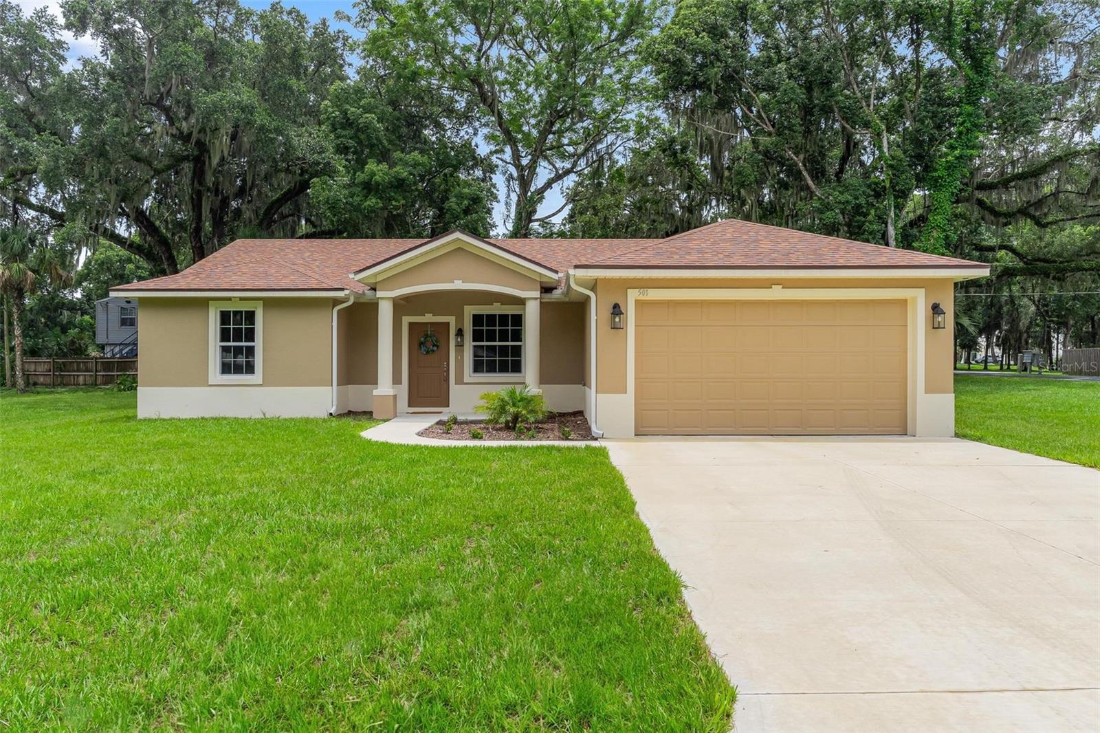 Welcome to your brand-new HOME in Fruitland Park, built in 2023 with NO HOA and a BUILDER WARRANTY! This charming 3-bedroom, 2-bathroom residence boasts modern luxury with features like Luxury Vinyl floors, granite counters, and a tankless water heater. Step inside to discover an open floor plan that enhances the spaciousness and comfort, complemented by an inviting color scheme that reflects today's popular style. The patio invites you to relax and unwind, perfect for enjoying both morning coffees and evening sunsets. Located just one street away from scenic Mirror Lake, this home offers a serene neighborhood setting. The convenient proximity to major highways makes commuting a breeze, and quick access to interstates ensures easy travel to airports and beyond. Enjoy the convenience of being near local amenities such as the elementary school, city pool, and library. The vibrant community of The Villages is also nearby, providing great shopping and dining options. Don't miss out on this fantastic opportunity in Fruitland Park! Call now to schedule your private showing and make this house your new home.