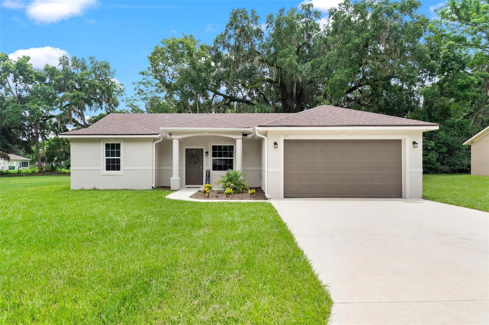 Welcome to your brand-new HOME in Fruitland Park, built in 2023 with NO HOA and a BUILDER WARRANTY! This charming 3-bedroom, 2-bathroom residence boasts modern luxury with features like Luxury Vinyl floors, granite counters, and a tankless water heater. Step inside to discover an open floor plan that enhances the spaciousness and comfort, complemented by an inviting color scheme that reflects today's popular style. The patio invites you to relax and unwind, perfect for enjoying both morning coffees and evening sunsets. Located just one street away from scenic Mirror Lake, this home offers a serene neighborhood setting. The convenient proximity to major highways makes commuting a breeze, and quick access to interstates ensures easy travel to airports and beyond. Enjoy the convenience of being near local amenities such as the elementary school, city pool, and library. The vibrant community of The Villages is also nearby, providing great shopping and dining options. Don't miss out on this fantastic opportunity in Fruitland Park! Call now to schedule your private showing and make this house your new home.