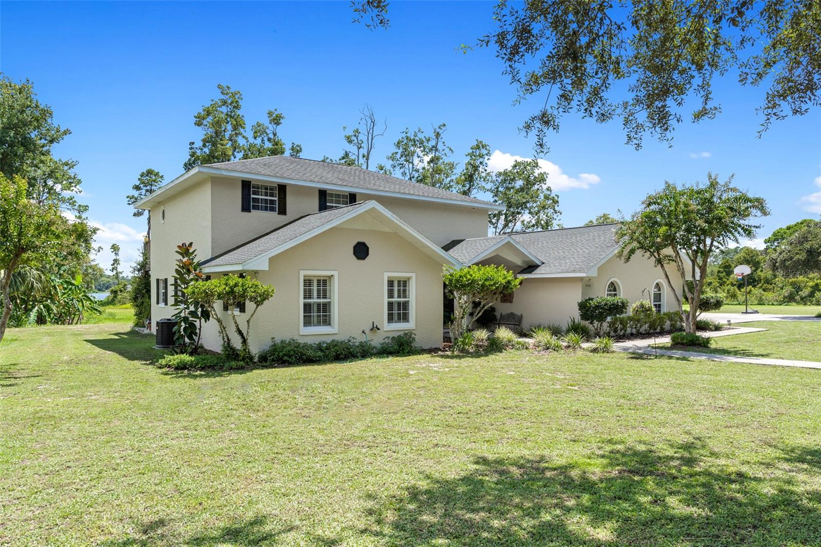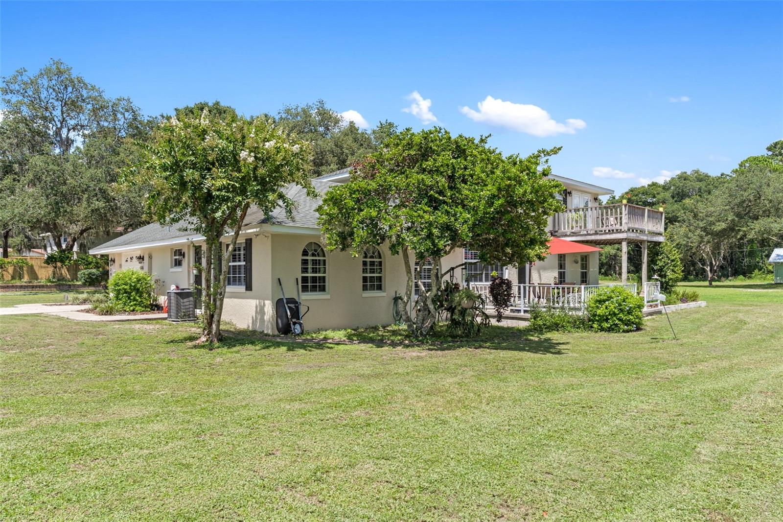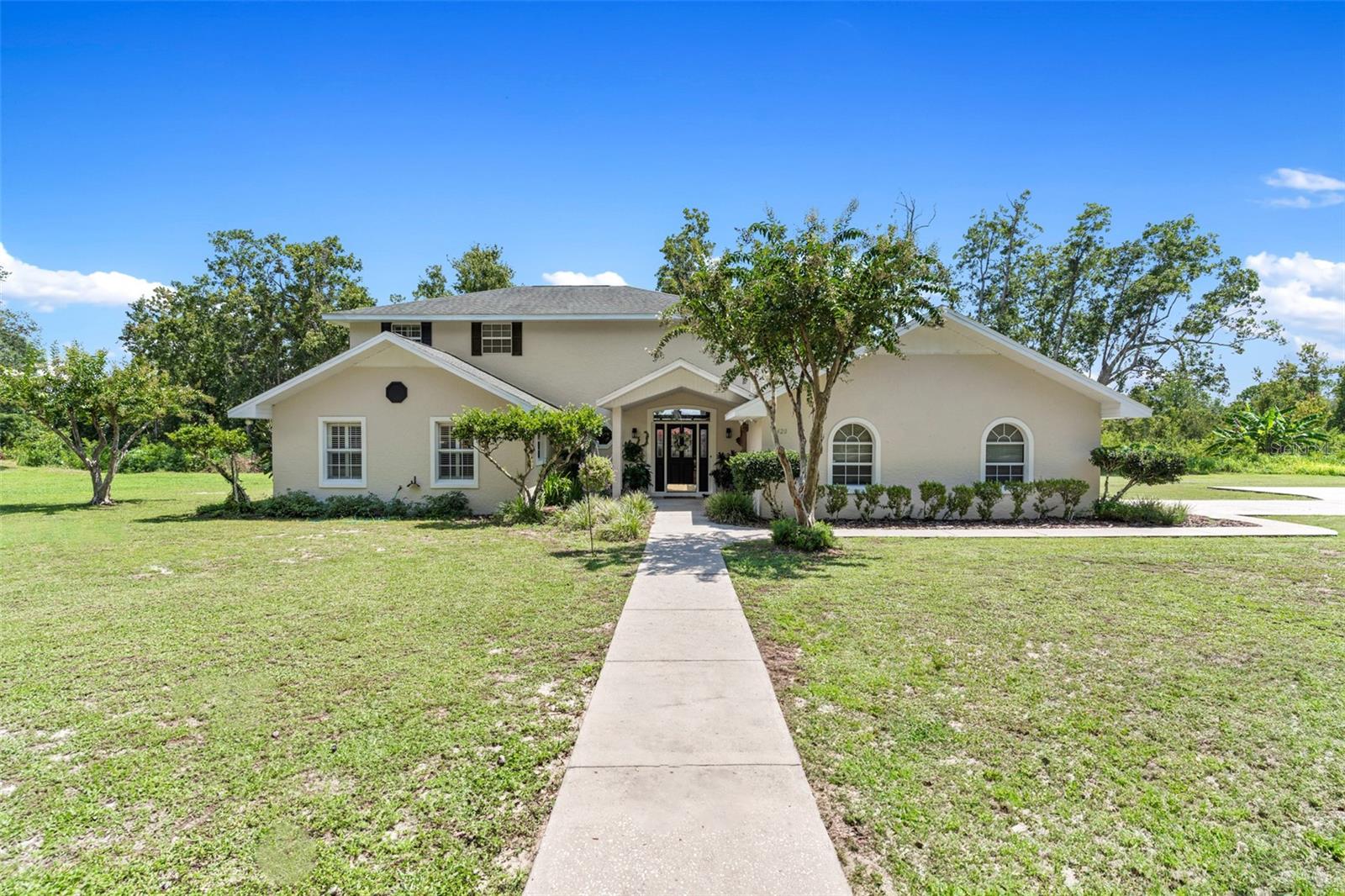 Welcome to Bay Forest Cove, a secluded estate boasting two waterfront lots and a beautiful 2 story home with 2260 sq ft., a total of 5.5 acres of waterfront living all to yourself! Situated at the end of a private road, enjoy plenty of room to roam! Enjoy breathtaking views of Lake Unity, a private spring fed lake, with excellent fishing and complete PRIVACY. The home features three bedrooms and two full baths with plenty of room for entertaining or large family gatherings. As you approach the home, you will notice the well maintained exterior with beautiful views of the lake and trees offering such a peaceful place to call home! As you enter the home you will be drawn to the large living room area with natural lighting, plantation shutters, and luxury laminate flooring. You will also see a beautiful staircase leading to the master bedroom, where you will be amazed to have your own private balcony and the inviting two-person jetted tub in the master bedroom. Back Leading from the main living room, you will notice an open dining/kitchen combination with 2 seating areas, a formal dining room and an eat in kitchen area, both with beautiful custom windows and plantation shutters,.. The kitchen offers the perfect size island to gather around while cooking, am additional desk area, stainless steel appliances, and plenty of storage space! As you make your way through the home you will notice this home is custom built, spacious bedrooms, and includes an additional office area. With many updates over the years, this home is perfect to raise a family or to have unique and tranquil place to retire. NEW A/C 2020 (2 - 2 ton units) NEW ROOF 2015 (CERTAINTEED 30 YR SHINGLES) Don’t miss this rare opportunity to secure your very own retreat, with plenty of privacy and abundant wildlife to enjoy.This convenient location is just minutes from either Leesburg or The Villages. Schedule your showing today!
