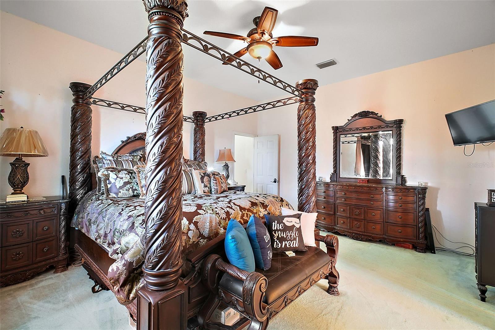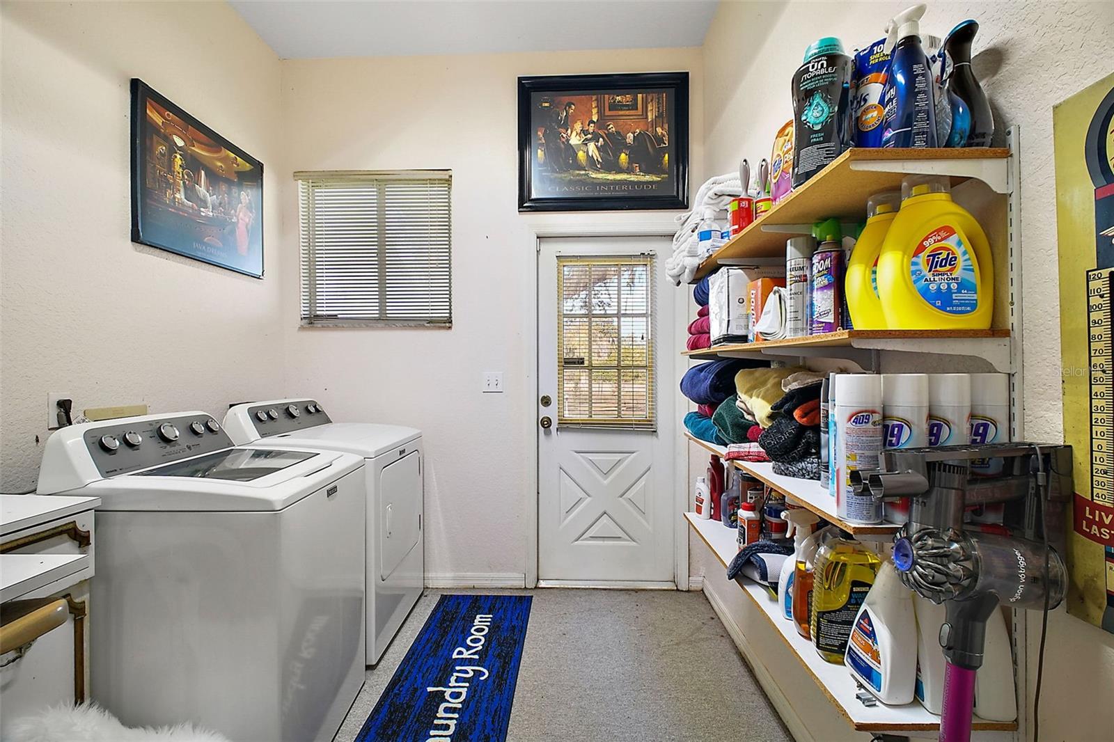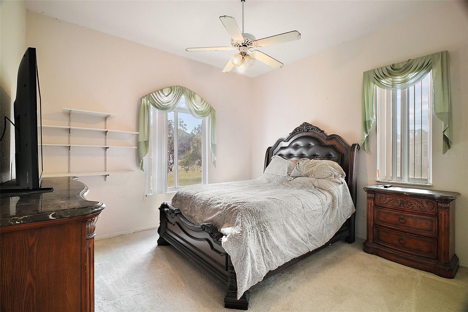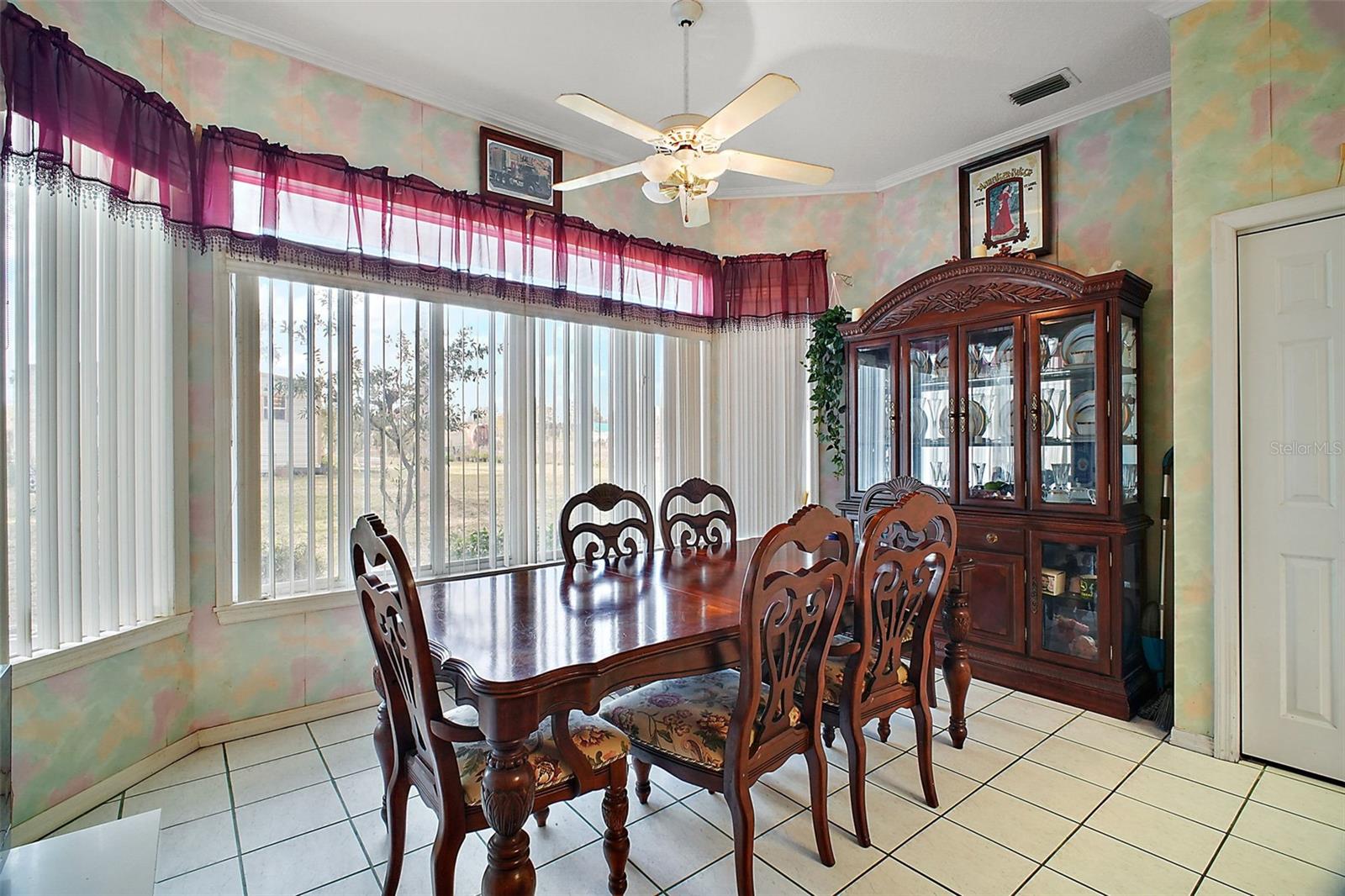 Discover this 3/2 concrete block home nestled at the end of a quiet cul-de-sac. Situated on a sprawling 0.67-acre lot with beautiful Lake Griffin views from your front porch. The generous 2,371 sq ft floor plan features an inviting open concept design, with the living room flowing seamlessly into the updated kitchen. Recent improvements include new kitchen countertops, fresh tile flooring, exterior paint, and a 2022 roof. Kitchen comes equipped with built-in oven and range, plus washer and dryer included. The attached 2-car garage provides ample storage, while the large lot features a storage shed for additional space. Enjoy the best of both worlds with city water for household use and well irrigation for landscaping, plus private septic. Conveniently located near The Villages for endless shopping, dining, and entertainment options. NO HOA/CDD fees. Furnishings are optional.
