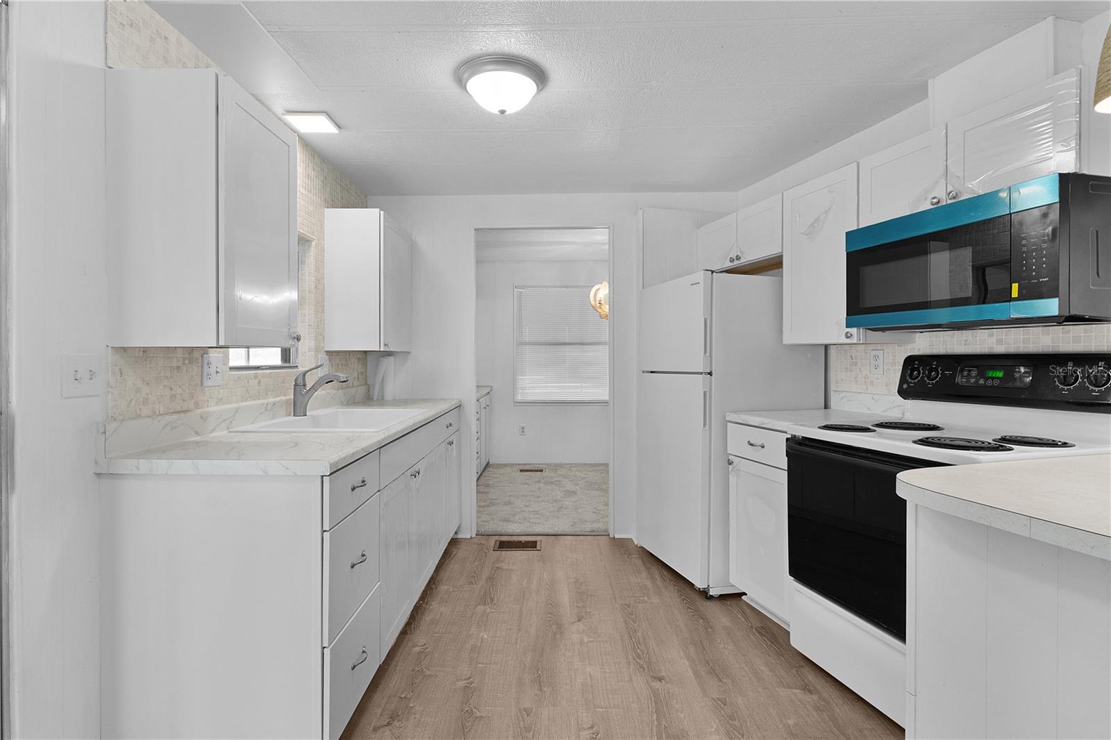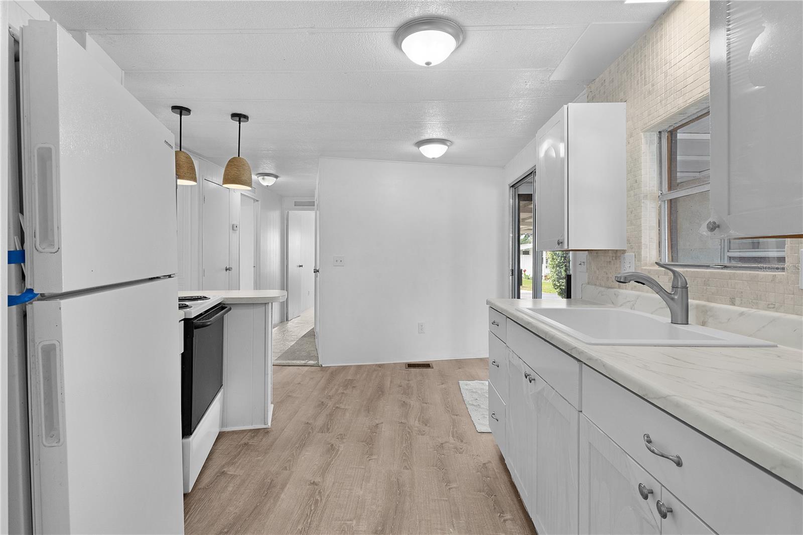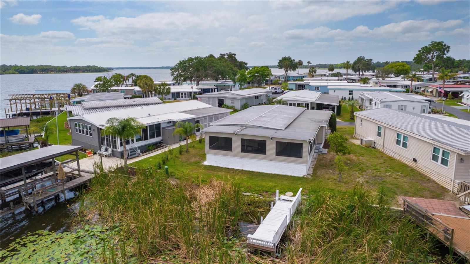 *** PRICE REDUCTION*** Lake Griffin Waterfront Property is looking for New Owners. This 2 Bedroom/ 2Bath remolded home Sits above Lake Griffin. A Rare (10ft x 66ft), Enclosed Wrap-Around Porch Affords it's New Occupants a Panoramic View of this Beautiful Lake. The house itself is an Open, Blank Canvass with many Options to Create Your Own Perfect Retirement or Investment Oasis. This Structure is Solid, Freshly Painted with New Sub-Flooring with Vinyl Covering, New Carpet and Tiled Bathroom Flooring. New Kitchen Cabinets, Microwave, Countertops and Sink. The Inside Laundry Room was fitted with New Plumbing, Insulation and Drywall. New Vanities were installed in both Bathrooms; and New Ceiling and Cam Lights in the Master Bedroom. The Photos show a Wide Open floor plan that can accommodate your personal Waterfront Dream Home. Harbor Oaks is a Premier Community. The $125./Mo Fee Includes Trash, Water and Mowing. Come see this Property and Create Your Own Waterfront Little Slice of Heaven.