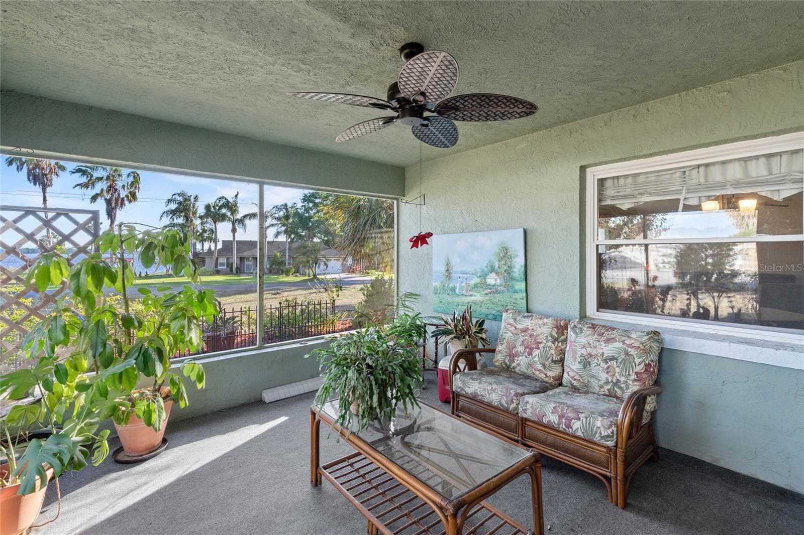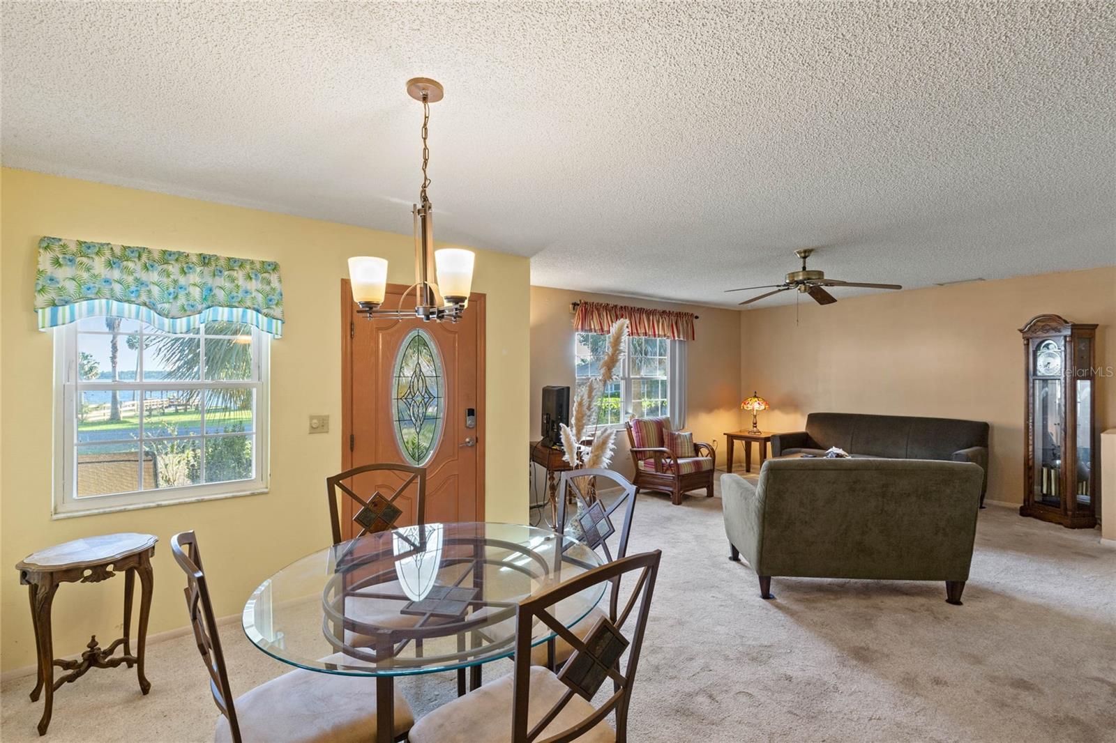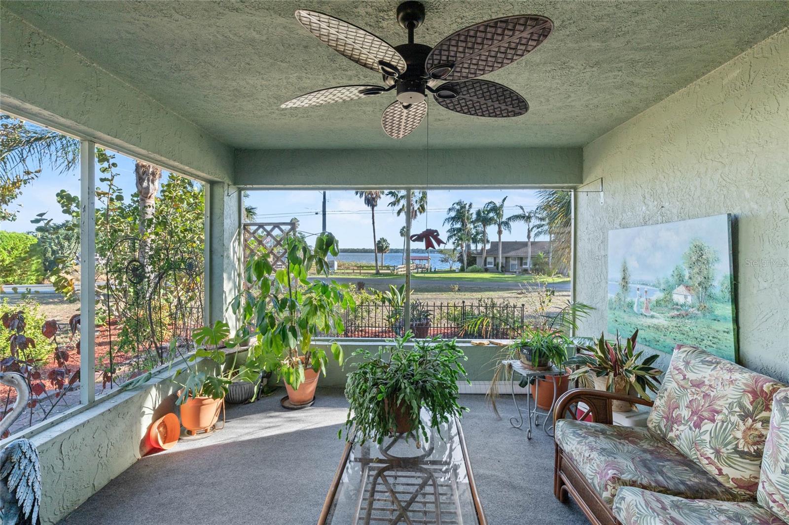 Welcome to this lovely corner lot home, perfectly positioned across from the Picciola Island Community dock and boat ramp, offering breathtaking, unobstructed views of Lake Griffin. Whether you're sipping your morning coffee or enjoying an evening sunset, the screened lanai facing the lake is the ideal spot to unwind and take it all in. For those who enjoy entertaining or simply want a little extra privacy, the expansive screened lanai overlooking the fenced backyard is perfect for gatherings, BBQs, or just relaxing in your own space. This small, friendly community is a peaceful place to stroll and chat with neighbors, yet you're conveniently close to the Villages, shopping, dining, and entertainment when you're ready to explore beyond your doorstep. Inside, you'll find an open, airy layout where the lake views can be enjoyed from the family room, dining area, living room, and even the front bedroom. The primary bedroom and spacious guest bedroom both feature ample closet space, and the third bedroom, currently used as an office, is located between the main living areas and the back lanai. On chilly days, cozy up by the gas fireplace in the family room, or enjoy the comfort of newer, energy-efficient windows and a recently replaced HVAC system. This solid block home is ready for you to add your personal touch and make it your own. Don't miss out on this wonderful opportunity to live in a serene, lakefront community. Call today to schedule a showing - your new home is waiting!