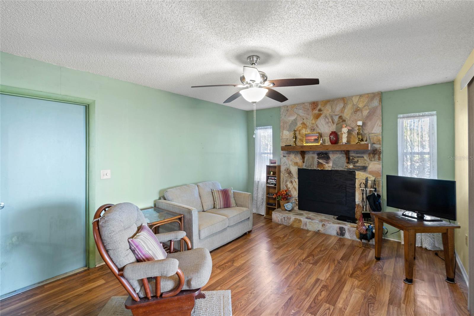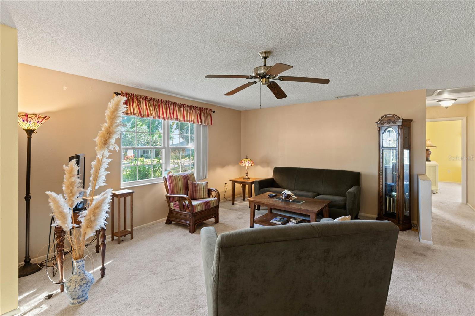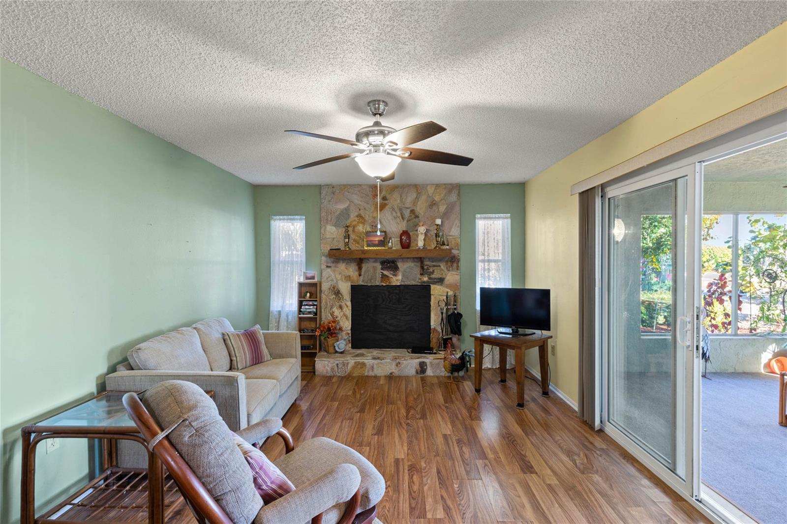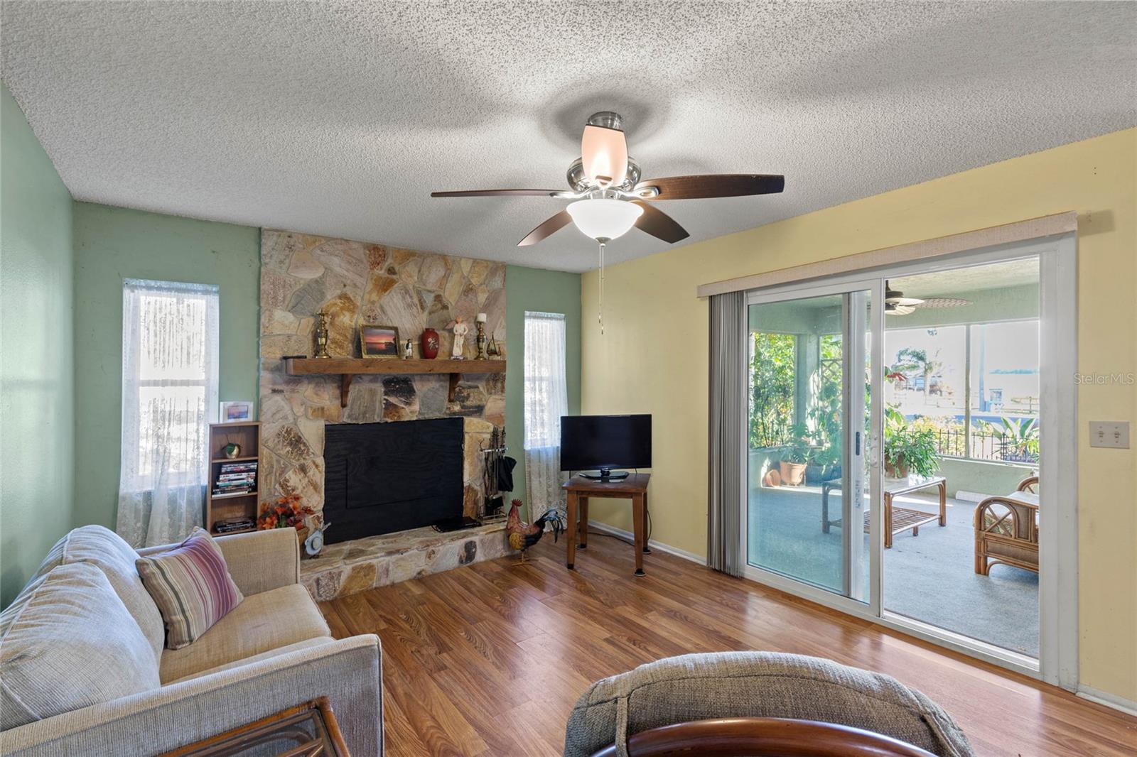 Welcome to this lovely corner lot home, perfectly positioned across from the Picciola Island Community dock and boat ramp, offering breathtaking, unobstructed views of Lake Griffin. Whether you're sipping your morning coffee or enjoying an evening sunset, the screened lanai facing the lake is the ideal spot to unwind and take it all in. For those who enjoy entertaining or simply want a little extra privacy, the expansive screened lanai overlooking the fenced backyard is perfect for gatherings, BBQs, or just relaxing in your own space. This small, friendly community is a peaceful place to stroll and chat with neighbors, yet you're conveniently close to the Villages, shopping, dining, and entertainment when you're ready to explore beyond your doorstep. Inside, you'll find an open, airy layout where the lake views can be enjoyed from the family room, dining area, living room, and even the front bedroom. The primary bedroom and spacious guest bedroom both feature ample closet space, and the third bedroom, currently used as an office, is located between the main living areas and the back lanai. On chilly days, cozy up by the gas fireplace in the family room, or enjoy the comfort of newer, energy-efficient windows and a recently replaced HVAC system. This solid block home is ready for you to add your personal touch and make it your own. Don't miss out on this wonderful opportunity to live in a serene, lakefront community. Call today to schedule a showing - your new home is waiting!