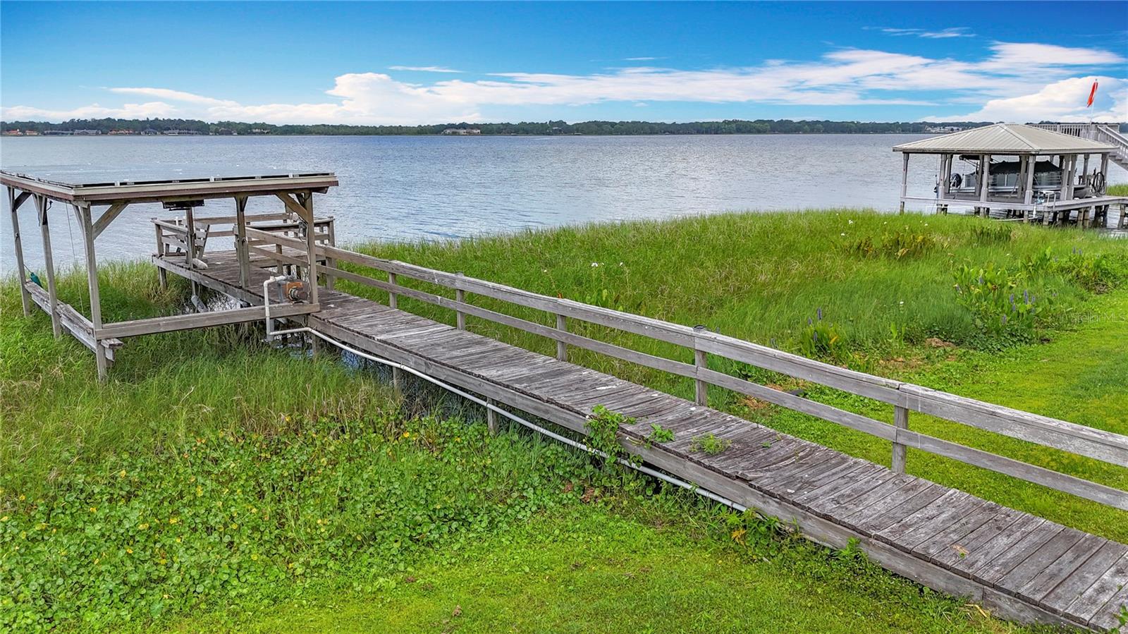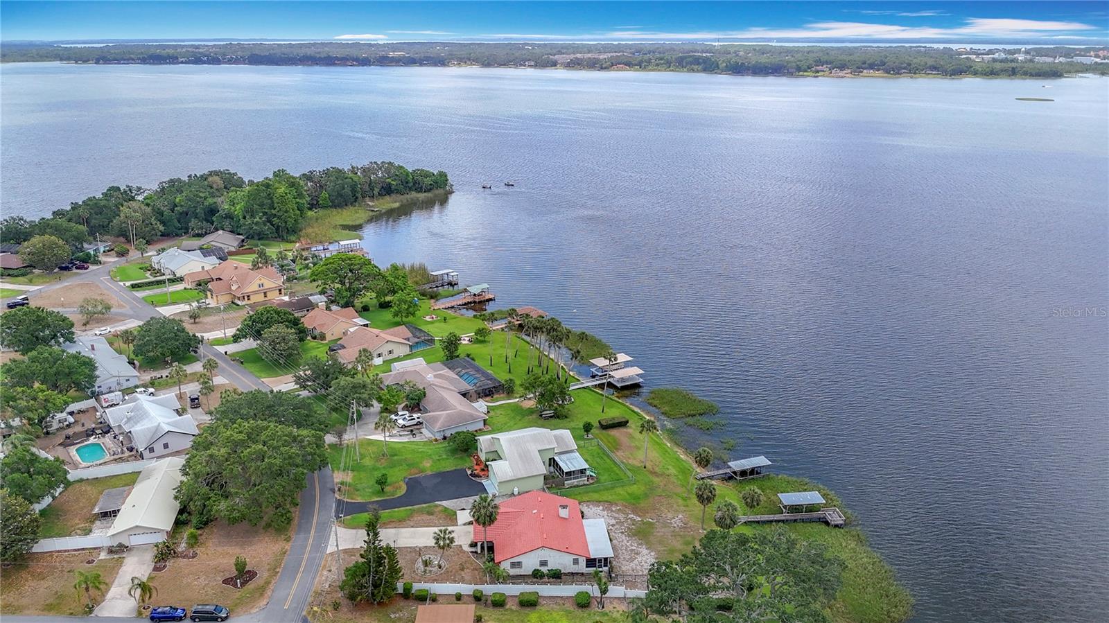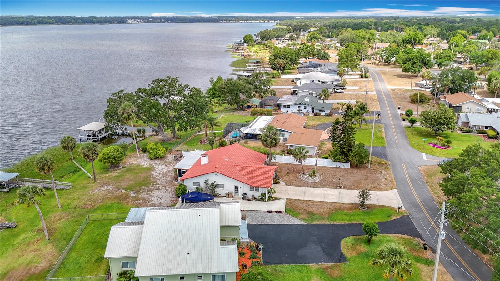 Lake Griffin Waterfront Home. Spend your days boating, kayaking, fishing or just stay home and enjoy the view. This 2 bedroom, 2 bath home with a Brick Wood-burning fireplace is prefect for entertaining or everyday life. As you enter through the front door into the large entry you immediately see the beautiful lake. The living room/dining room is perfect for entertaining. The large kitchen has plenty of cabinets and counter space that any chef would love, it also has an eat in bar that's great for everyday meals. The family room has striking wood beams on the ceiling and a beautiful brick fire place for those cozy nights. Flooring includes neutral carpeting in the living room, dining room, and bedrooms; laminate with floor muffler underlayment in the family room, kitchen and hallways; ceramic tile in the bathrooms. Primary bedroom has 2 closets including a walk-in closet and own private bath. Lots & lots of great storage closets throughout this home. The sun sets are absolutely magnificent as you sit on your back screen porch. A few steps away is your very own dock, so just step in the boat and go for a short trip or you can travel all the way to the intercoastal via the Chain of Lakes. New roof 2024. Come see this peace of Paradise.