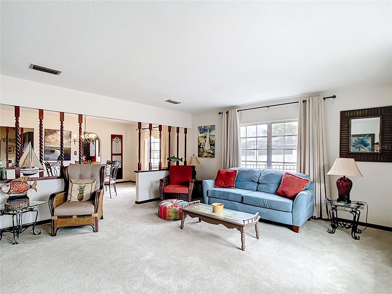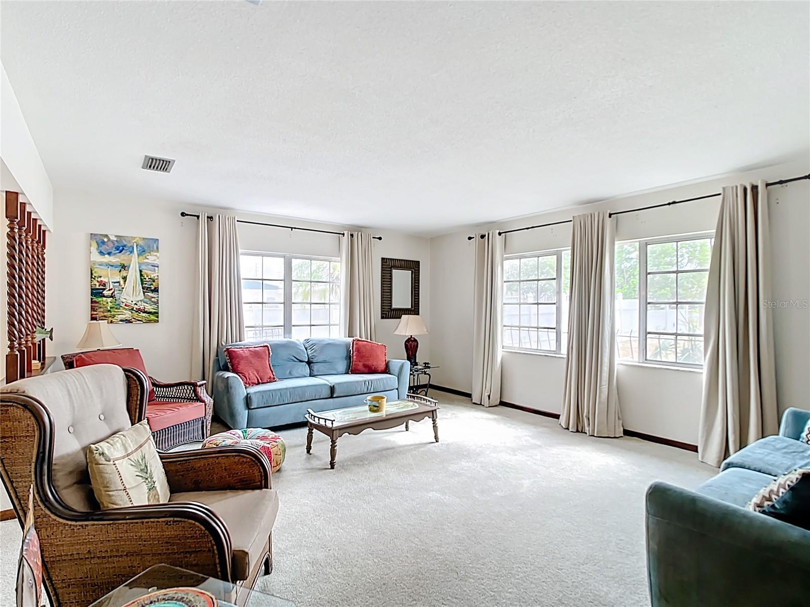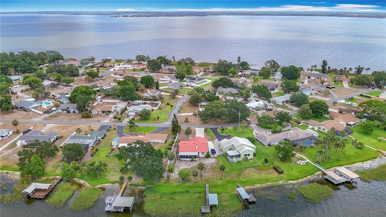 Lake Griffin Waterfront Home. Spend your days boating, kayaking, fishing or just stay home and enjoy the view. This 2 bedroom, 2 bath home with a Brick Wood-burning fireplace is prefect for entertaining or everyday life. As you enter through the front door into the large entry you immediately see the beautiful lake. The living room/dining room is perfect for entertaining. The large kitchen has plenty of cabinets and counter space that any chef would love, it also has an eat in bar that's great for everyday meals. The family room has striking wood beams on the ceiling and a beautiful brick fire place for those cozy nights. Flooring includes neutral carpeting in the living room, dining room, and bedrooms; laminate with floor muffler underlayment in the family room, kitchen and hallways; ceramic tile in the bathrooms. Primary bedroom has 2 closets including a walk-in closet and own private bath. Lots & lots of great storage closets throughout this home. The sun sets are absolutely magnificent as you sit on your back screen porch. A few steps away is your very own dock, so just step in the boat and go for a short trip or you can travel all the way to the intercoastal via the Chain of Lakes. New roof 2024. Come see this peace of Paradise.