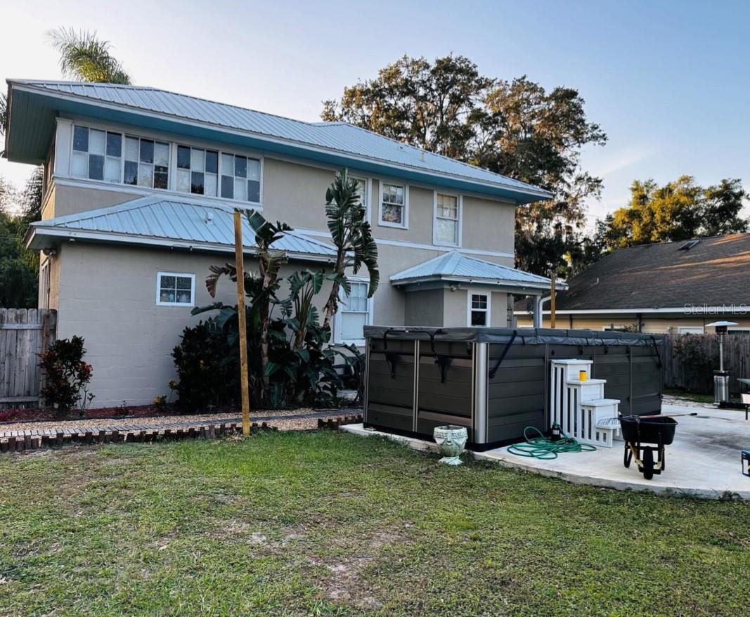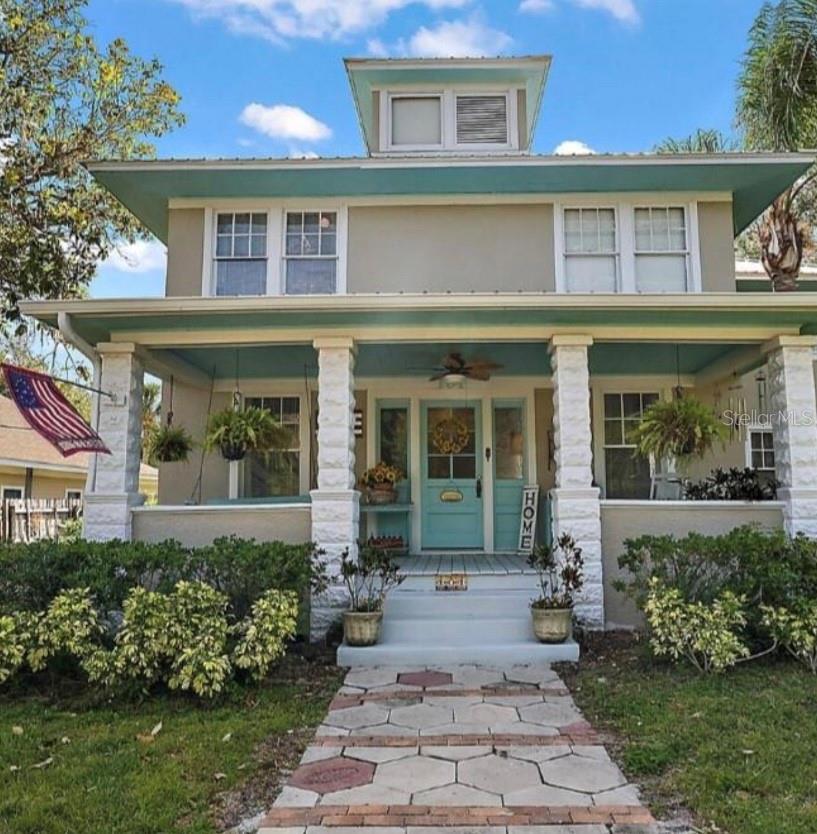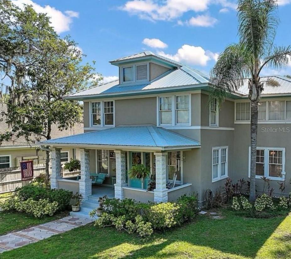 Come check out all of the true southern charm this historic home has to offer you, in quaint Fruitland Park. This incredible home has tons of craftsmanship and character you'd expect in a historic 1910 built home. Zoned RP, this home allows residential or professional use. From the moment you step onto the large front porch, you will appreciate the meticulous woodwork and original restoration this home has to offer. This floorpan offers endless opportunities, with a downstairs or upstairs master bedroom option. The original hardwood floors and many other details in every room will keep you wanting more. The kitchen has been completely remodeled with beautiful custom cabinetry, epoxy countertops, stainless steel appliances (including a double oven), and upgraded fixtures and hardware. The inside laundry room is an added bonus and features a butcher block folding table. Upstairs has been renovated adding the use of a master bedroom that features an extra large walk in closet fit for a king. A bonus sunroom off the master bedroom adds a use of extra space with tons of natural lighting. The large fenced lot has plenty to offers well, with its own electric gate entrance, paved driveway, landscaped oasis with a built in garden, paver pathways and complete with a large above ground lap pool and hot tub. A double detached workshop provides extra storage for all of your tools and yard equipment. This home features a full home Generac generator that has a buried propane tank, which ensures you'll never be without power during hurricane season. Also has an RV hookup for guests that come to visit. All electrical and plumbing has been updated approximately 10-12 years ago. Lifetime metal roof and newer HVAC, ensures no issues with your home owners insurance.