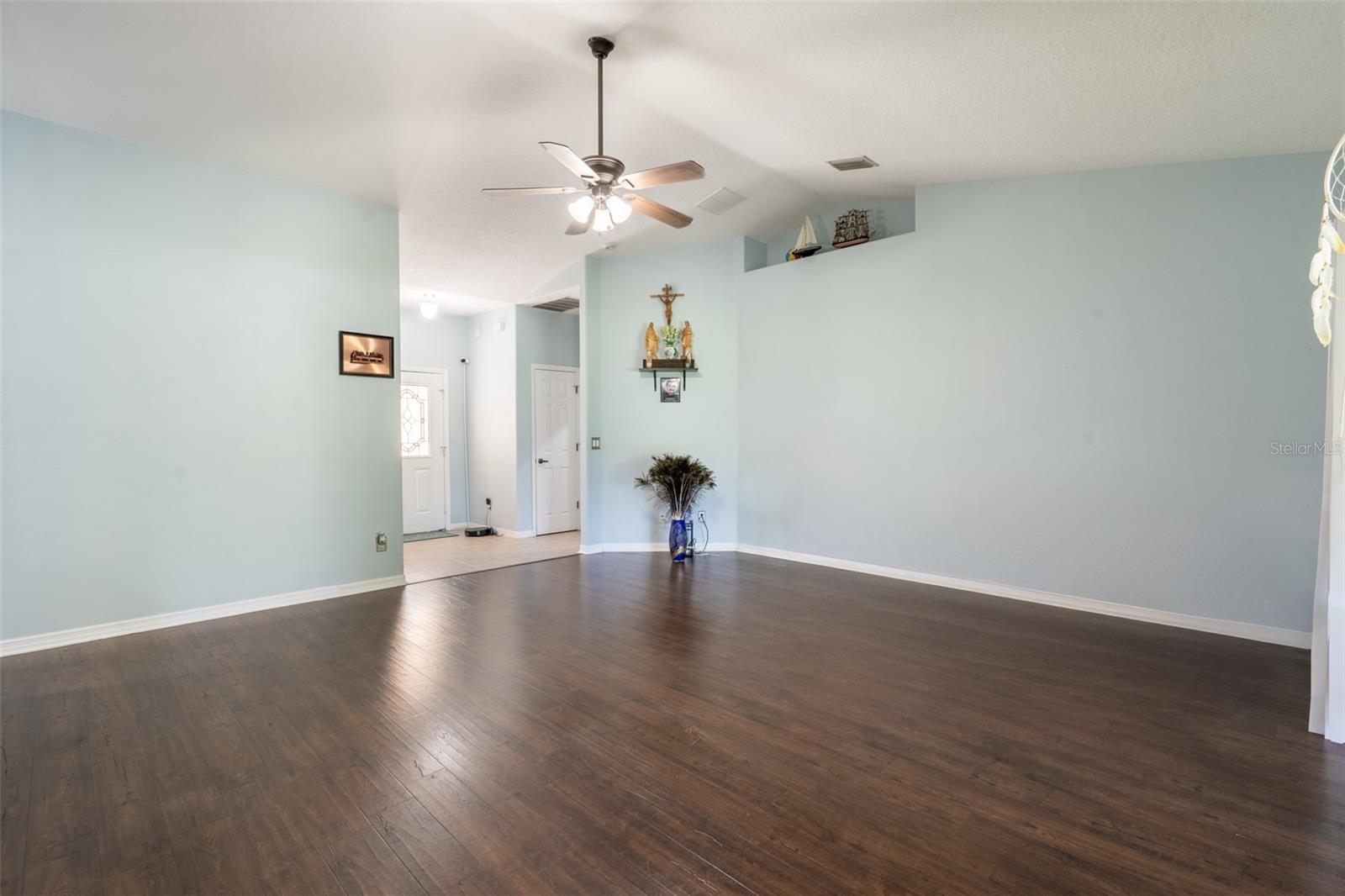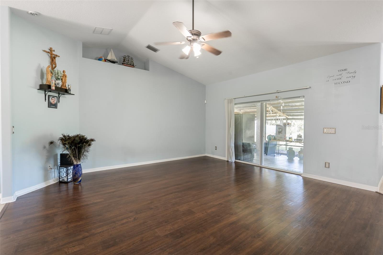 Here's your chance to enjoy space, privacy, and flexibility all while staying connected to everything Central Florida has to offer. Set on over a HALF ACRE in Fruitland Park with no direct rear neighbors, this updated 3-bedroom, 2.5-bath home offers a thoughtful layout and plenty of room to grow. As you enter, you're welcomed by a bright open layout and spacious main living area ideal for relaxing or entertaining. To the right, you'll find a versatile office or den, and to the left, a large primary suite with sliding doors that open to the enclosed back patio. The primary bath includes a walk-in shower and a garden tub for total relaxation. Toward the rear of the home are two additional bedrooms and a shared full bath, completing the split floor plan design. Recent updates include a NEW ROOF and HVAC (2024), and a convenient exterior half bath off the patio, perfect for guests and outdoor use. The seller will have the half bath painted to match the home's interior before closing. Out back, the expansive yard includes a thriving garden filled with fruits, herbs and edible plants, which can either remain or be cleared by the seller upon request. Located just minutes from Leesburg, approximately 35-40 minutes to Downtown Clermont, and about an hour from Orlando, this property offers the best of both worlds: peaceful living with easy access to shopping, dining, and major roadways.
