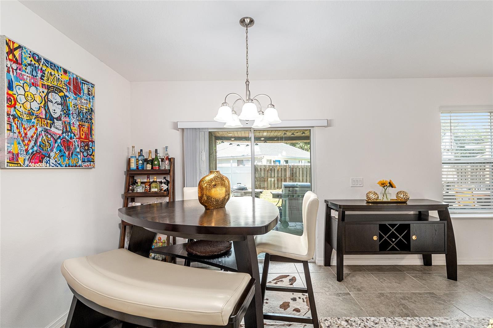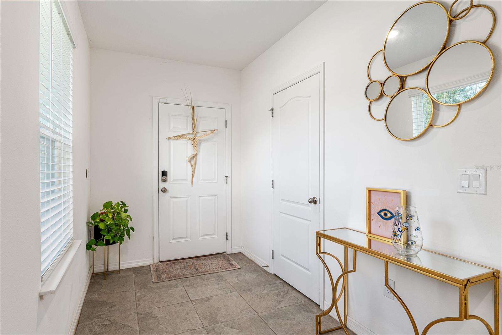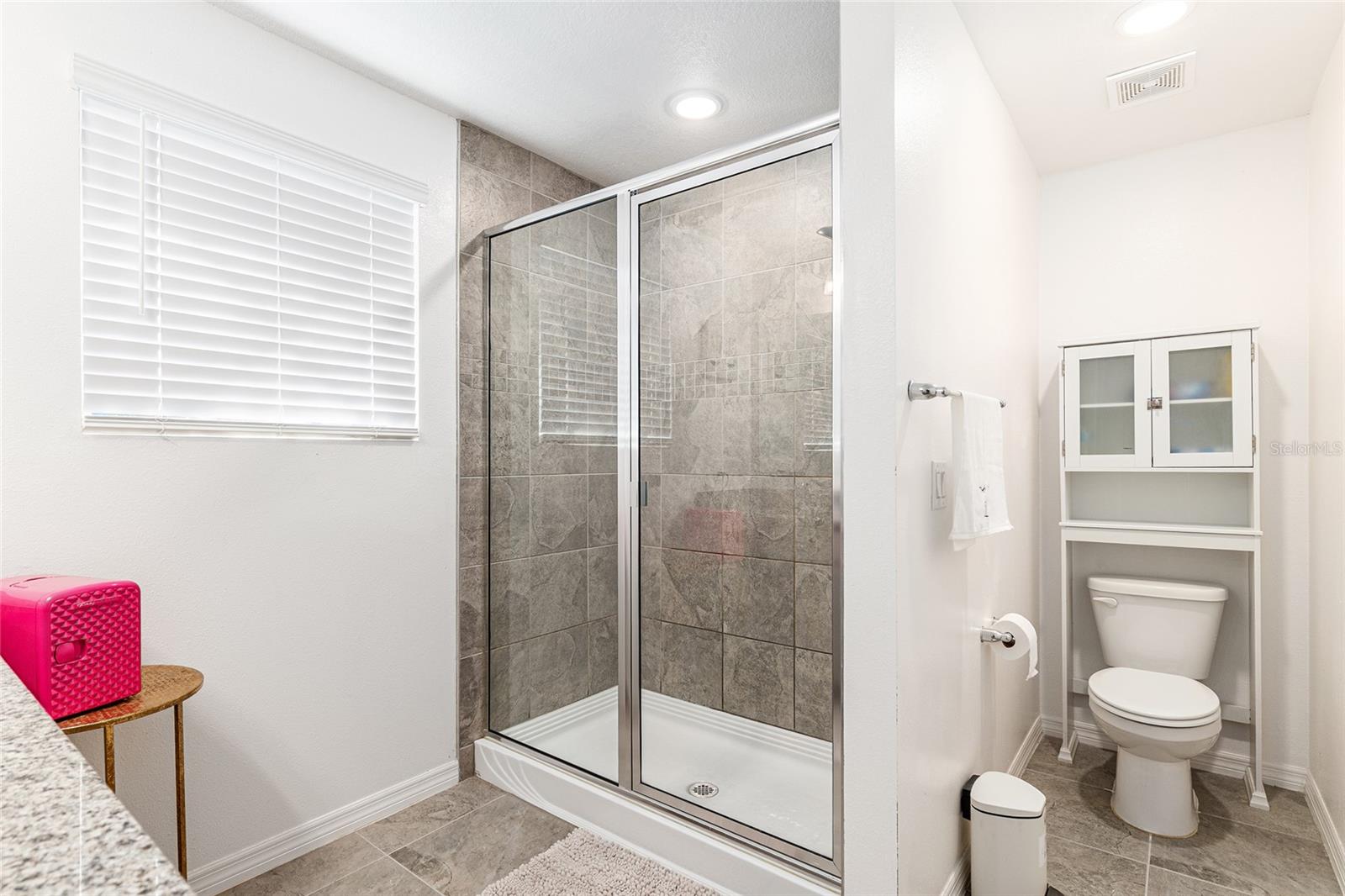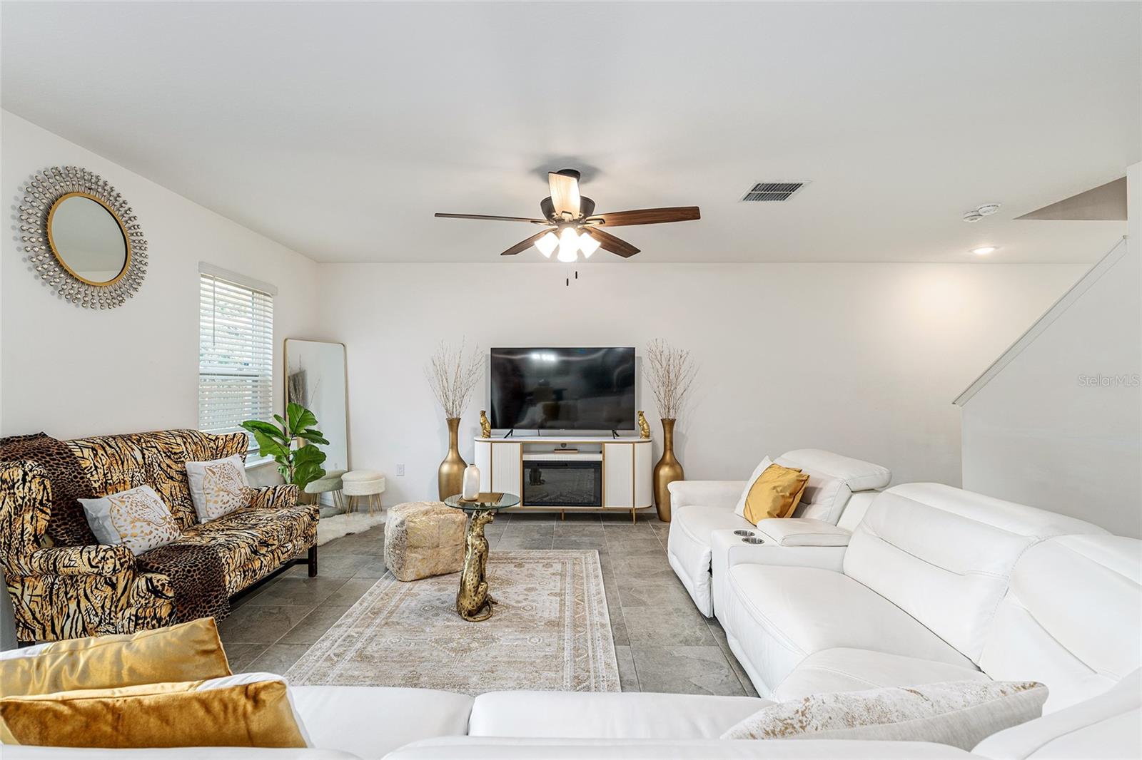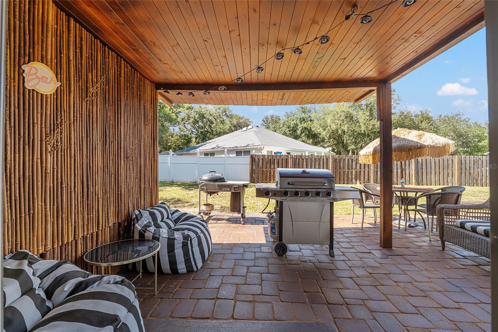 This stylish 4-bedroom, 2.5-bathroom home was built in 2023 and sits on nearly half an acre (0.44 acres), offering the perfect blend of space, comfort, and convenience. Step inside to discover an open-concept floor plan with sleek tile flooring, neutral color palette, and a spacious living area ideal for relaxing or entertaining. The kitchen is a standout, featuring gray cabinetry, granite countertops, stainless steel appliances, a closet pantry, and a large center island with seating—perfect for casual meals or gatherings. A convenient half bath is located on the main floor. Upstairs, you'll find the generous primary suite complete with a walk-in shower, dual sinks, and granite vanity. Three additional bedrooms share a guest bathroom, also featuring dual sinks and granite counters. Enjoy outdoor living on the covered back patio overlooking the expansive backyard—offering plenty of room for recreation, gardening, or even a future pool. Located close to shopping, dining, grocery stores, The Villages and medical facilities, this home offers both modern living and everyday convenience.