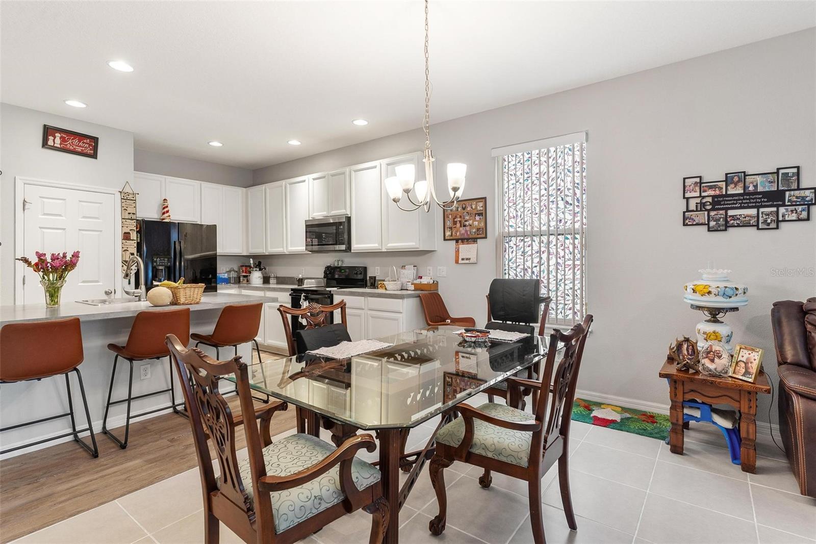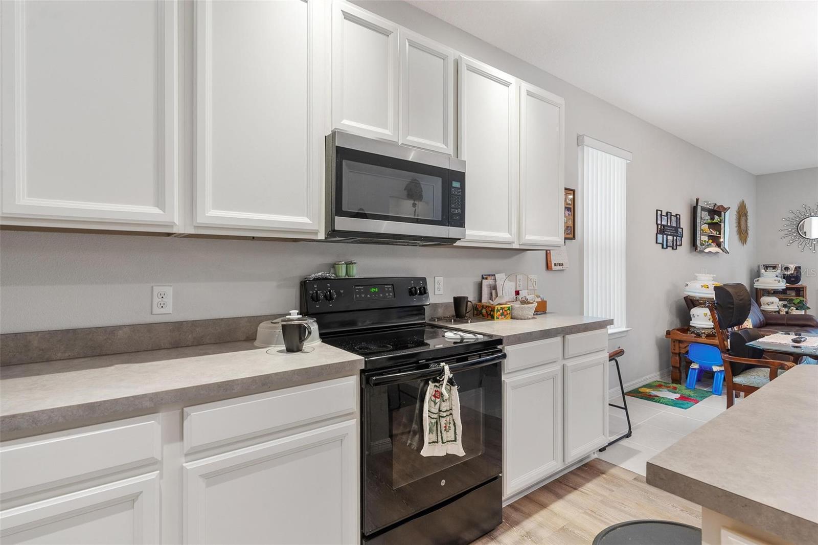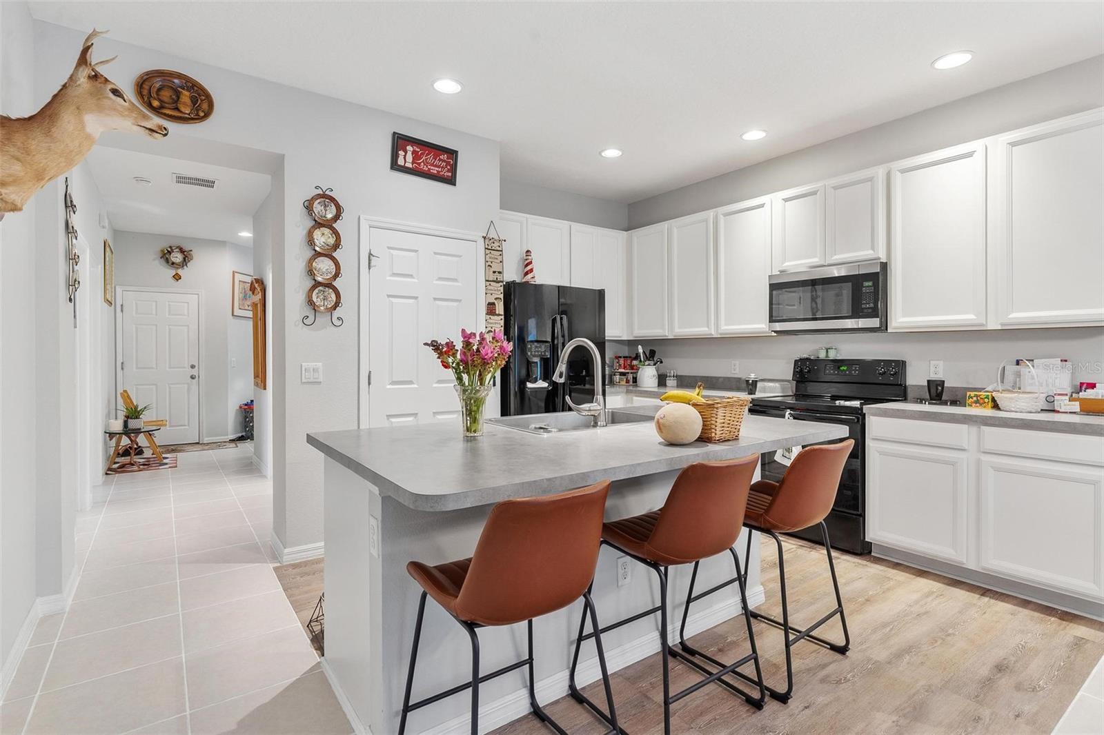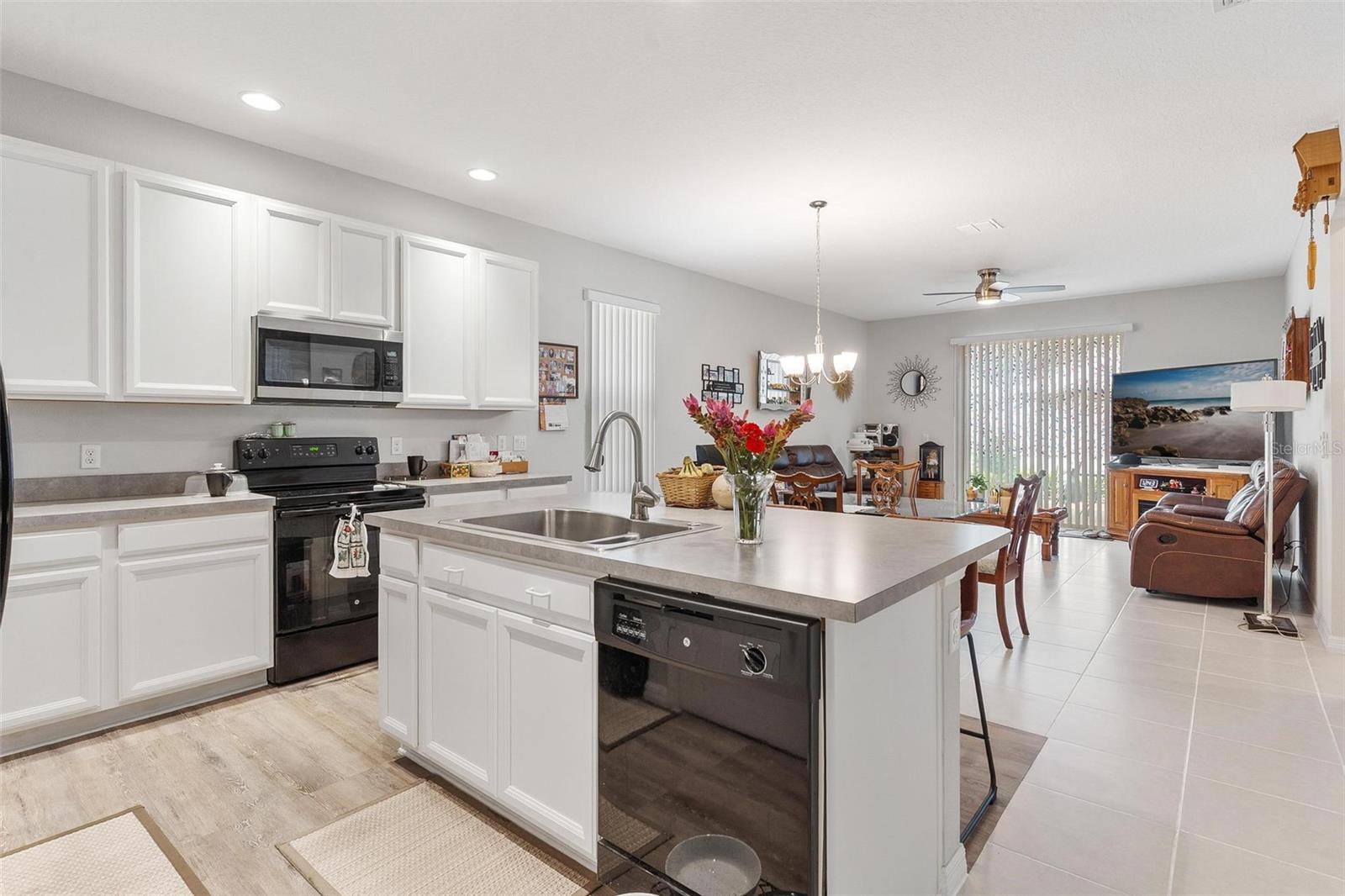 Welcome to Mirror Lake Village! This beautiful, like-new home is centrally located in the heart of Fruitland Park and offers an open floor plan with soaring ceilings. The kitchen features a spacious island with an eat-in bar, plenty of cabinet space, a closet pantry, and a sleek glass cooktop—all overlooking the living area with sliding doors leading to the backyard patio. The primary suite includes a large walk-in closet and an en suite bath with double vanities, a tiled walk-in shower, and a private water closet. Additional highlights include an inside laundry room, a versatile 12x9 tiled foyer that can double as a home office or study area, and a two-car garage with electric opener. Outside, you’ll find a nicely landscaped yard, perfect for enjoying Florida living.