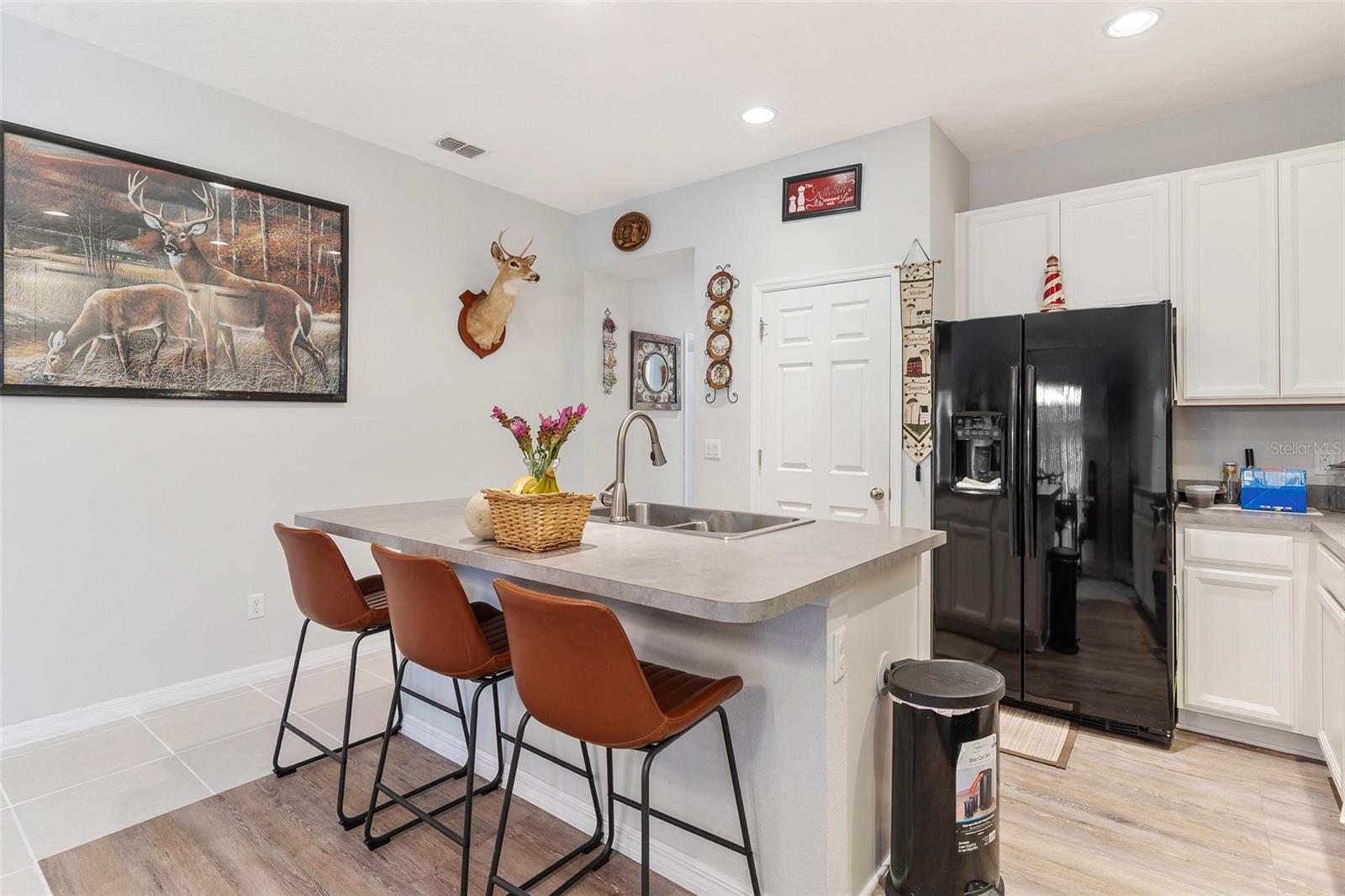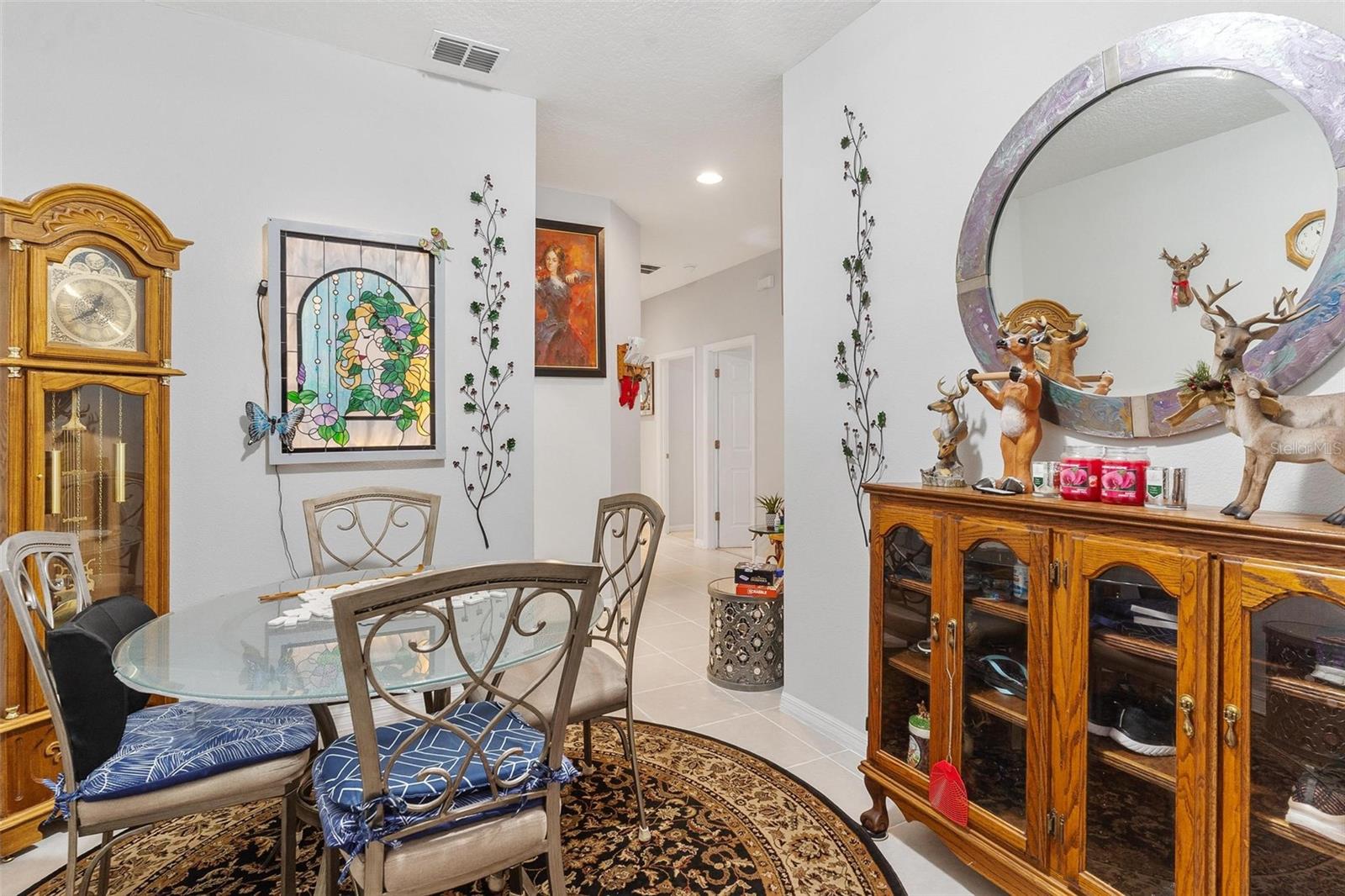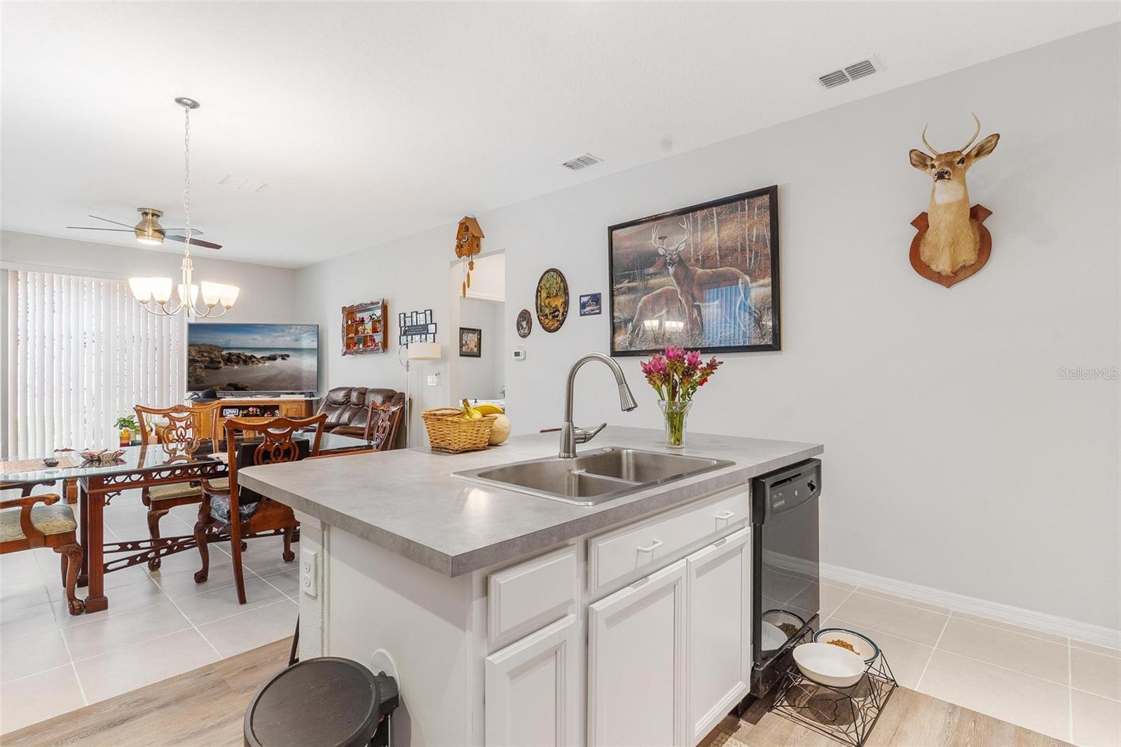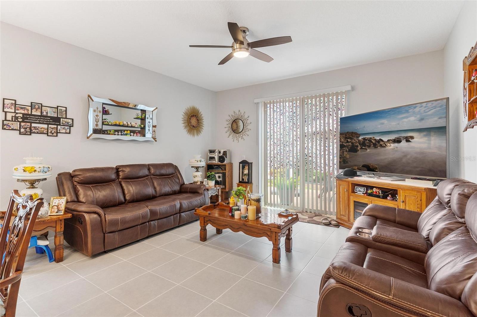 Welcome to Mirror Lake Village! This beautiful, like-new home is centrally located in the heart of Fruitland Park and offers an open floor plan with soaring ceilings. The kitchen features a spacious island with an eat-in bar, plenty of cabinet space, a closet pantry, and a sleek glass cooktop—all overlooking the living area with sliding doors leading to the backyard patio. The primary suite includes a large walk-in closet and an en suite bath with double vanities, a tiled walk-in shower, and a private water closet. Additional highlights include an inside laundry room, a versatile 12x9 tiled foyer that can double as a home office or study area, and a two-car garage with electric opener. Outside, you’ll find a nicely landscaped yard, perfect for enjoying Florida living.