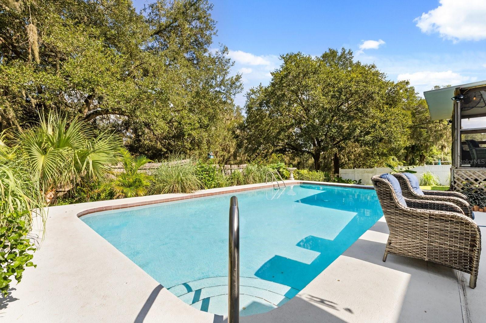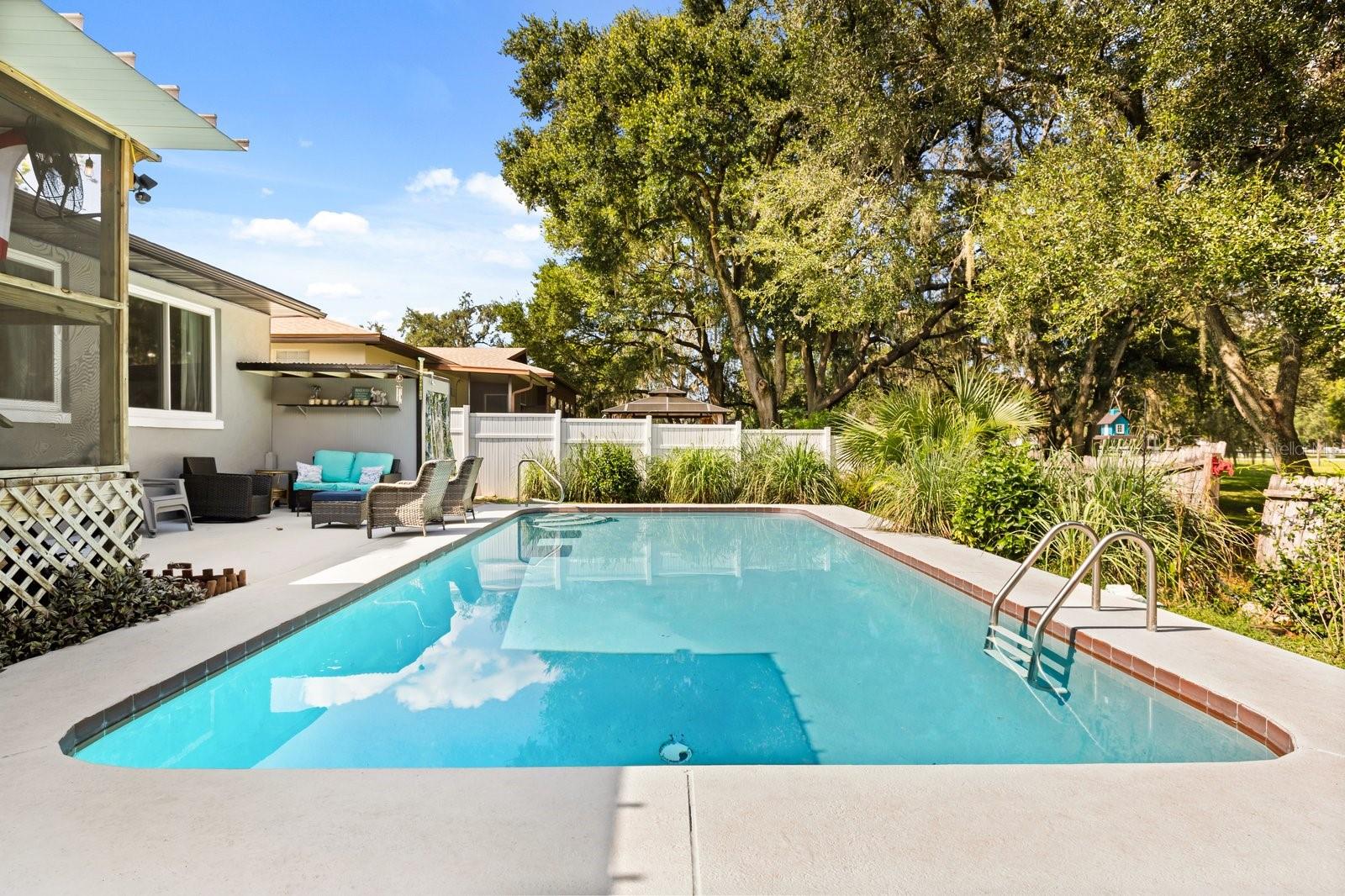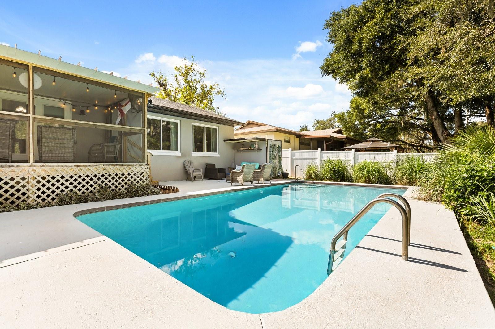 Welcome to this beautifully maintained POOL HOME! This 4 bedroom, 2 bathroom residence offers 1,845 sq. ft. of comfortable living space on a fully fenced 0.27-acre lot with peaceful lake and pasture views. The home has been thoughtfully updated over the years with a 4-year-old roof, energy-efficient thermal windows in the living room, AC (2021), fresh exterior paint (2024), and an oversized driveway. The well features new pipes and a 3-year-old pump, while the septic tank drain field was replaced in 2022. The two-car garage includes added lighting and attic space for convenience. The kitchen is both stylish and functional, featuring upgraded cabinets and newer appliances, refrigerator and stove (1 year), dishwasher and microwave (2 years). Inside, you’ll enjoy inviting living spaces with luxury vinyl flooring recently installed. The home’s block and stucco construction on a slab foundation ensures lasting durability. Step outside to your private screened-in pool and porch, perfect for entertaining or simply relaxing. Additional highlights include a widened driveway, updated systems, and a quiet setting with beautiful views. This Fruitland Park gem is move-in ready and ideal for families, investors, or anyone seeking the perfect balance of updates, charm, and outdoor enjoyment. Conveniently located near shopping, dining, recreation, and the brand-new Fruitland Park Elementary School!
