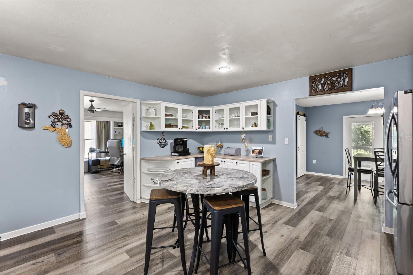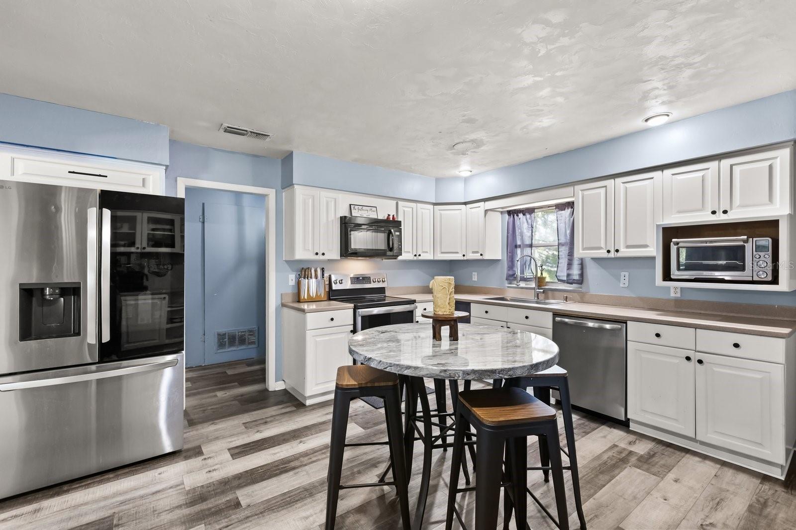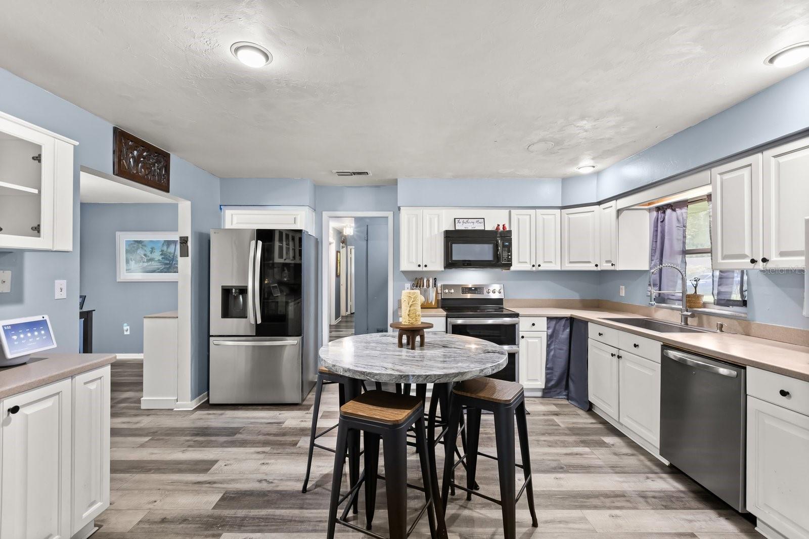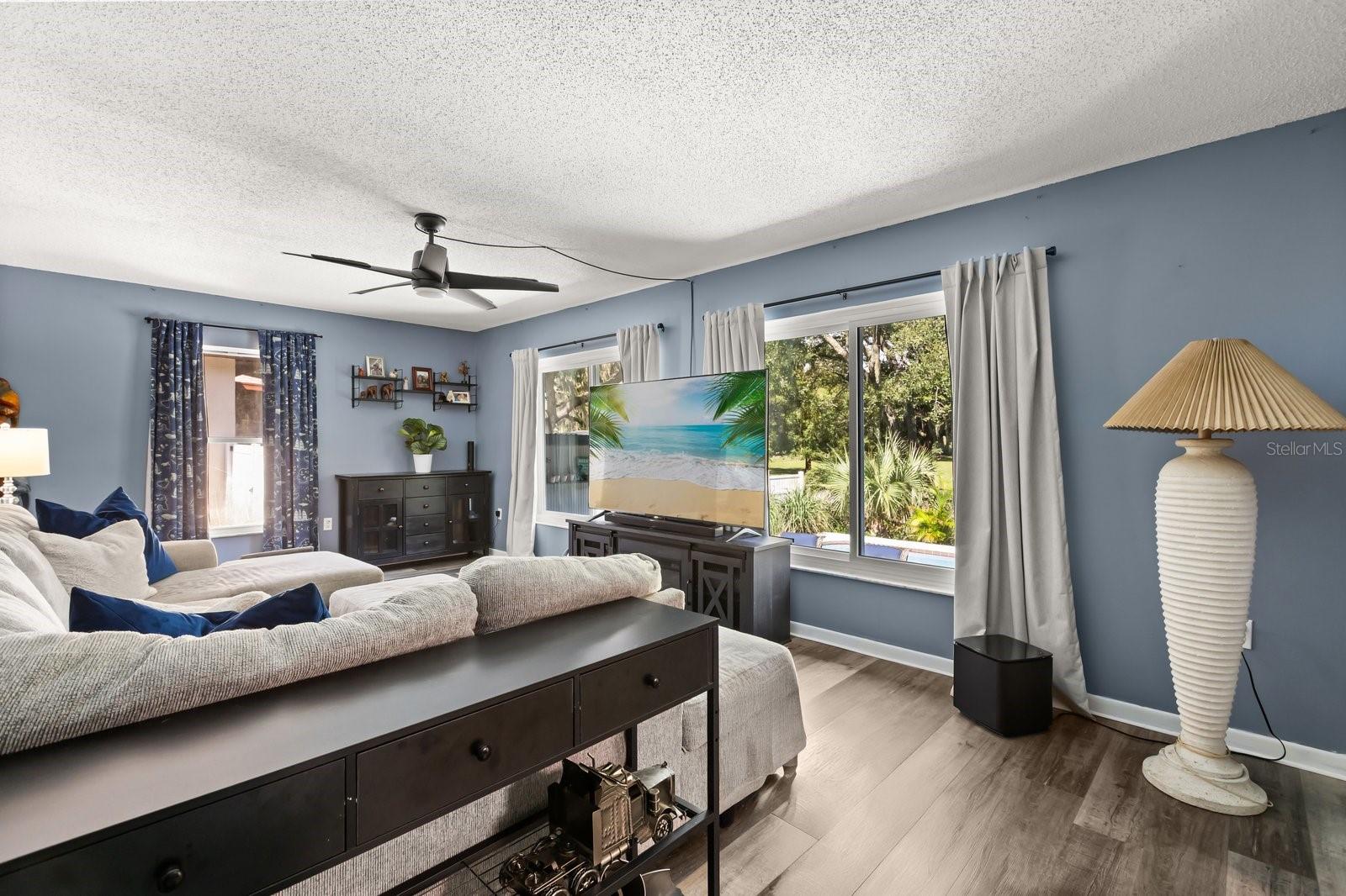 Welcome to this beautifully maintained POOL HOME! This 4 bedroom, 2 bathroom residence offers 1,845 sq. ft. of comfortable living space on a fully fenced 0.27-acre lot with peaceful lake and pasture views. The home has been thoughtfully updated over the years with a 4-year-old roof, energy-efficient thermal windows in the living room, AC (2021), fresh exterior paint (2024), and an oversized driveway. The well features new pipes and a 3-year-old pump, while the septic tank drain field was replaced in 2022. The two-car garage includes added lighting and attic space for convenience. The kitchen is both stylish and functional, featuring upgraded cabinets and newer appliances, refrigerator and stove (1 year), dishwasher and microwave (2 years). Inside, you’ll enjoy inviting living spaces with luxury vinyl flooring recently installed. The home’s block and stucco construction on a slab foundation ensures lasting durability. Step outside to your private screened-in pool and porch, perfect for entertaining or simply relaxing. Additional highlights include a widened driveway, updated systems, and a quiet setting with beautiful views. This Fruitland Park gem is move-in ready and ideal for families, investors, or anyone seeking the perfect balance of updates, charm, and outdoor enjoyment. Conveniently located near shopping, dining, recreation, and the brand-new Fruitland Park Elementary School!