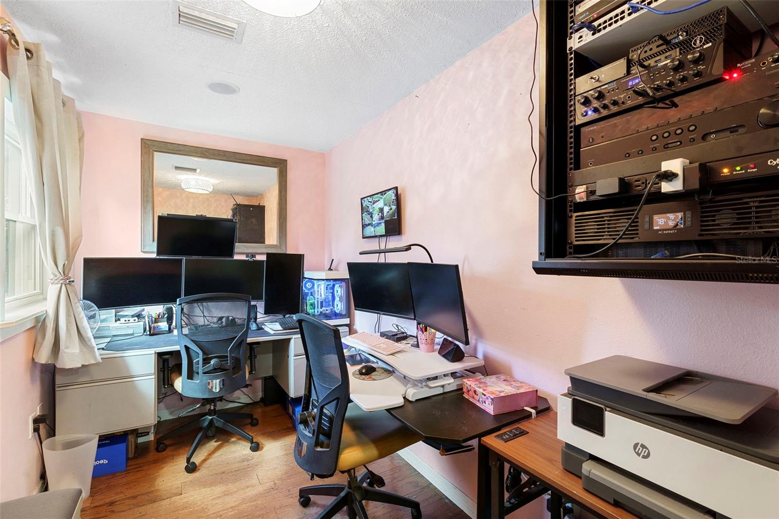 Welcome to this charming 3-bedroom, 2-bathroom home in Fruitland Park, Florida, offering 1,680 sqft of thoughtfully designed living space. Step inside to the inviting living room, where durable tile floors extend throughout the main areas, creating a seamless and easy-to-maintain foundation. Adjacent spaces include a bonus room with media and speaker hookups, accompanied by an attached office, offering versatile options for entertainment, work, or hobbies. The dining area flows naturally from the living space, leading to a kitchen that combines style and practicality. Stainless steel appliances and modern floating shelves make cooking and hosting effortless, while the layout supports both everyday living and larger gatherings. A hallway off the main living areas provides access to three comfortable bedrooms and a well-appointed bathroom, with the primary bedroom featuring an updated bathroom. Step outside to a spacious, fully fenced backyard dotted with mature trees, providing plenty of space for gardening, sports, barbecues, or relaxing in the open air. A screened-in patio extends the living space outdoors, offering a comfortable area to enjoy warm Florida days or entertain guests. With its versatile living spaces, thoughtful updates, and an expansive backyard built for enjoyment, this well-maintained home offers a blend of comfort, functionality, and lifestyle flexibility in a desirable Fruitland Park neighborhood. It’s a property ready to accommodate a variety of routines and activities, making it a welcoming place to call home.
