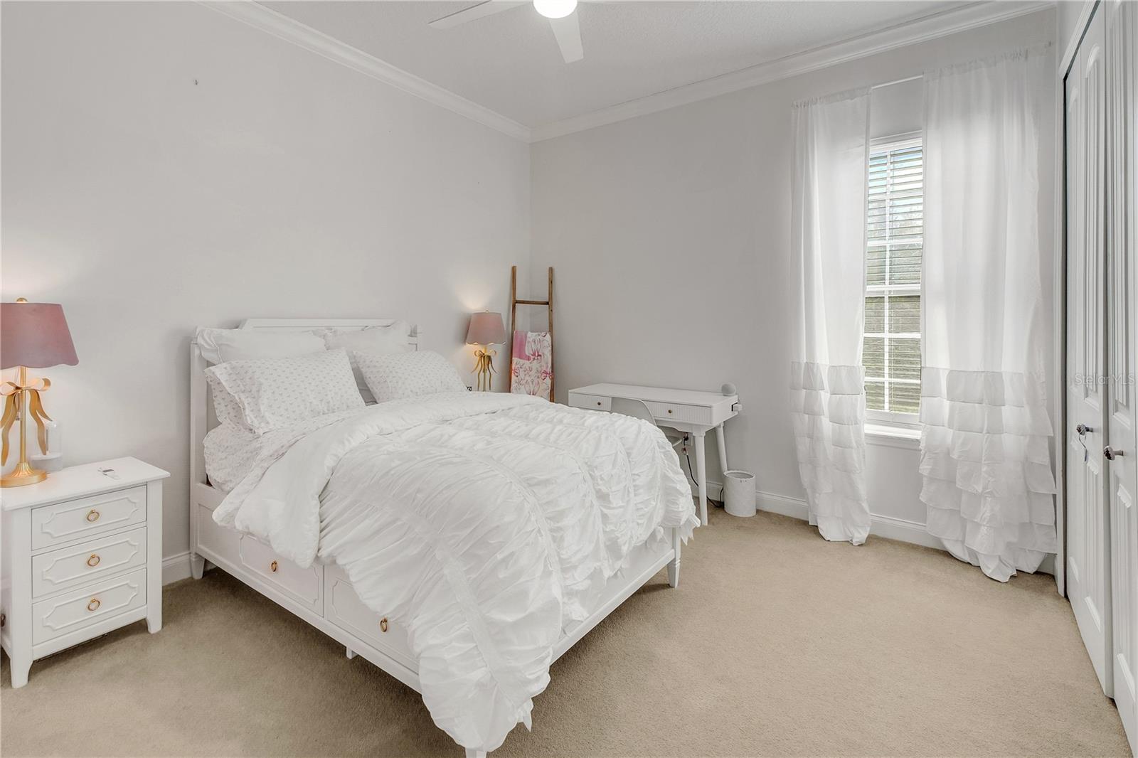 Welcome home to this stunning 5-bedroom, 4-bathroom residence with a 3-car garage in desirable Lake Myrtle Breezes in Fruitland Park on .33 acre lot. Step through the beautiful double front doors into a bright, airy home featuring wood floors, soaring ceilings, and elegant crown molding throughout. The chef’s kitchen offers abundant counter space, a center island, breakfast bar, stainless steel appliances, and rich wood cabinetry—perfect for both everyday living and entertaining. The home features two dining areas, including a casual eat-in space off the kitchen and a spacious formal dining room. The primary suite is generously sized with a walk-in closet and ample space for a home office or sitting area. The luxurious ensuite bathroom includes dual vanities, a private toilet room, a walk-in shower, and a relaxing jetted tub. One guest bedroom features a private ensuite bath, while another guest bedroom has access to a full bathroom that also serves the hallway—ideal for guests or multi-generational living. A modern washer/dryer combo adds convenience and additional storage in the already spacious laundry room. Enjoy Florida living year-round on the covered lanai, perfect for relaxing or entertaining. The 3-car garage provides plenty of room for vehicles, storage, and all your toys. A new roof was added in 2024 and one HVAC was replaced in 2017 while the other is a 2010. Also there is a tankless water heater. Conveniently located near shopping and restaurants, and just a 15-minute drive to The Villages, this home truly has it all!