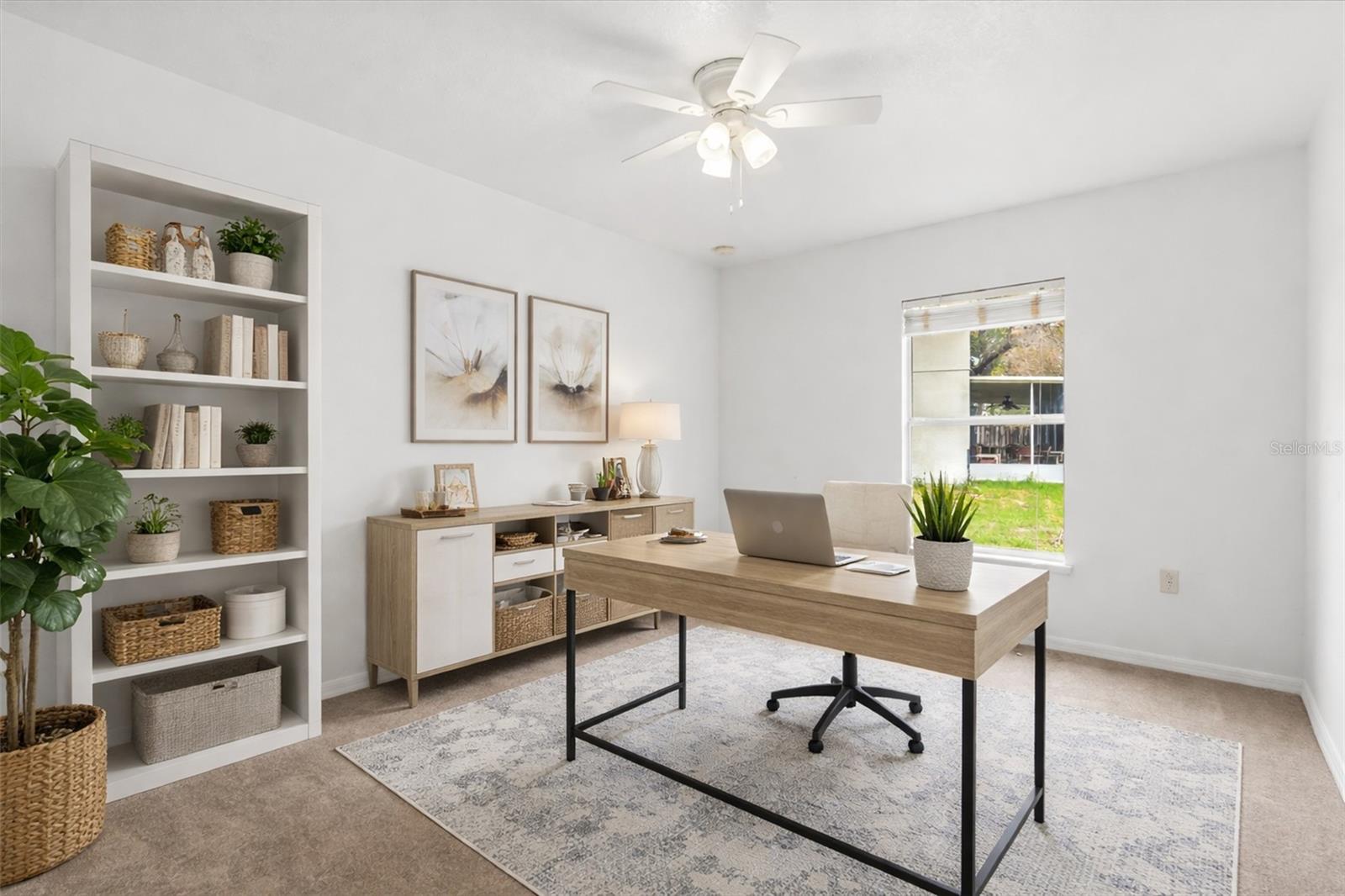 One or more photo(s) has been virtually staged. Welcome to this beautifully well-maintained 4-bedroom home in the quiet and desirable community of The Glen. This move-in-ready home offers major updates for peace of mind, including a new AC system (2025), new water heater, new carpet in the bedrooms, new low-maintenance vinyl plank flooring, and fresh interior paint throughout. The stove is approximately one year old, and a new sliding glass door has also been installed. The roof will be replaced by the seller prior to closing with an acceptable offer. Step inside to an open and airy floor plan filled with natural light. The spacious living area flows seamlessly into the kitchen, featuring ample cabinetry, stainless steel appliances, a new microwave, plenty of counter space, and the convenience of two sinks. The functional layout also includes two pantries and generous storage throughout. Large windows and the new sliding glass door lead to a screened-in patio and private oversized backyard with plenty of space to relax, entertain, garden, and more. The outdoor area has also been updated with new fans and new screens.Septic system inspected about a year ago, a dedicated laundry area, and a two-car garage with epoxy floors. Conveniently located just minutes from shopping, dining, major hospitals, and The Villages. Just 2 miles from Fruitland Park amenities, including a public pool, pavilions, picnic areas, youth sports, movie nights, park days, and an annual BBQ cookoff. Enjoy nearby Lake Griffin State Park with boat access to the Harris Chain of Lakes, and just 10 miles to Brownwood for live music, dining, and entertainment. Tucked in a peaceful, friendly neighborhood, this home offers the perfect balance of privacy and convenience. Schedule your private showing today.