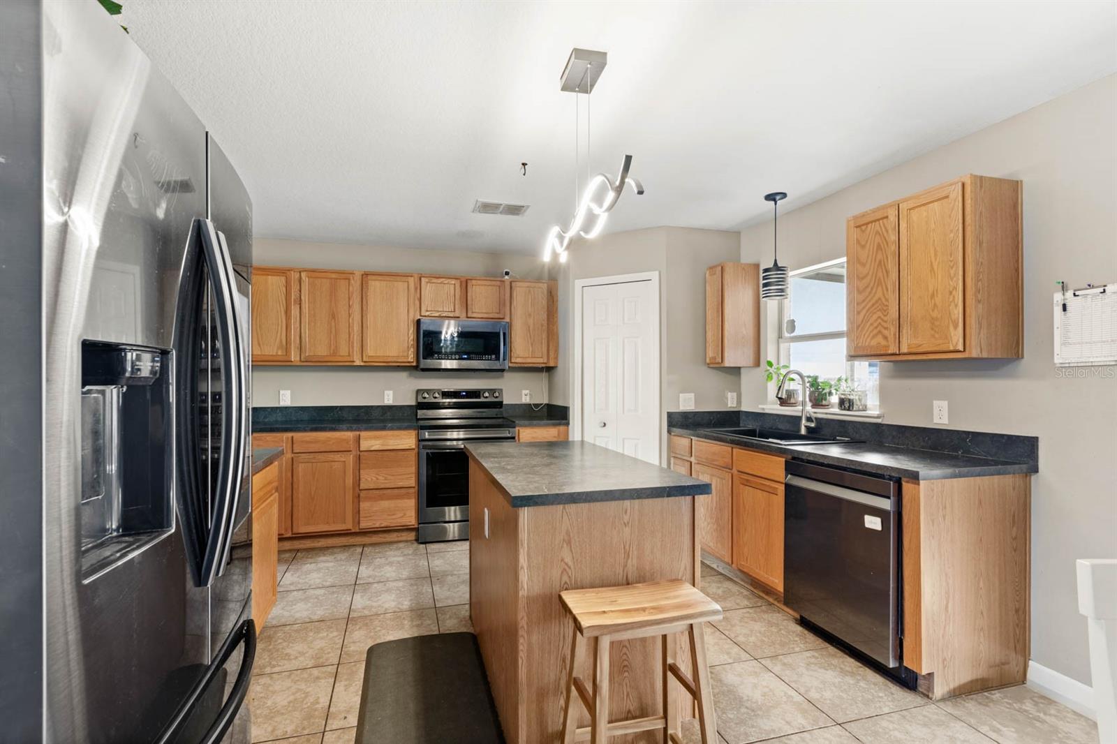 Welcome to 800 Daybreak Drive. This 5-bedroom, 2.5-bathroom home spans over 3,000 square feet and is situated on a fully fenced, quarter-acre homesite. The home also features an oversized loft, an office, and a 3-car garage with one bay converted into a workshop. The first floor includes an office, a formal dining area that could also serve as a second office, a large living room, and the kitchen. The kitchen offers black countertops, new stainless steel appliances, an island, two pantries, and a large window overlooking the lanai and backyard. Storage is abundant throughout the home, with well-placed closets. Upstairs, the primary bedroom is located on the left side of the home, separate from the other bedrooms. It features vaulted ceilings, hard surface flooring, and an updated en-suite with new tile and a brand-new shower. The primary suite also includes two walk-in closets. The upstairs loft is oversized and overlooks the two-story foyer at the entrance of the home. The loft also connects to the hallway leading to four large secondary bedrooms, each with their own spacious closets. The backyard is fully fenced and includes a screened-in lanai, offering plenty of outdoor space. A top-of-the-line Enphase solar panel system and electric 220V/50A car chargers are installed on the home. Located near The Villages, the home offers proximity to restaurants, shopping, and entertainment options, with Lady Lake also just minutes away. There is also a brand new elementary school less than a mile from the home that is scheduled to open in the fall of 2025. The community has a low HOA, and offers location and value. Call today to schedule a private tour.