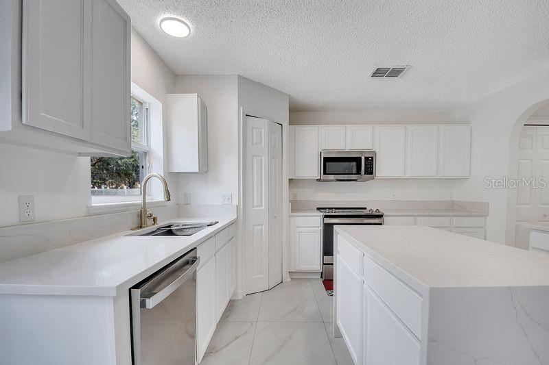 This fully remodeled 5-bedroom, 2.5-bath home offers over 3,000 sqft of luxury living on a 0.39-acre lot with no rear neighbors. Upgrades include porcelain tile, wood flooring, Calacatta quartz countertops in kitchen and bathrooms, stainless steel appliances, freshly tiled showers, updated fixtures, and new interior paint. Roof replaced in 2021. Tenant currently pays $2,800/month. Buyer may continue renting for an excellent investment opportunity. Located near shopping, dinning, and entertainment - enjoy The Villages lifestyle! Schedule your private tour today!