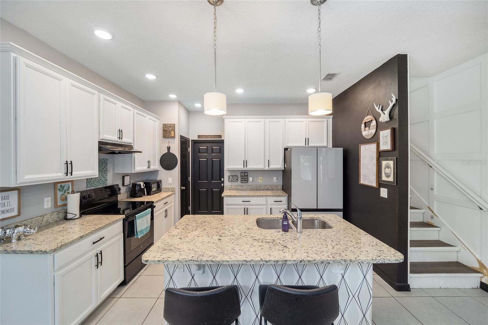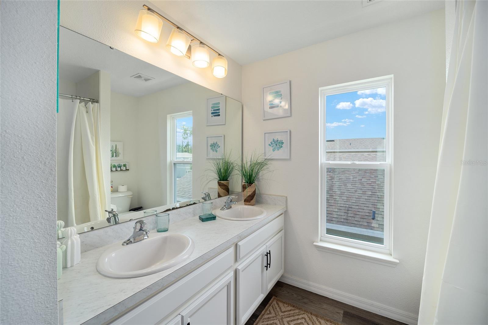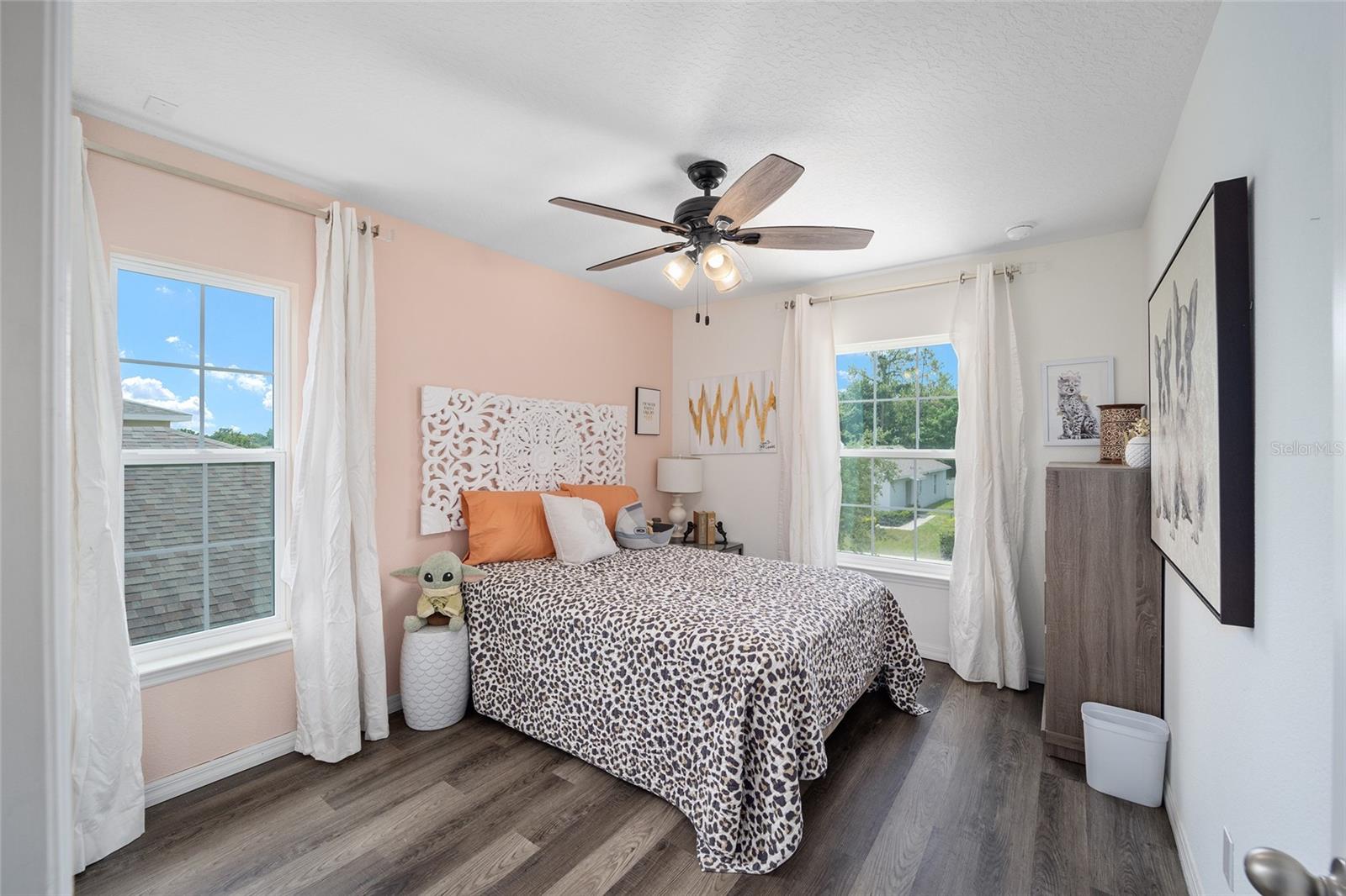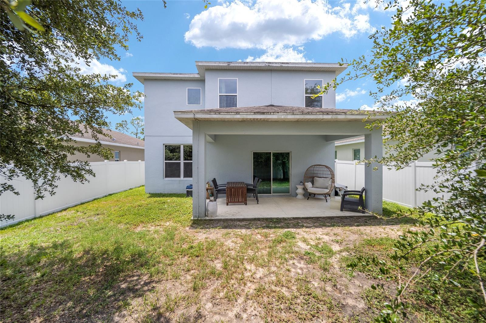 Situated in between Lady Lake and Leesburg, this charming community is convenient to Florida's Turnpike and Highway 441. This 2 story home, a former model home, is loaded with upgraded finishes, including a fenced back yard. The main level features an open concept living room, dining area, and kitchen, as well as a half bathroom. The second story features the primary bedroom with a spacious bedroom and en suite bathroom. The 2 additional bedrooms are also on the second level, with a guest bathroom, and a laundry room. Mirror Lake Village has a minimal HOA, that offers a playground and RV/trailer parking.