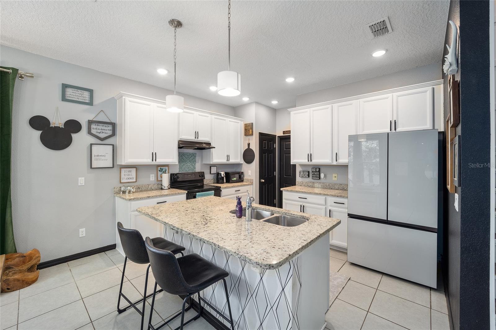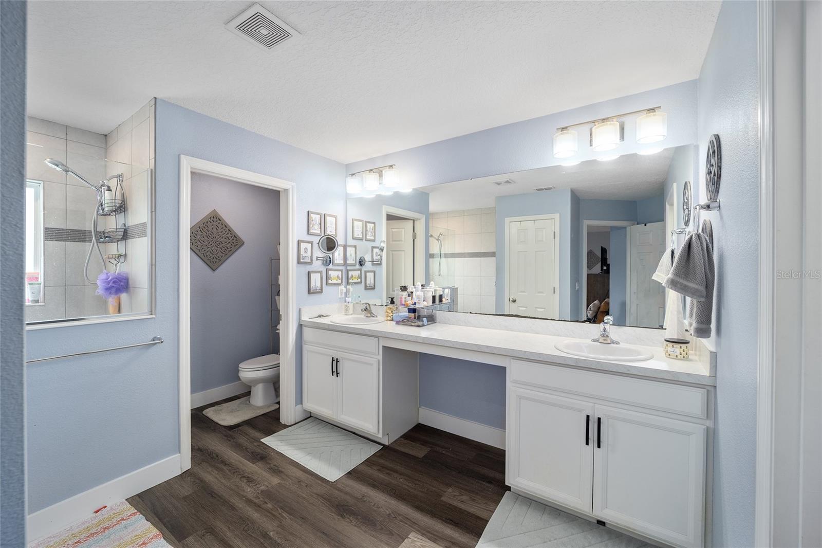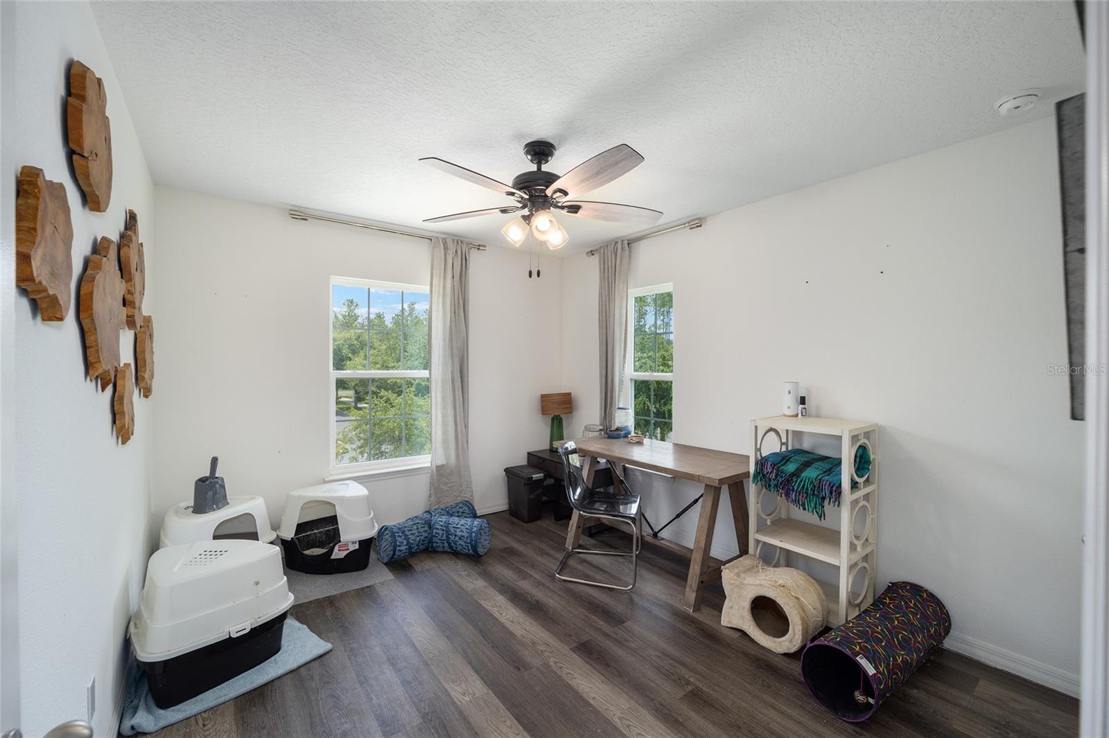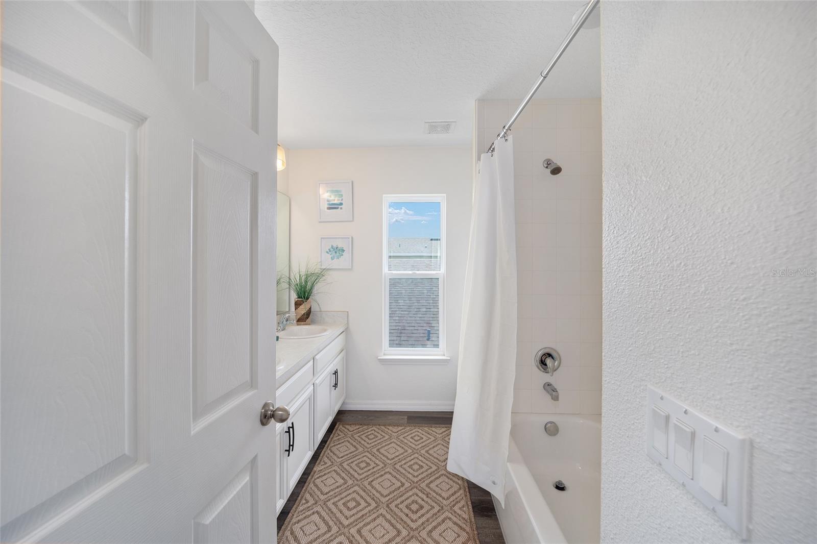 Situated in between Lady Lake and Leesburg, this charming community is convenient to Florida's Turnpike and Highway 441. This 2 story home, a former model home, is loaded with upgraded finishes, including a fenced back yard. The main level features an open concept living room, dining area, and kitchen, as well as a half bathroom. The second story features the primary bedroom with a spacious bedroom and en suite bathroom. The 2 additional bedrooms are also on the second level, with a guest bathroom, and a laundry room. Mirror Lake Village has a minimal HOA, that offers a playground and RV/trailer parking.