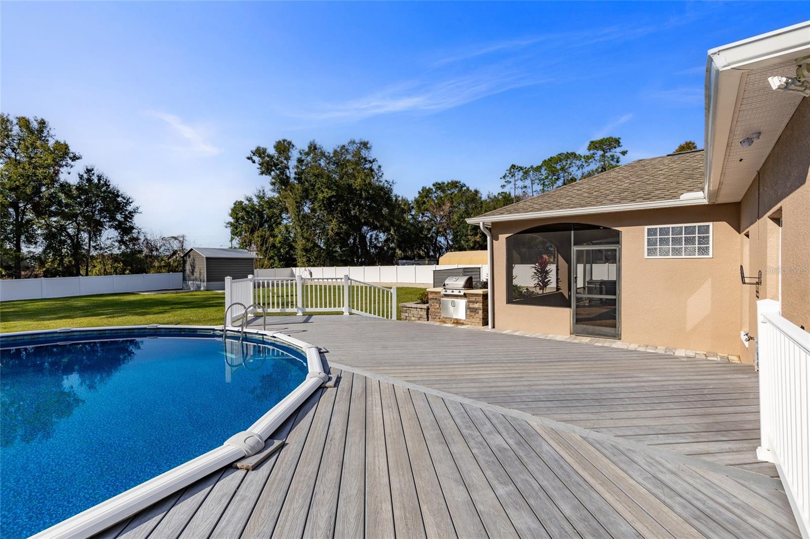 One or more photo(s) has been virtually staged. Your Dream Home Awaits! 4-Bedroom Oasis with Pool & Entertainment Space Welcome to your luxury escape—this 4-bedroom, 3-bathroom masterpiece is more than a home; it’s a lifestyle. Step into your private paradise, featuring: Sparkling Pool – Cool off and unwind in style. Expansive Deck & Outdoor Bar – Perfect for unforgettable gatherings. Hot Tub & Covered Lanai – Your ultimate relaxation zone. As you arrive, you’ll be greeted by beautifully landscaped grounds, ambient lighting, and the peaceful sound of fountains—a serene retreat you'll never want to leave. Property Highlights Upgrades Galore: Vinyl fencing, lush new sod, fresh paint inside and out, and a brand-new roof. Modern Comforts: Tankless gas water heater, gas stove, Mitsubishi whole-house AC system, and a cozy fireplace. Outdoor Perfection: Above-ground pool with composite decking, two RV hookups, and expanded driveway. Smart Features: Security system, Unify 3-camera setup, and house generator hookup. Storage Ready: Metal shed for all your extra space needs. Located in the highly desirable Spring Lake Pines community, this home is minutes away from premium shopping, dining, golfing, and entertainment options. Imagine poolside evenings under the stars, weekend BBQs in your outdoor oasis, and luxurious interiors with granite countertops, elegant updates, and an open-concept design. Don’t miss this rare opportunity—this exceptional property won’t be available for long! Schedule your showing today and make this dream home your reality.