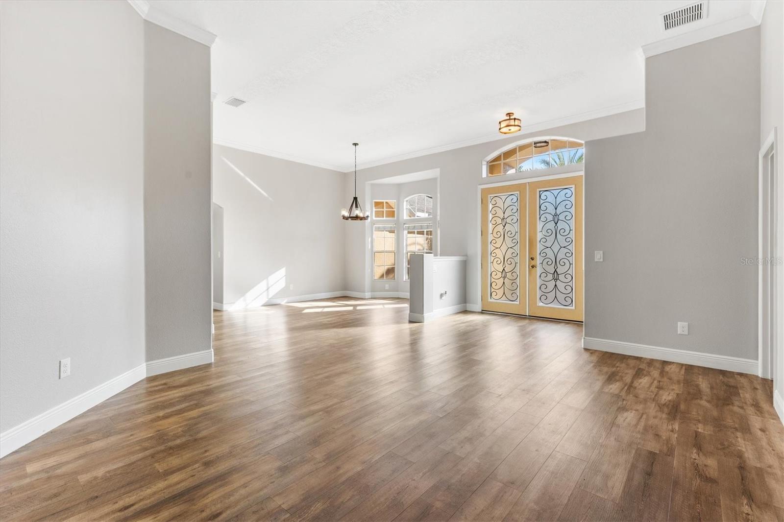 Spacious 5 bedrooms & 3 full bathroom home on 1.4 acre lot in Wingspread subdivision with easy access to The Villages & Leesburg. The home offers beautiful LVP floors, tray ceilings, crown molding, jetted tub in the master bath, stainless appliances, beautiful granite counter tops & hardwood cabinets in the kitchen. There's a built-in entertainment center & windows galore in the family room, the breakfast nook overlooks a large 30x20 Florida Room with a mini split, with "L" shaped summer kitchen. The formal/living dining room are open to each other with sliders that open to the porch. Perfect for a family there is 2 separate wings each with 2 bedrooms and a bathroom. Some additional features include: split bedroom plan, interior laundry room, walk-in pantry, good closet space & a 2 car side entry garage. Plenty of elbow room on the corner lot with room for a pool in the backyard. Exterior extras include a sprinkler system, for this oversized lot and a separate well for lawncare. Don't miss this opportunity to have 5 bedrooms!