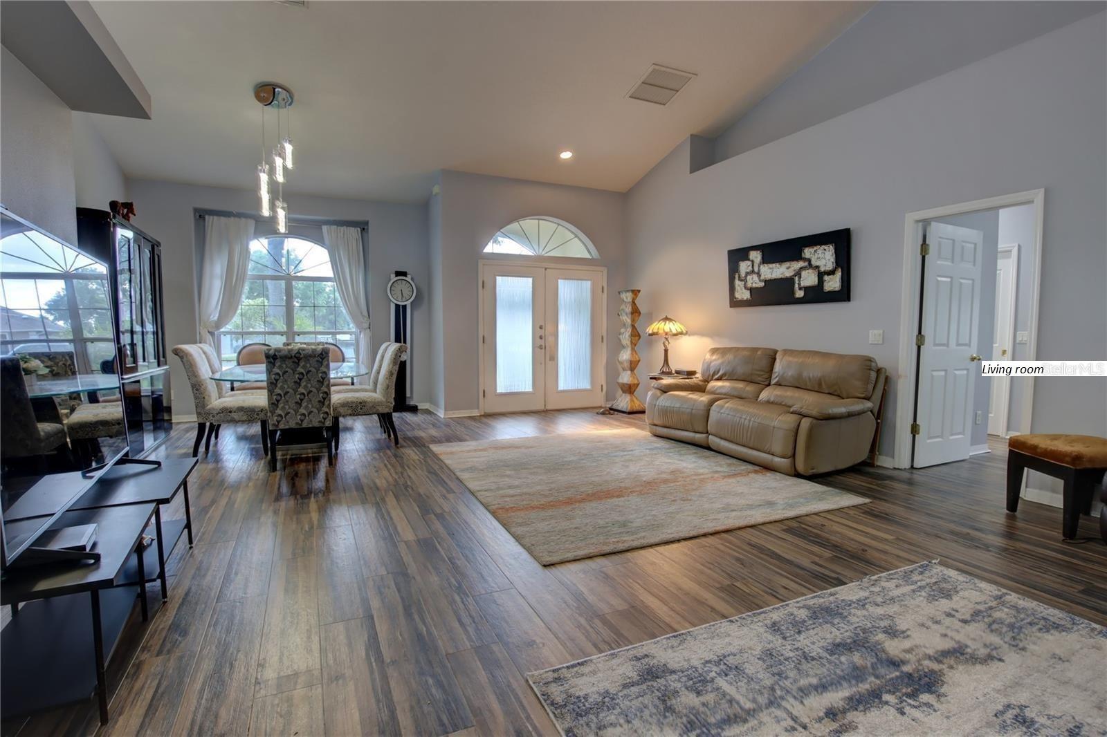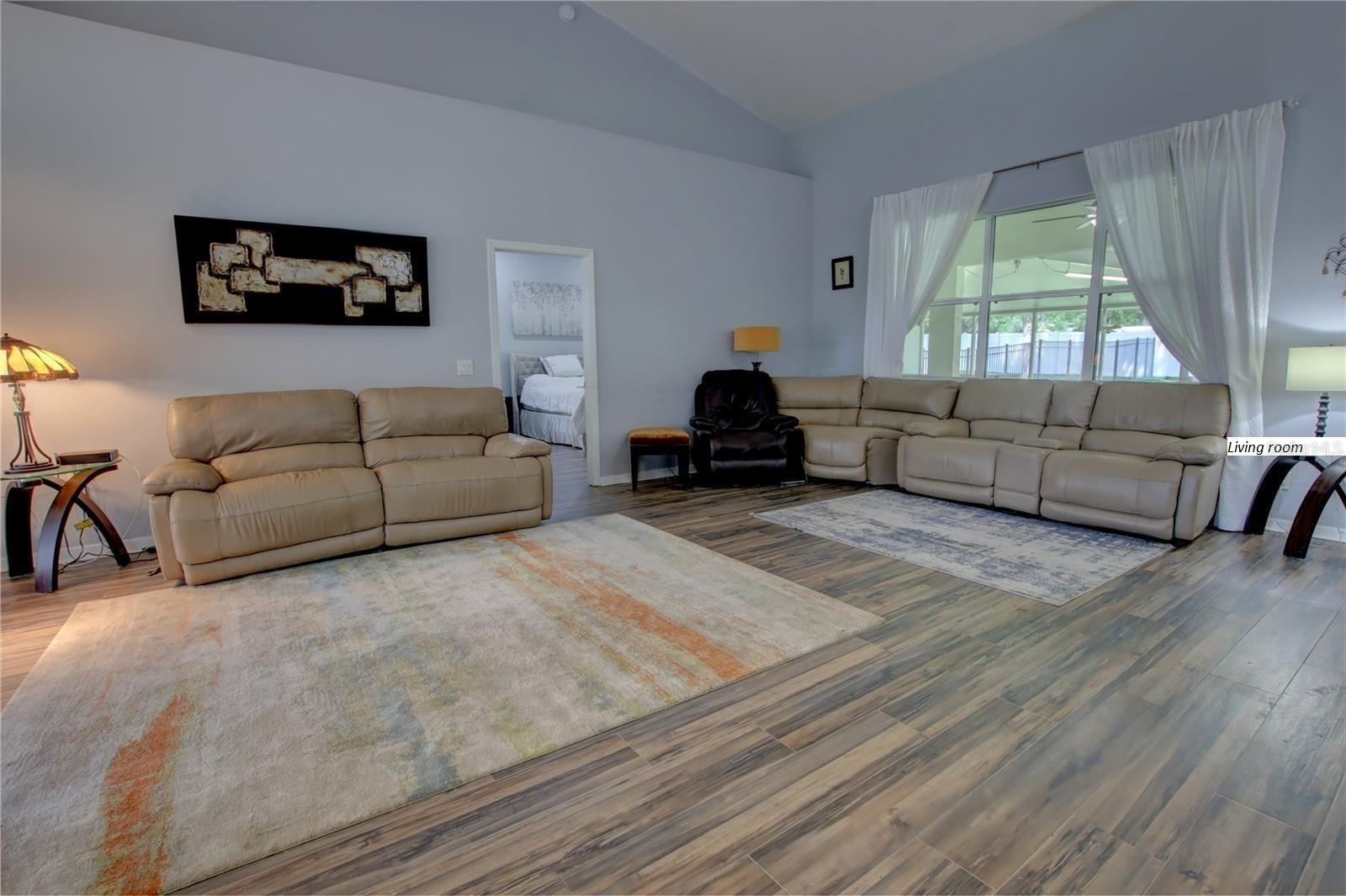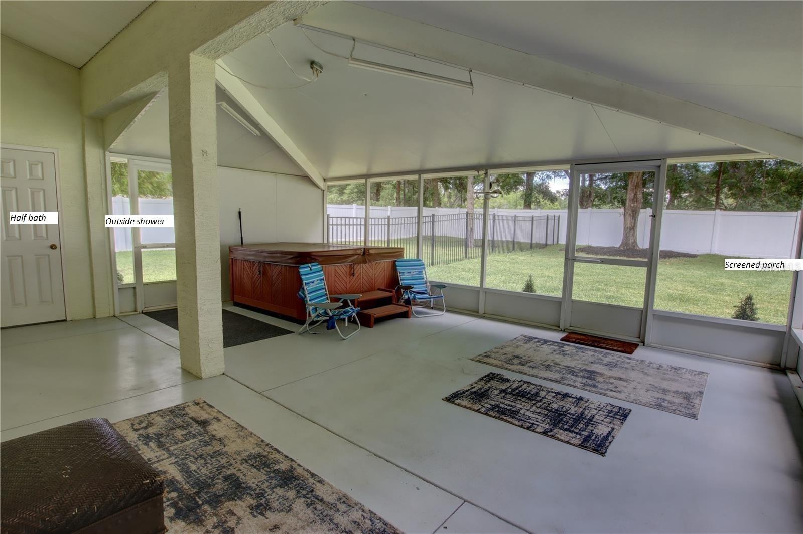REDUCED from $549,900 Spring Lake Pines community. Tranquil setting. Nearly an acre lot with additional lot behind the vinyl fence. Beautifully updated. Walk through the front door to vaulted ceilings and natural light. Modern amenities, including a brand-new roof installed in 2024, along with a recently upgraded AC system and water system. Wood-look tile plank flooring throughout. Large windows provide an abundance of natural light. A cozy breakfast nook and breakfast bar in the kitchen area. Step out on to the expansive screened-in lanai, perfect for dining or serene relaxation. Enjoy a relaxing evening in the jacuzzi with a glass of wine. On the porch is a cabana bath and outdoor shower. The primary suite offers direct access the lanai. Dual closets and garden tub and shower in the primary bath Located on the opposite side of the home are the 2nd & 3rd bedrooms for family and guests. An additional lot outside of the fence in the backyard for future expansions A dedicated dog run provides a safe space for furry companions to roam and play freely. Additional highlights include central vacuum system extra parking next to the 3 car garage and double gated entrance to the back yard. Appliances were upgraded in 2020. Jacuzzi on the lanai stays with the home.