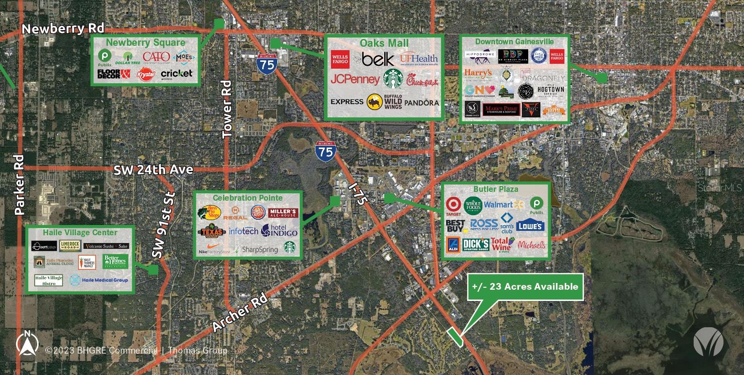 23 acres of highly visible land for sale in Gainesville, Florida. Existing R2 Multifamily zoning allows for the development of a multifamily project, or the potential opportunity exists to rezone the property to fit your intended use. Gainesville is home to the University of Florida, UF Health and many national retailers, medical & service providers, and industrial companies. Gainesville has repeatedly earned top rankings in Forbes and other national publications as one of the best places to live in the United States.