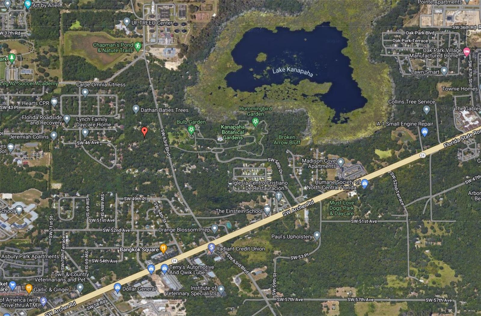 GREAT LOCATION! Private and secluded lot, tucked away on a quiet, tree-lined street, across the road from Kanapaha Botanical Gardens. Rare 2- acres, close to all the incredible development in Gainesville, FL, yet conveniently located in a private oasis. This property is cleared and ready for your new home. Utility data maps and property survey available. Existing well and septic conditions are unknown. Parcel, just off of SW Archer Road. The previous street address was 4502 SW 63rd Blvd. Minutes from I-75, Celebration Pointe, and Butler Plaza. Shopping, restaurants, entertainment, and a sports complex are just some of the attractions in close proximity. New UF Health Emergency Center - Kanapaha, new HCA Emergency Center, UF Shands Hospital, Malcolm Randall VA Hospital and the University of Florida are also excellent and closely located resources.