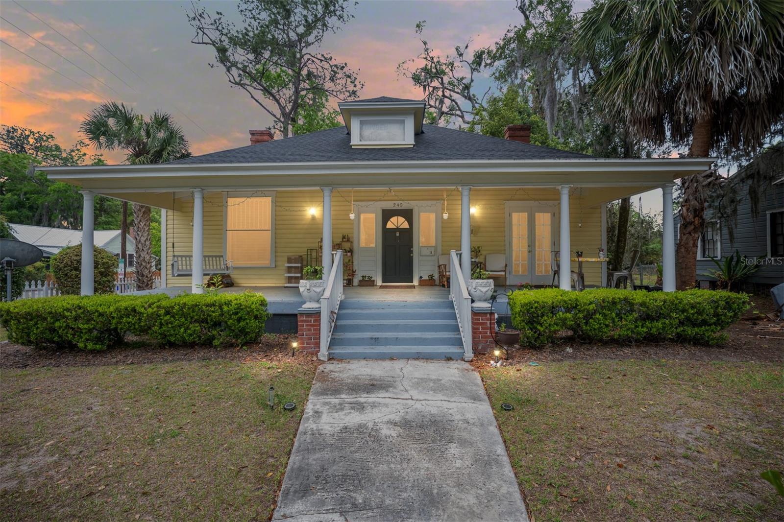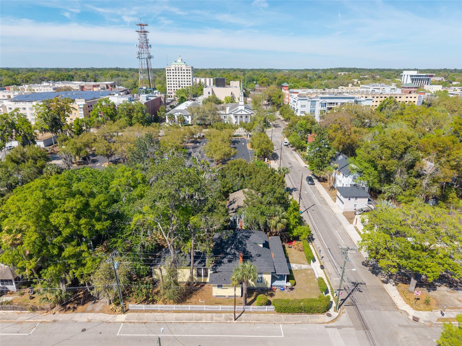 Set on a prominent corner in one of Gainesville’s most vibrant and connected pockets, this thoughtfully preserved 1910 duplex offers a rare blend of historic character and enduring functionality. Moments from the University of Florida and surrounded by beloved local restaurants, the location supports both a dynamic lifestyle and consistent rental demand, making this a compelling opportunity for investors and owner occupants alike. The home’s sunny yellow exterior and covered front porch introduce a sense of classic Southern charm, while inside, both residences reflect careful stewardship of the home’s original spirit. Across the two units, a total of four bedrooms and three bathrooms unfold within well considered layouts that balance privacy with livability. Unit A offers a 2 bed 1 bath configuration with a charming private walk up that creates a sense of separation and retreat. The interior carries a cozy, comfortable feel, well suited for quiet living while still benefiting from the energy and accessibility of the surrounding neighborhood. Unit B welcomes with an airy entry that leads into a light-filled living room, where an original fireplace anchors the space with quiet presence. Hardwood floors extend underfoot, honoring the era while offering warmth and continuity. An elegant passthrough connects the living area to a thoughtfully arranged kitchen, creating an easy rhythm for everyday living and gatherings alike. Butcher block counters provide generous workspace above grey cabinetry, while natural light enhances the efficiency of the galley design. A discreet laundry closet on the main level adds convenience without interrupting the flow. The primary suite reflects the proportions and character of early 20th century design, offering a spacious retreat complemented by a charming ensuite bath and an expansive walk in closet. Whether envisioned as an income-producing asset, a dual residence for shared living, or a strategic house hack, this duplex presents flexibility rarely found in such a storied setting. Proximity to campus, strong rental appeal, and timeless architectural character come together in a property that continues to offer both purpose and possibility.